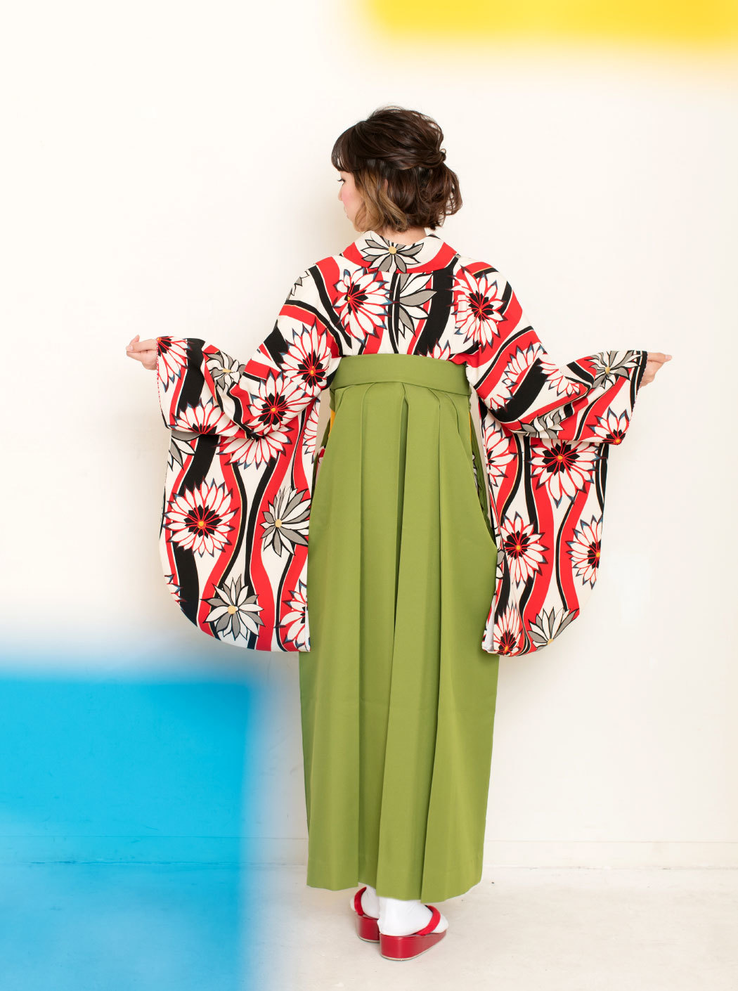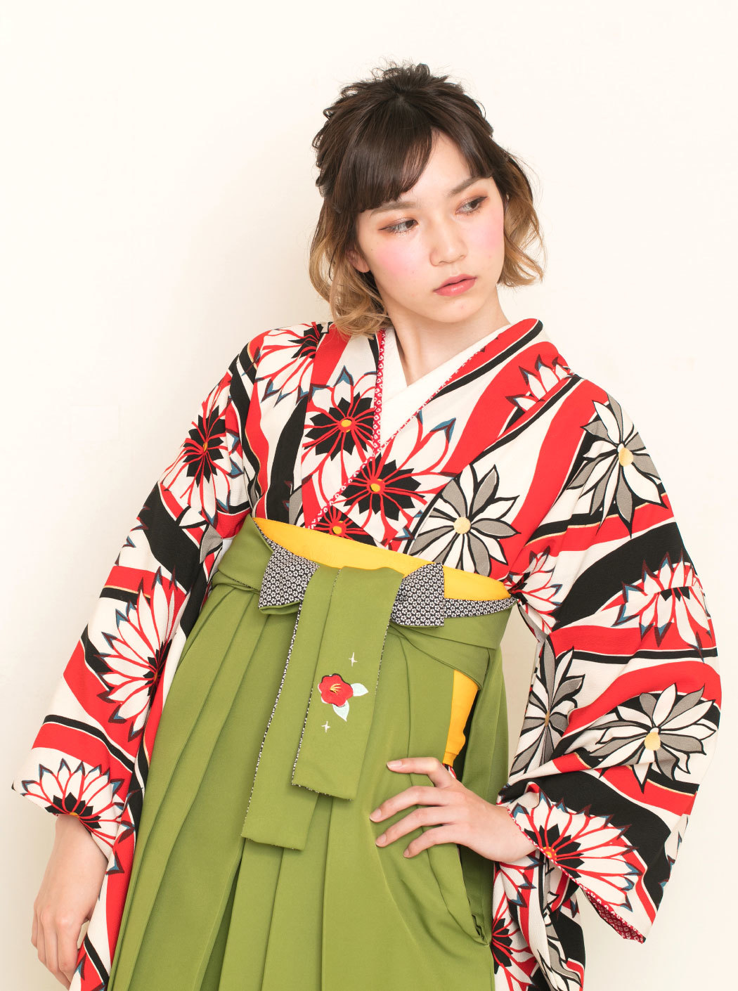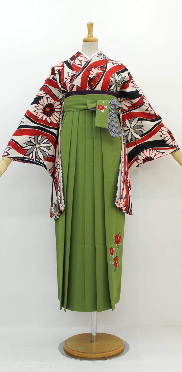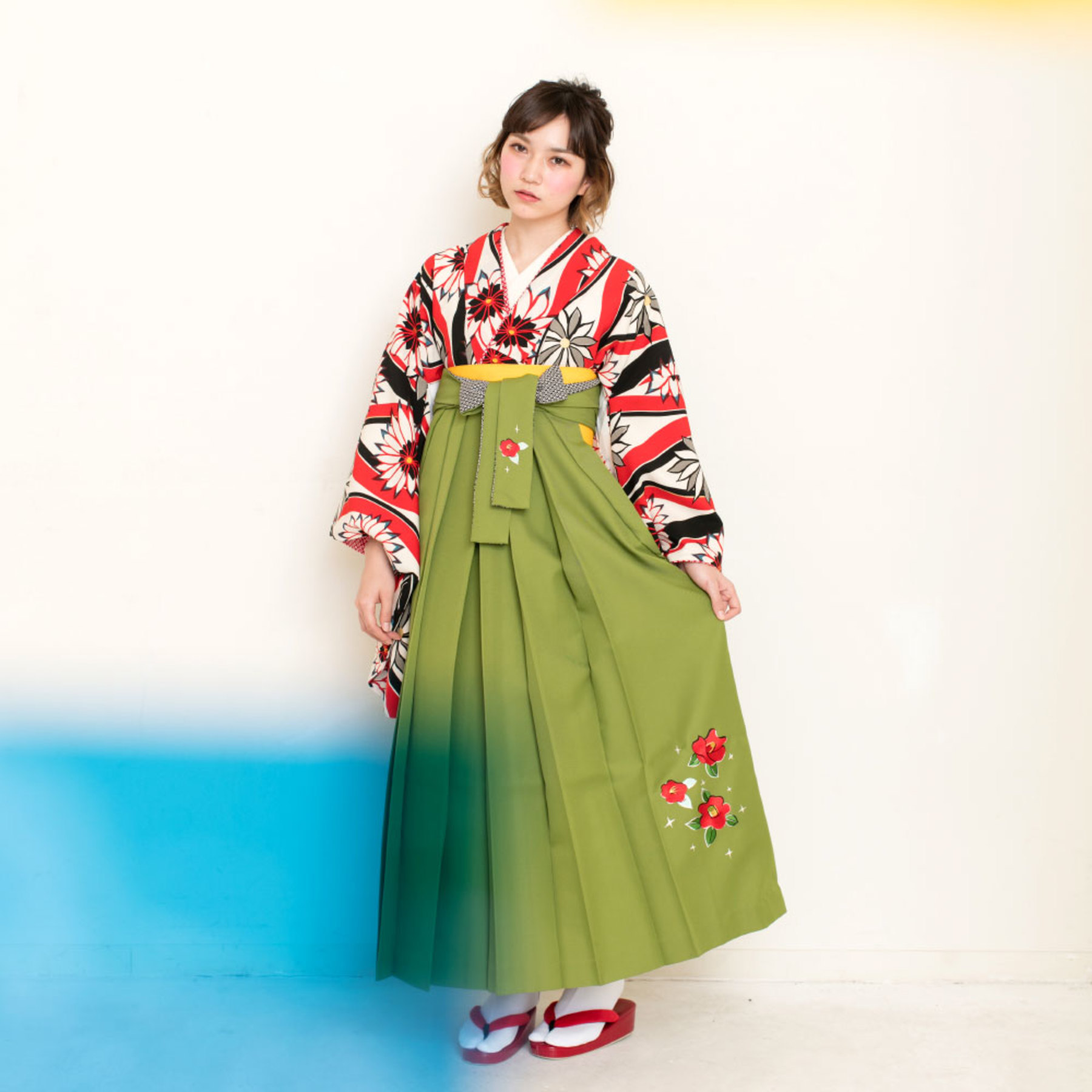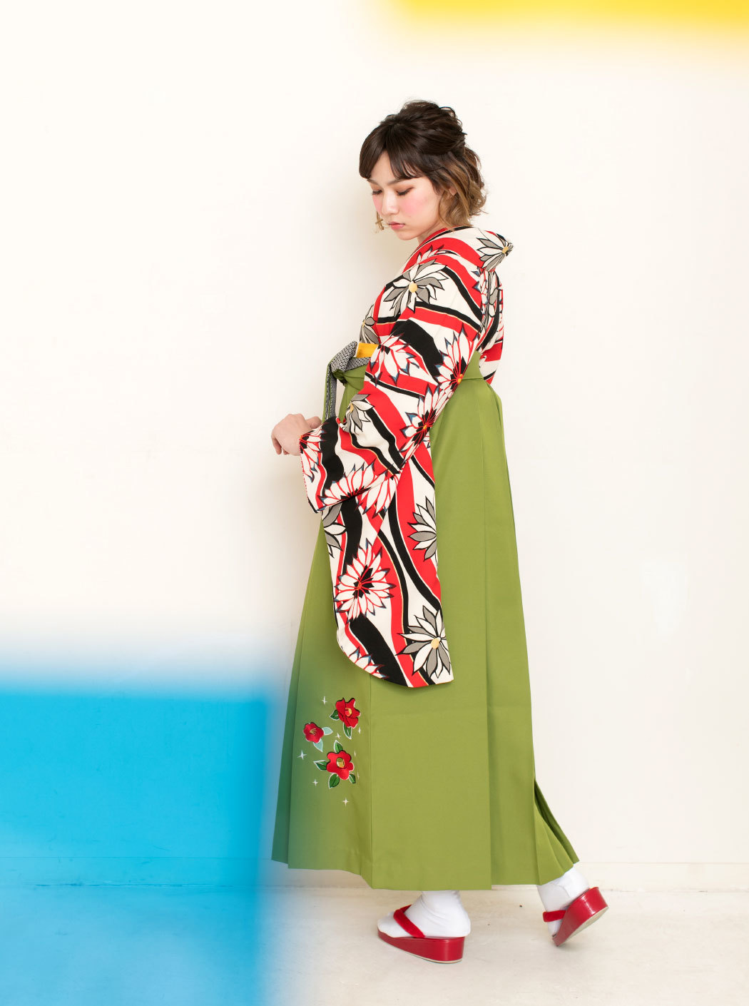 よろけ菊/赤【九重】(袴:椿刺繍/抹茶)