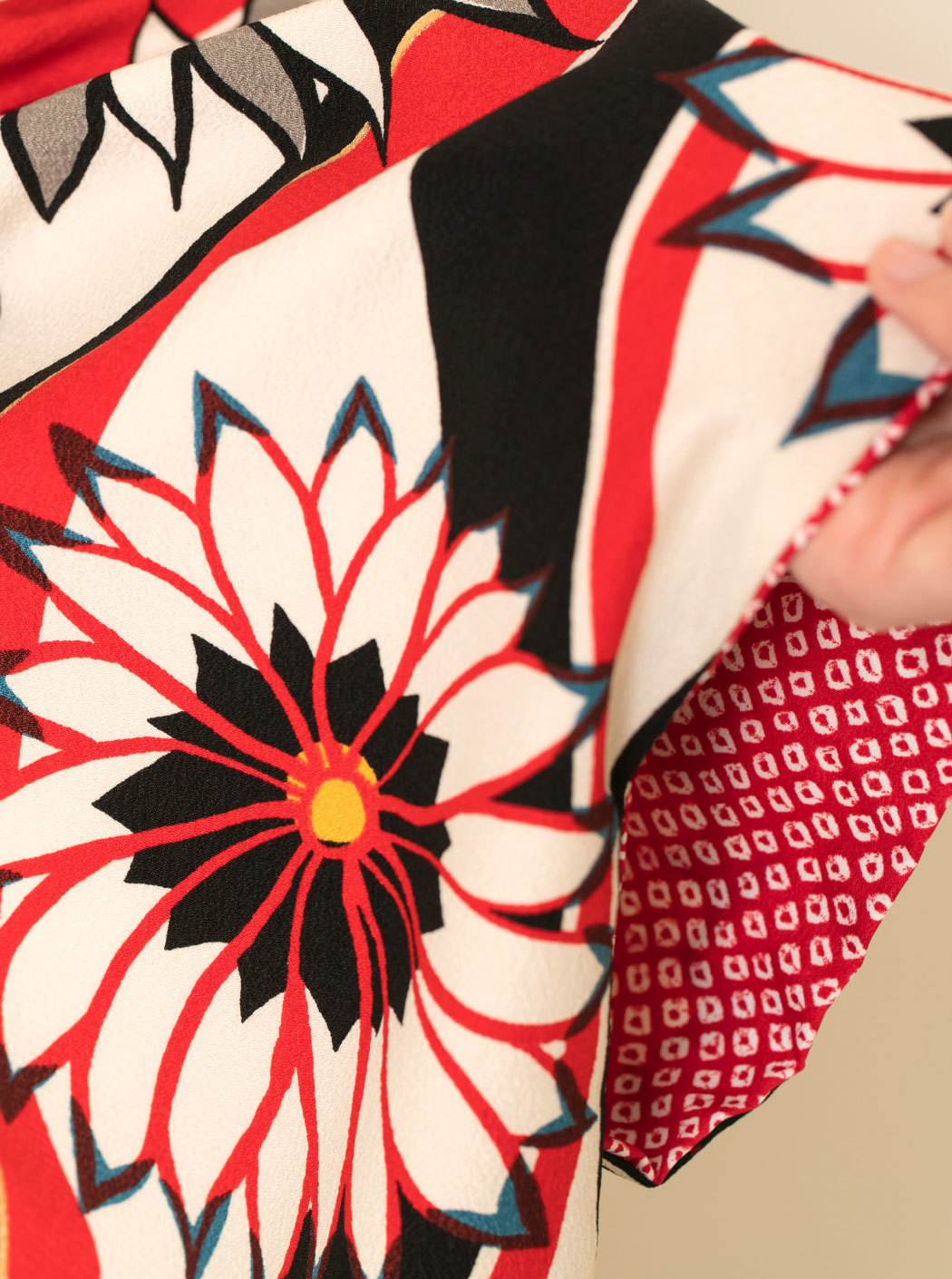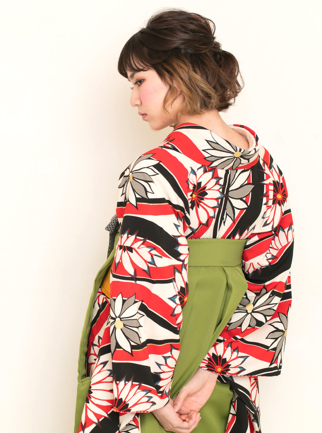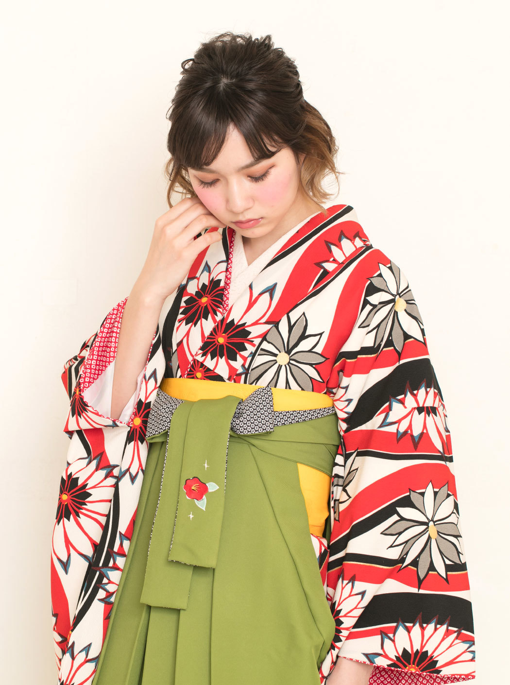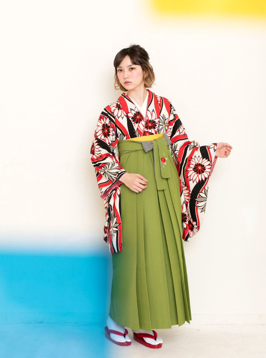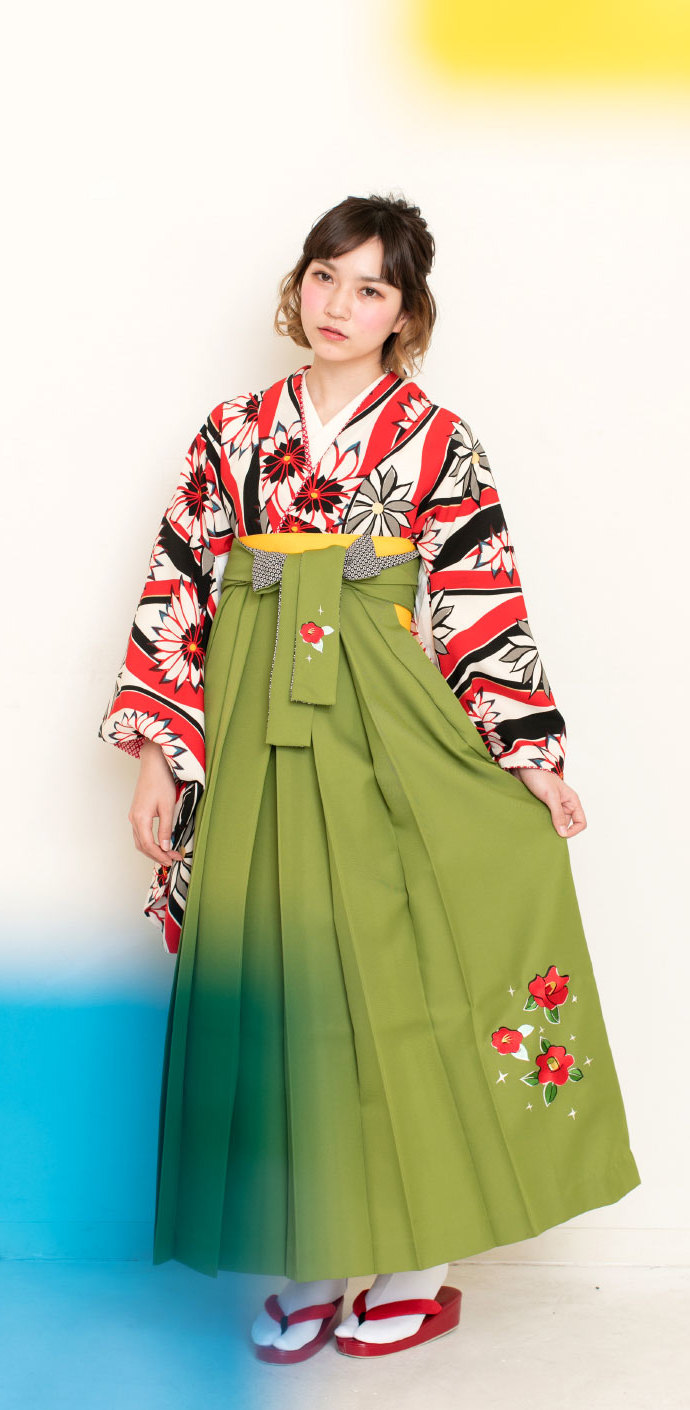 よろけ菊/赤【九重】(袴:椿刺繍/抹茶)