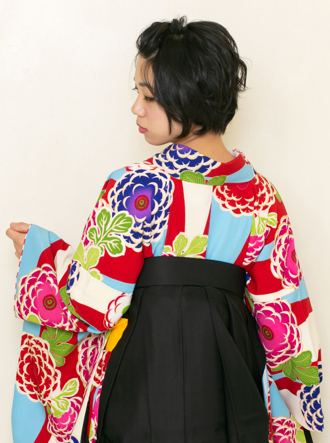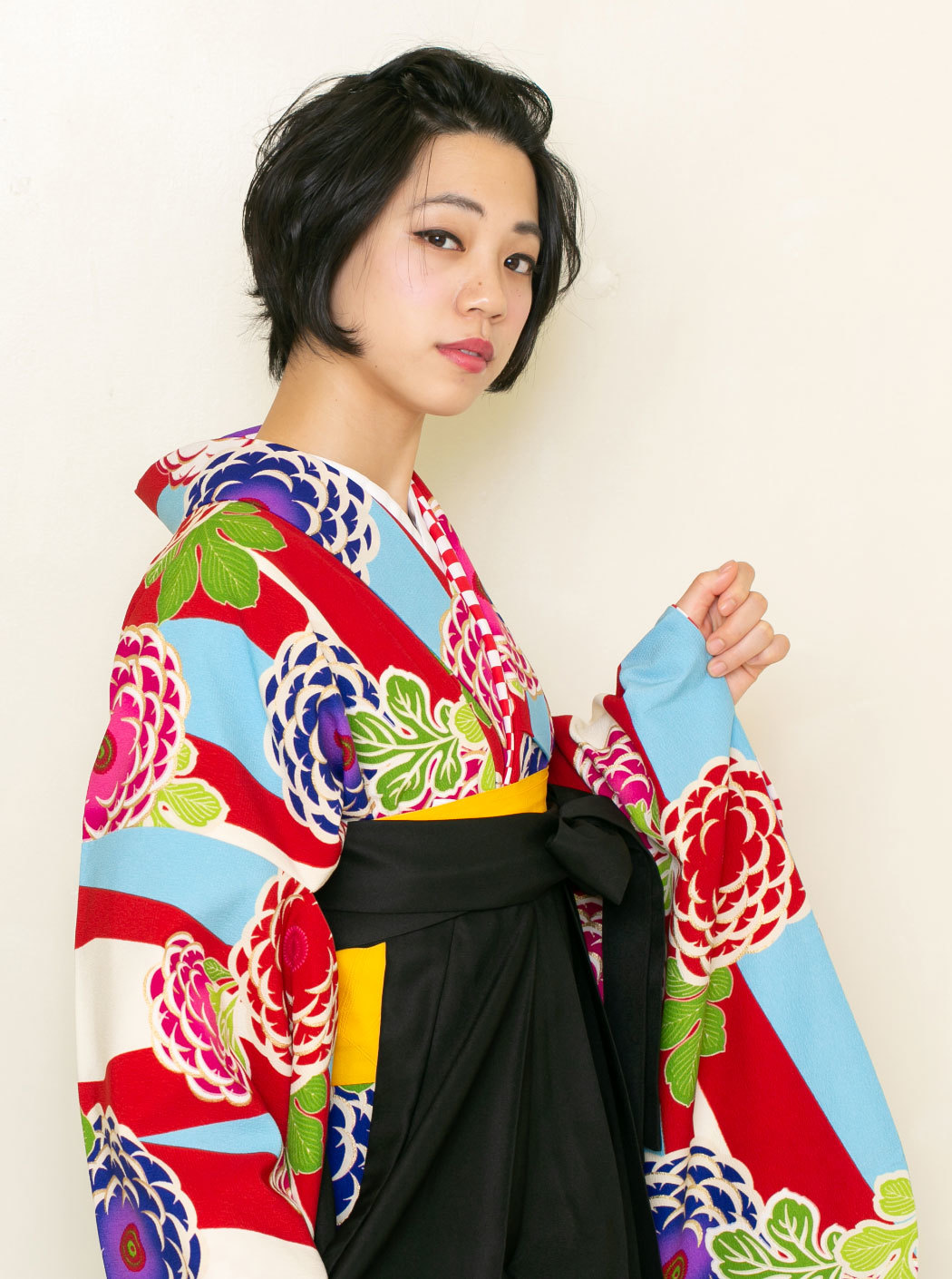 スッキリとまとめ、お着物の華やかさを引き立たせます。