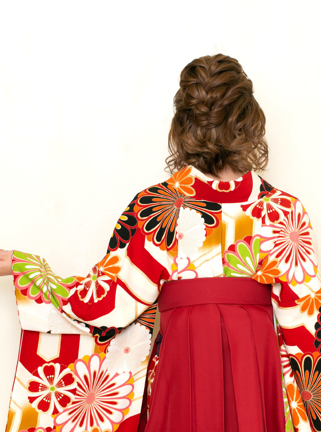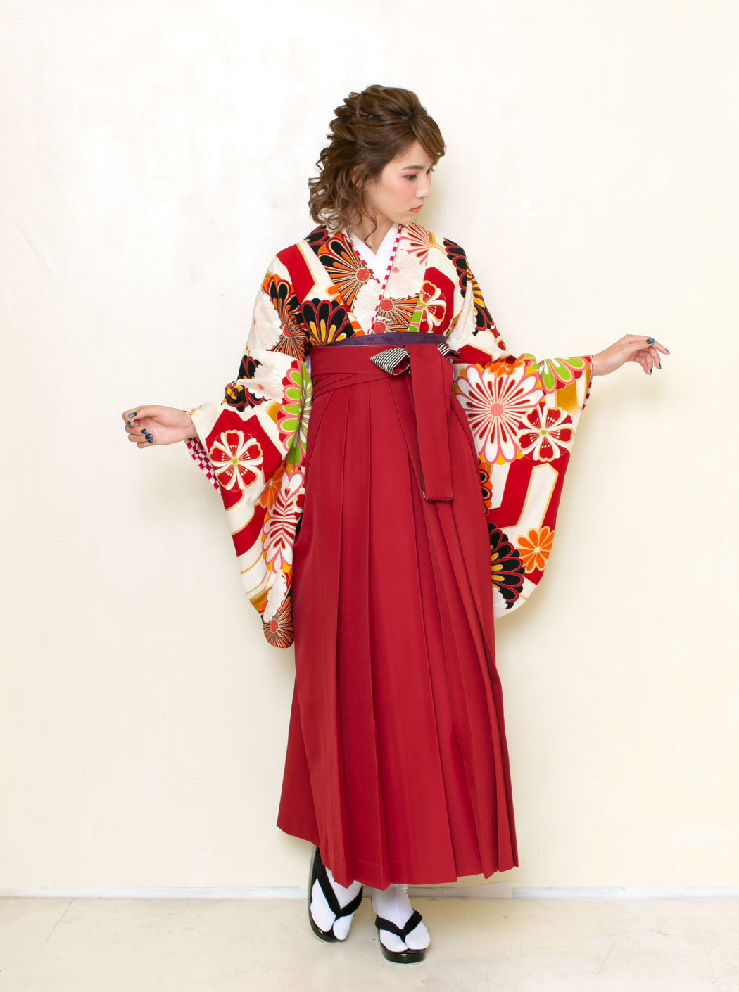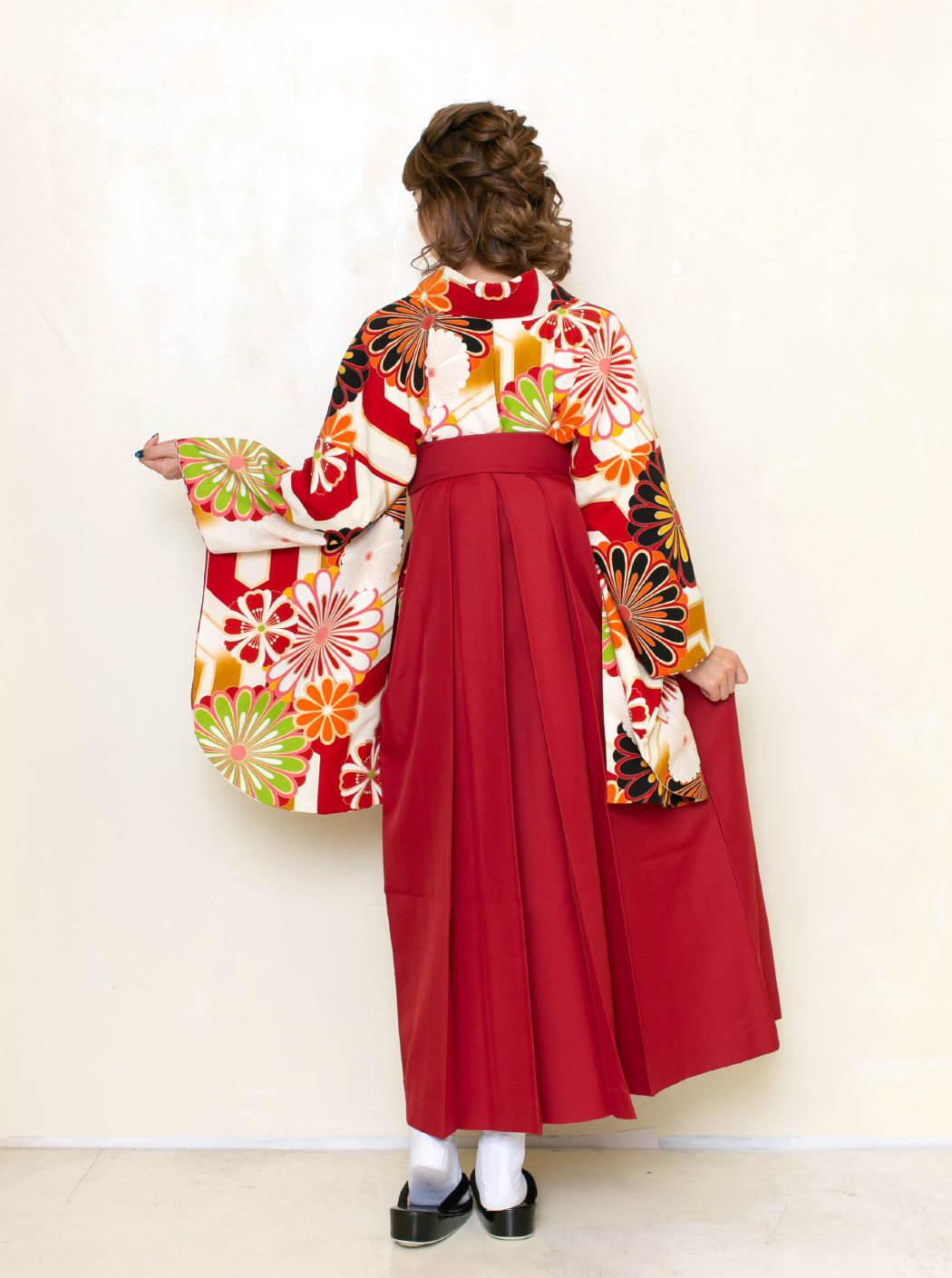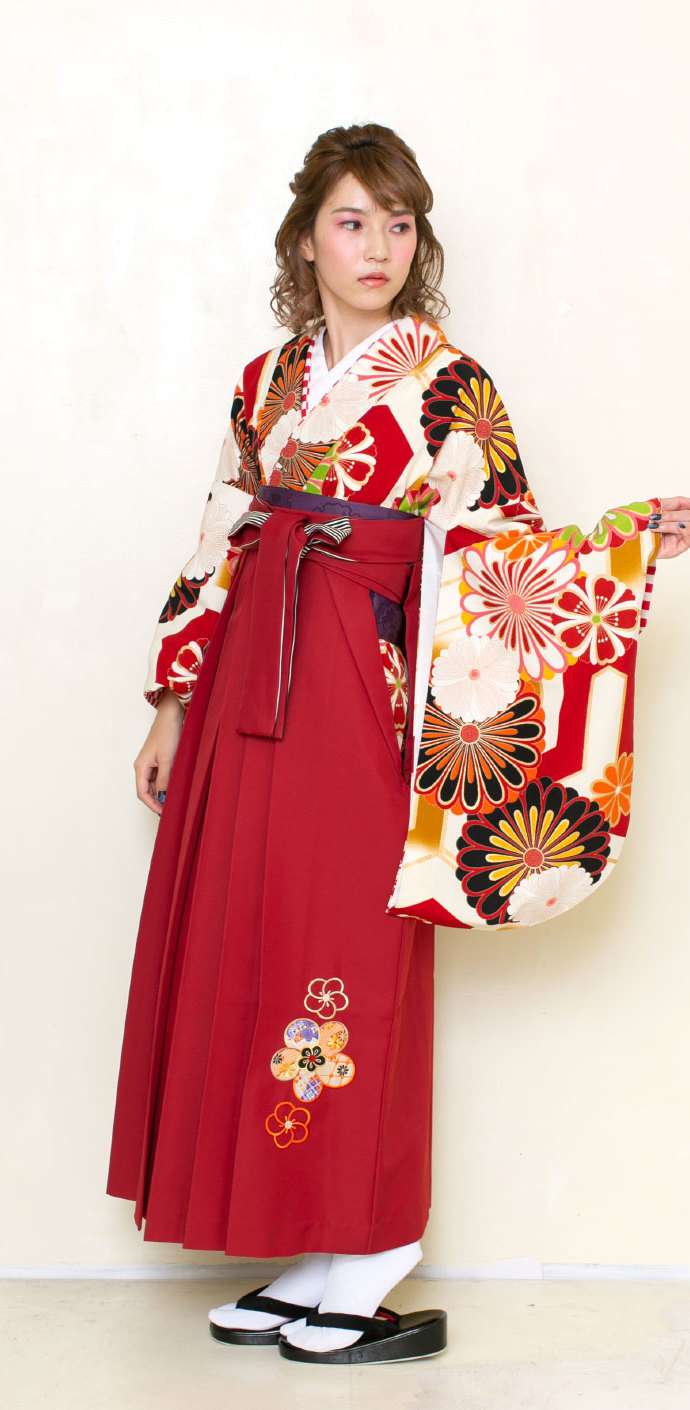 亀甲菊/赤(袴:梅刺繍/エンジ)