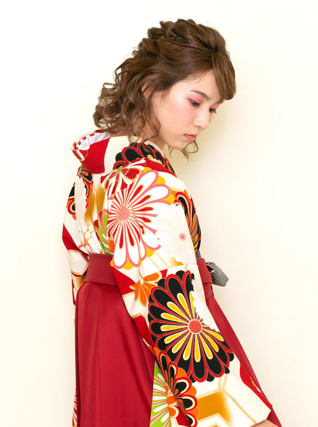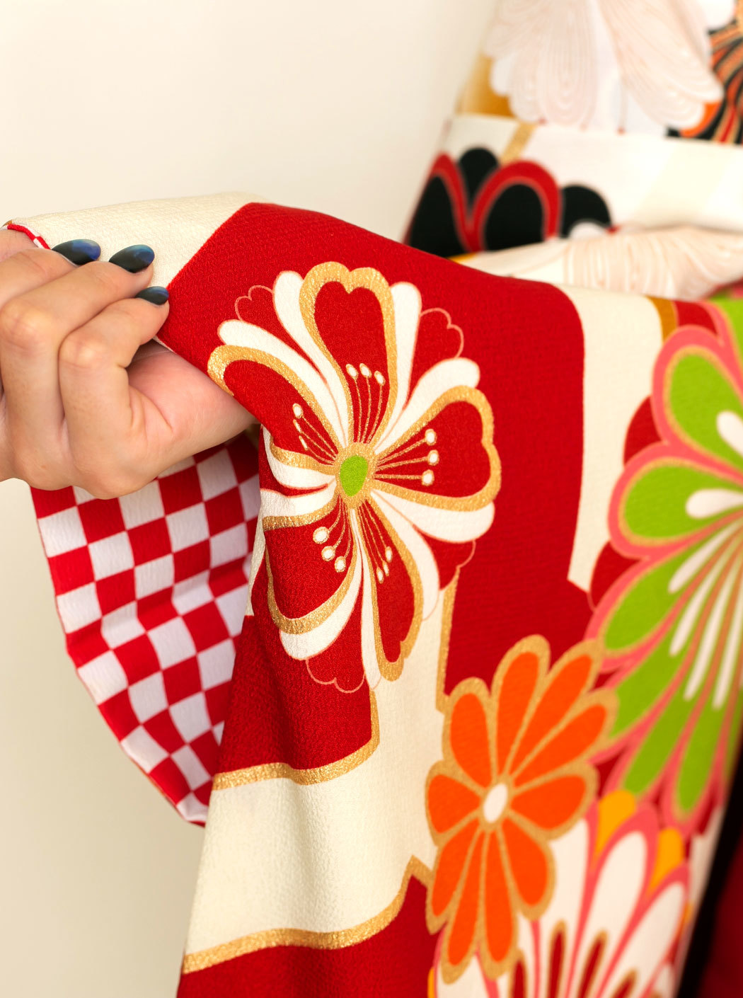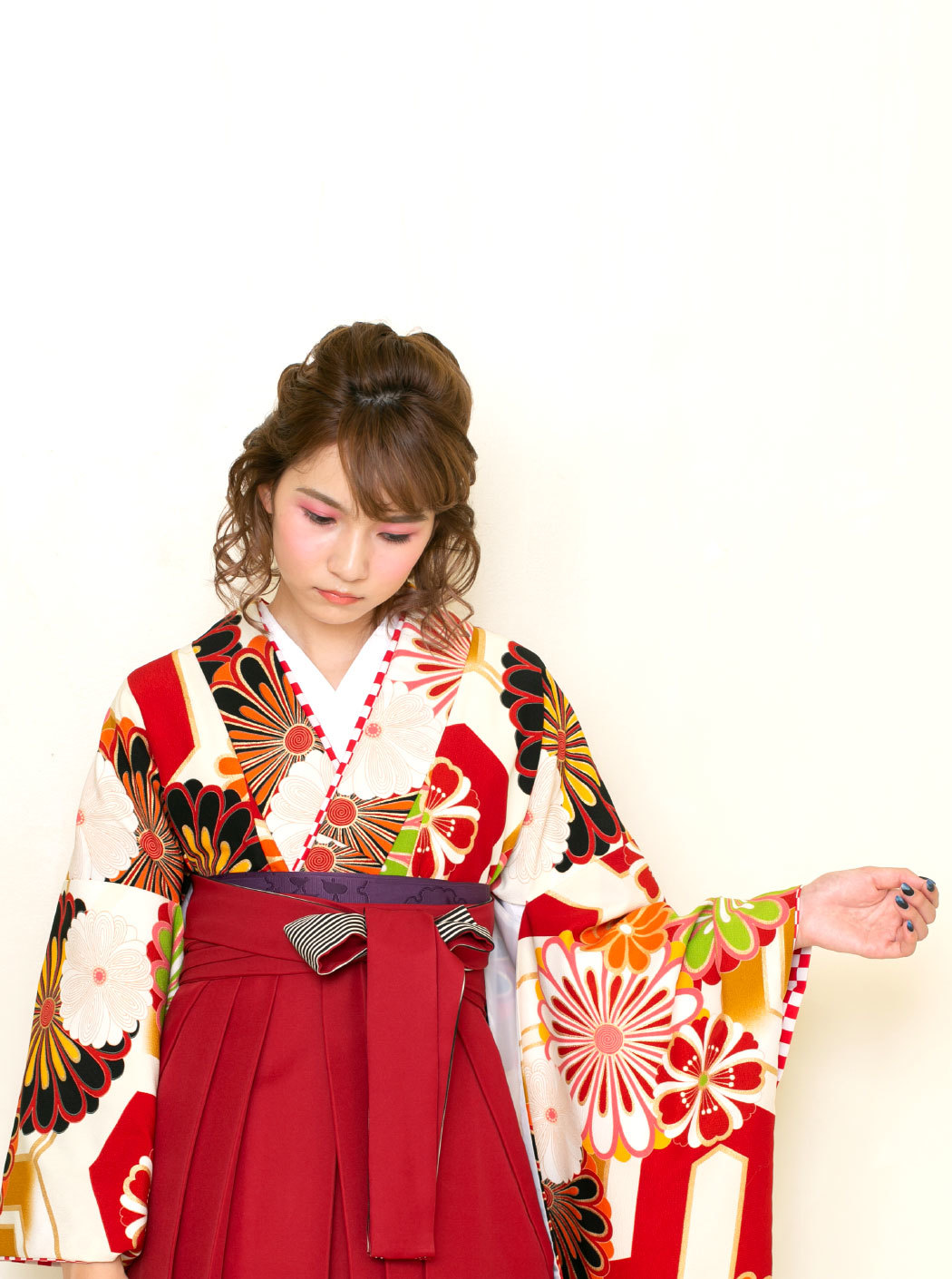 亀甲菊/赤(袴:梅刺繍/エンジ)