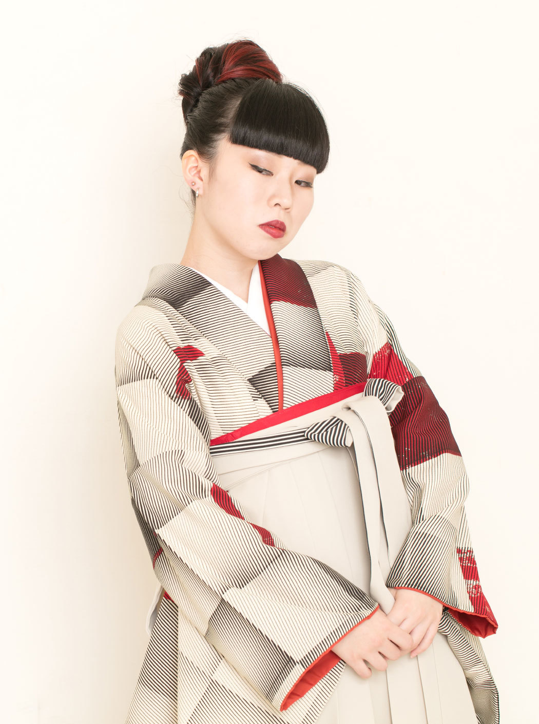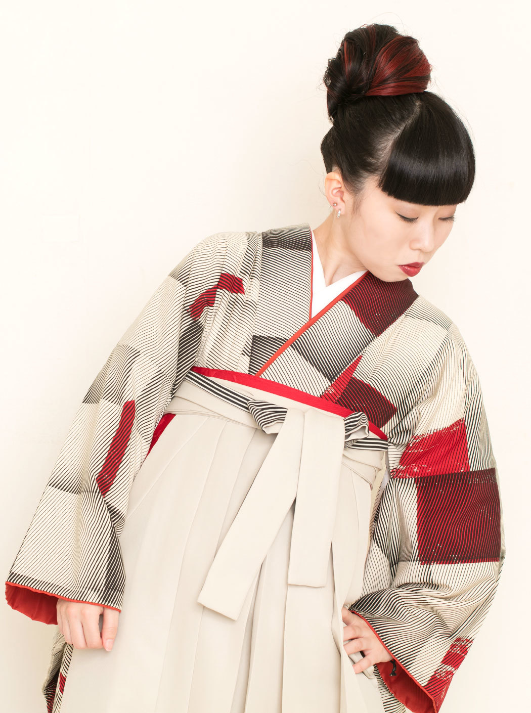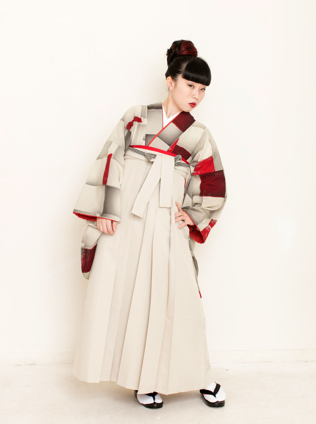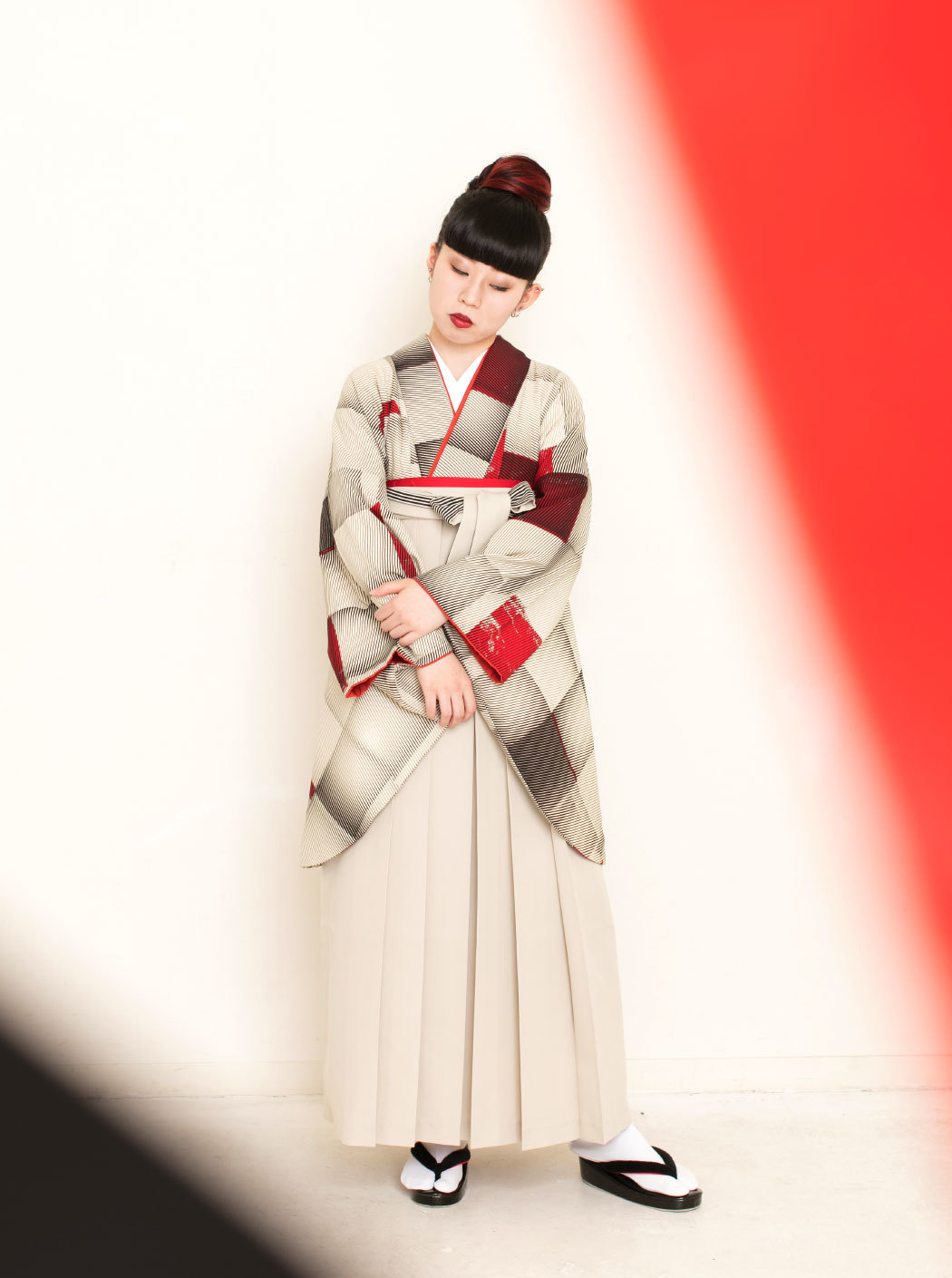 Cube/赤(袴:紐裏ストライプ/ベージュ)