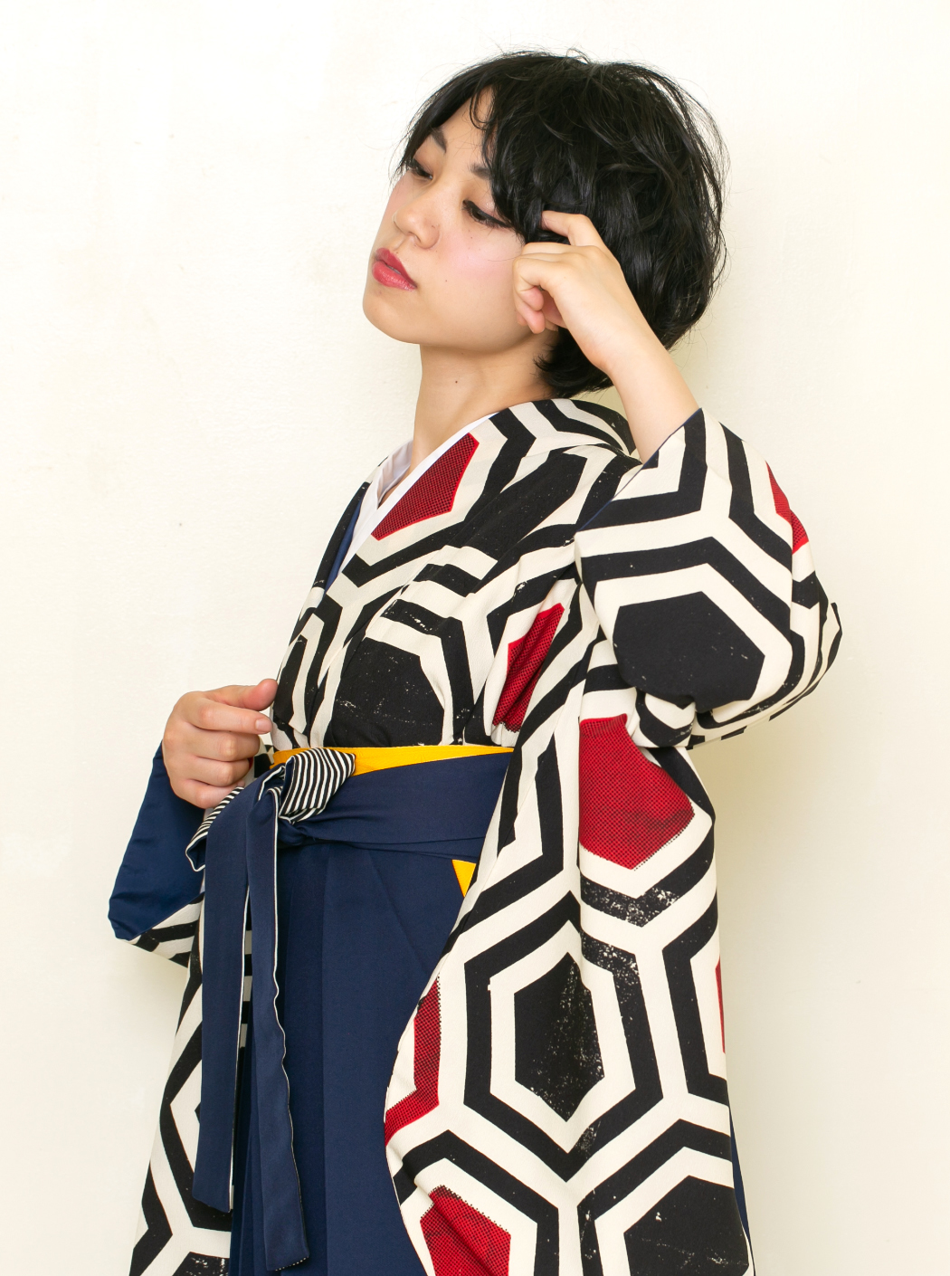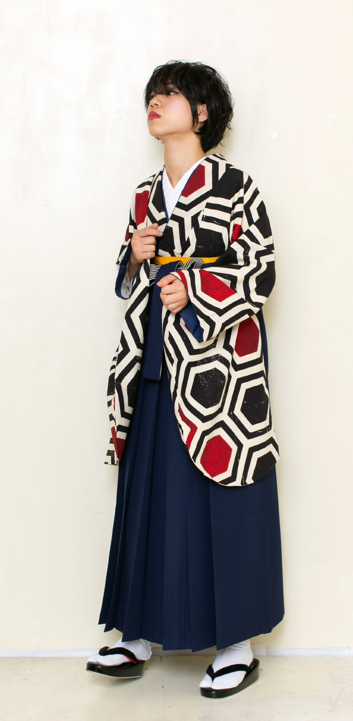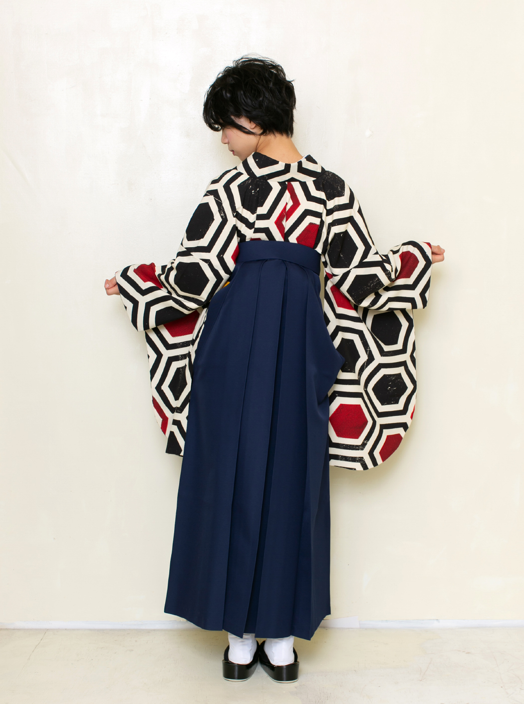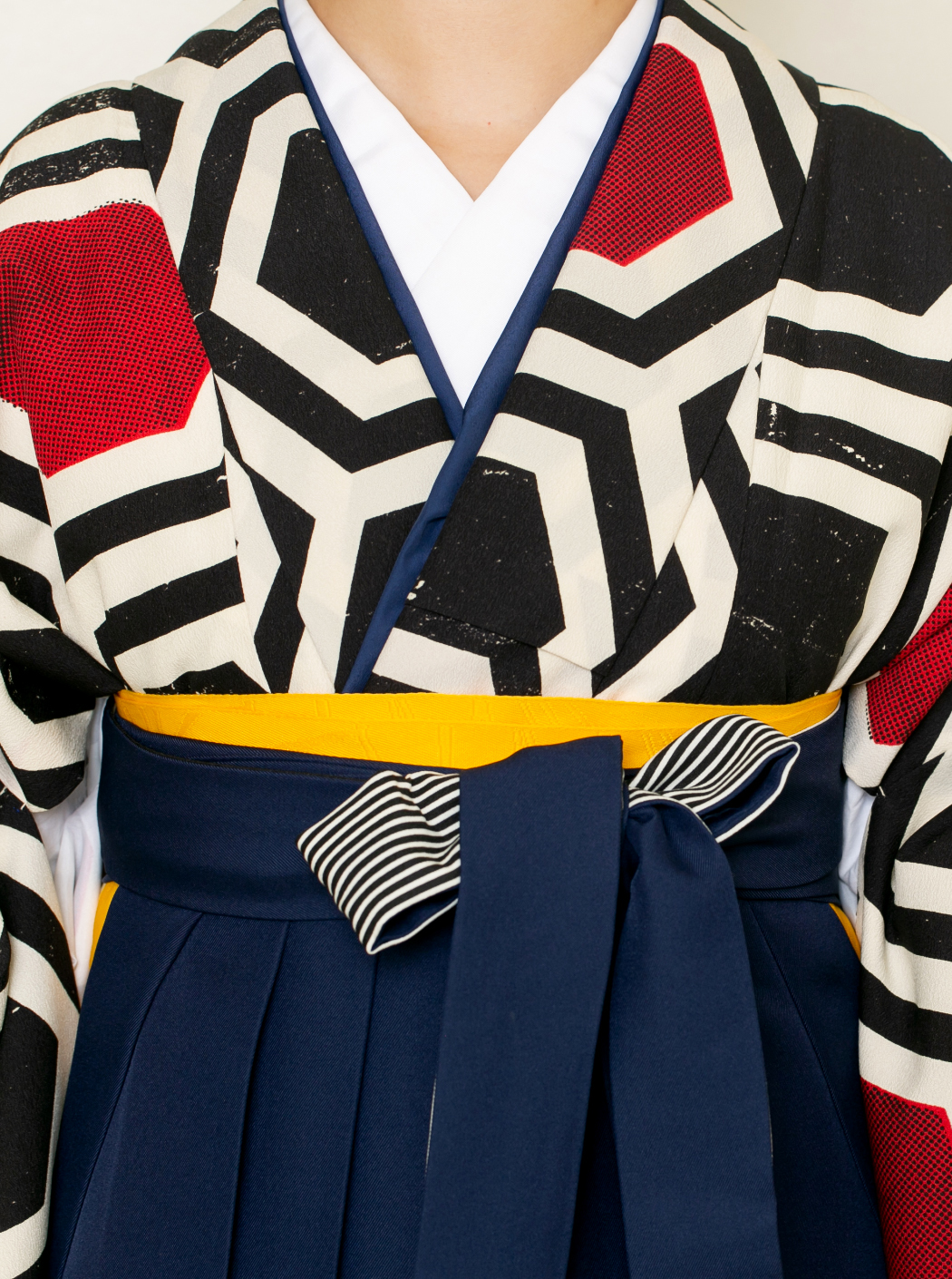 ヘキサゴン/黒(袴:紐裏ストライプ/紺)