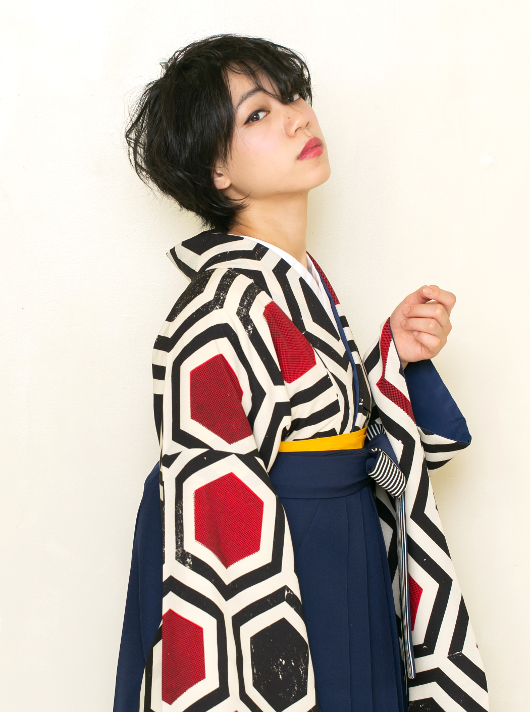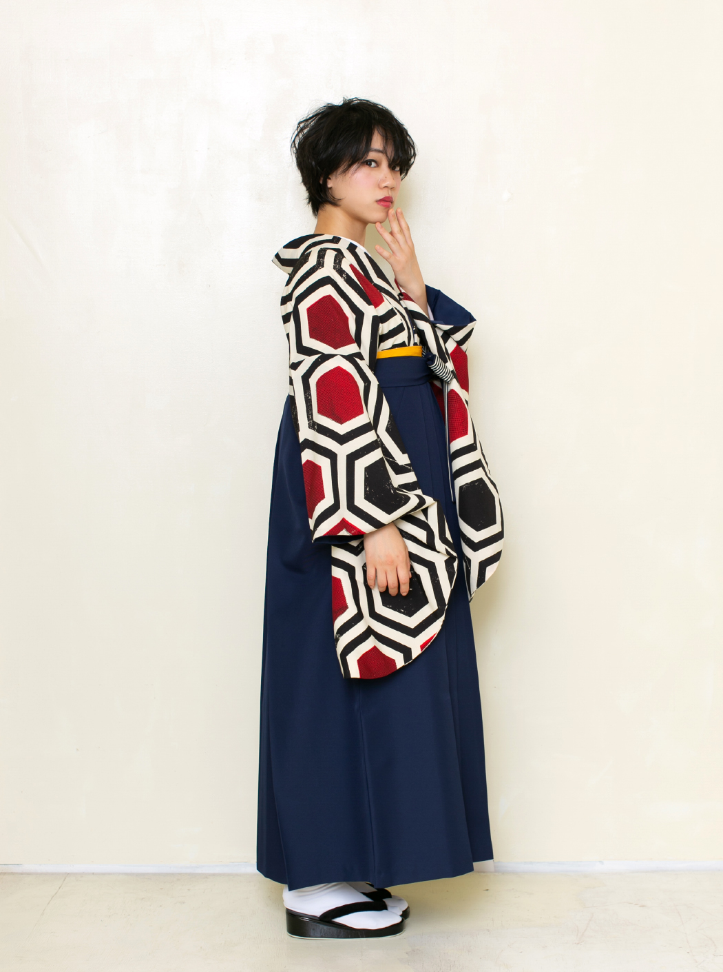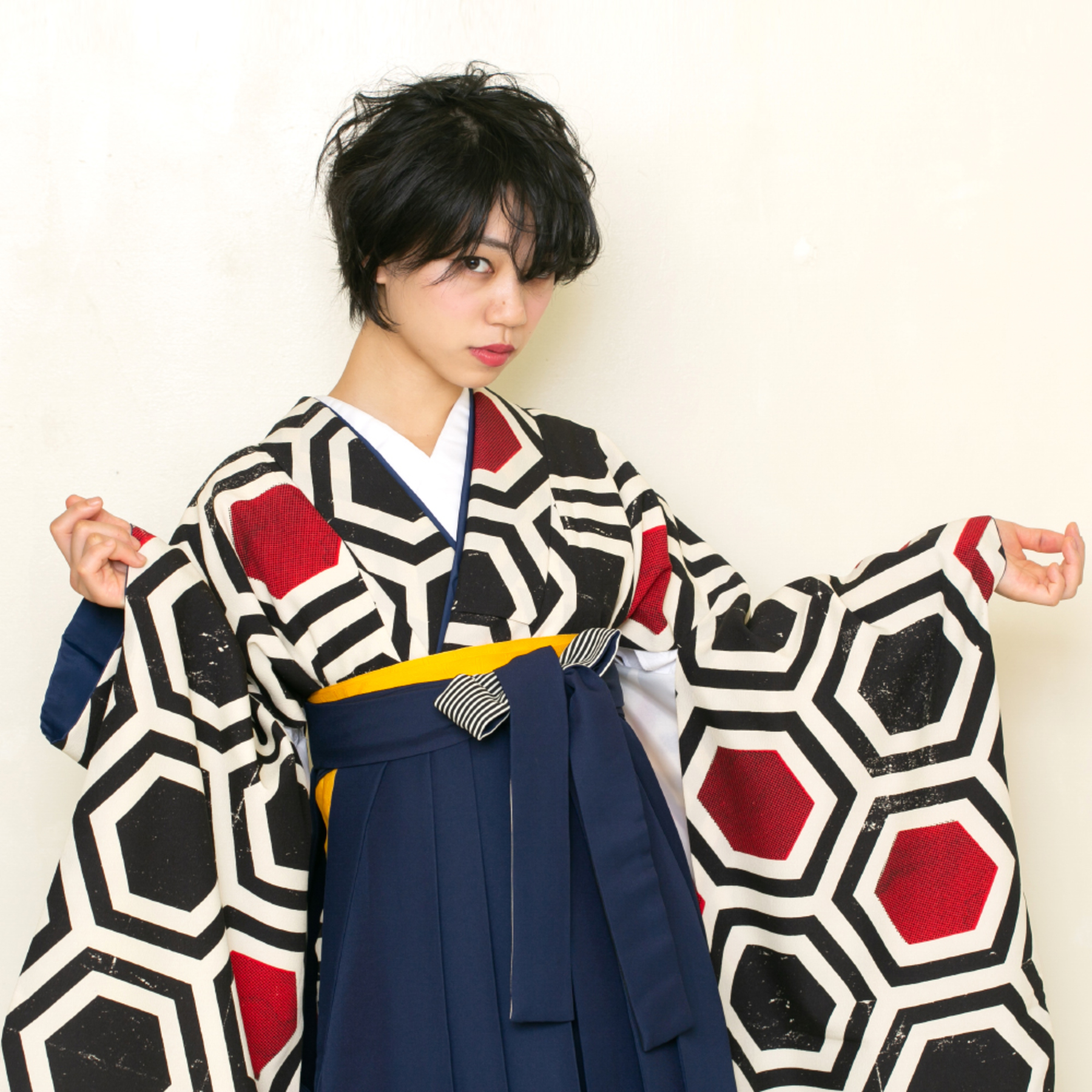 ヘキサゴン/黒(袴:紐裏ストライプ/紺)