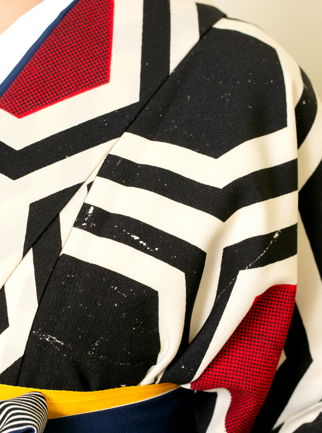 あえてずらされた黒色からちらりと鮮やかな赤色がのぞく。