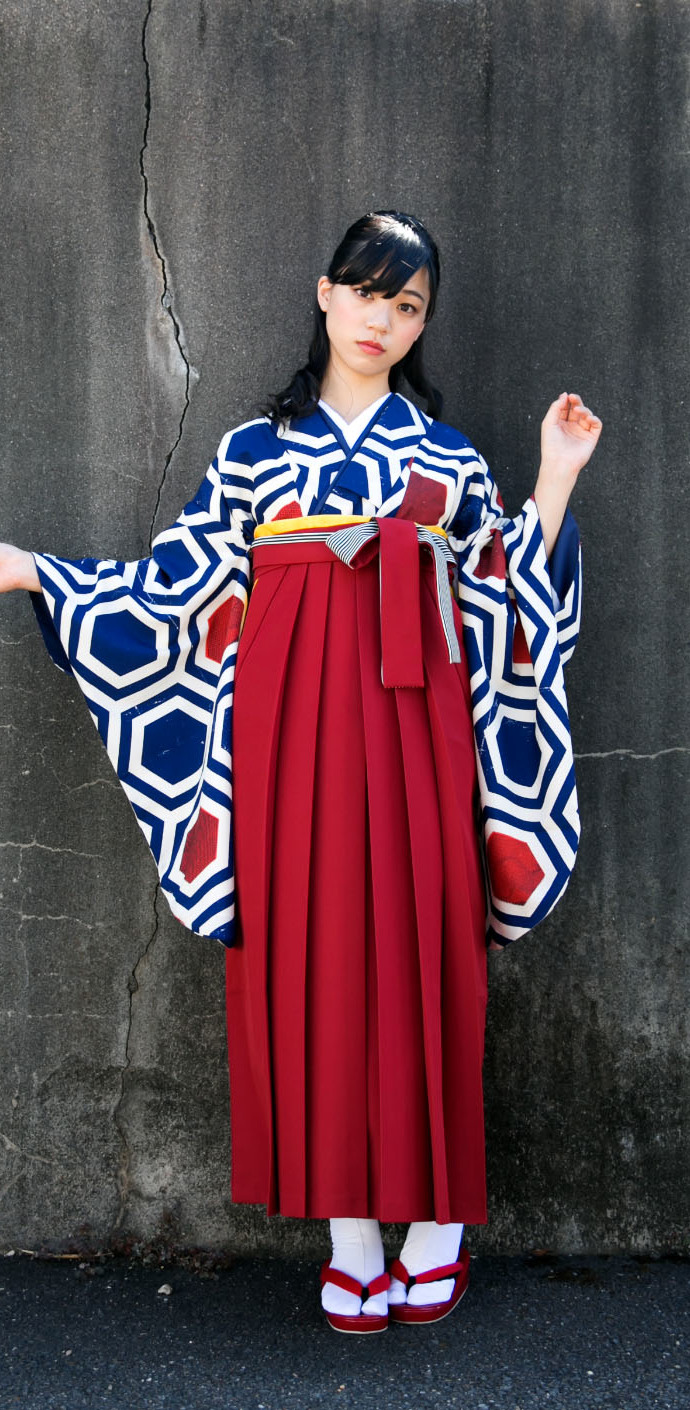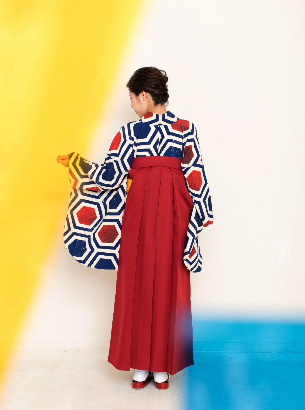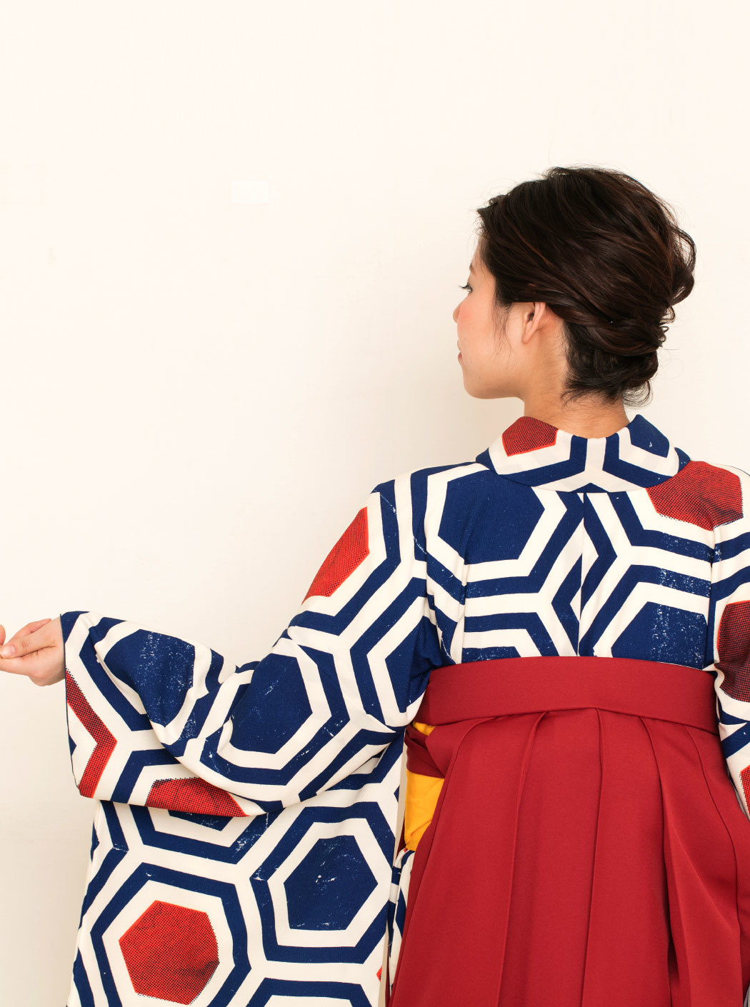 ヘキサゴン/紺(袴:紐裏ストライプ/赤)
