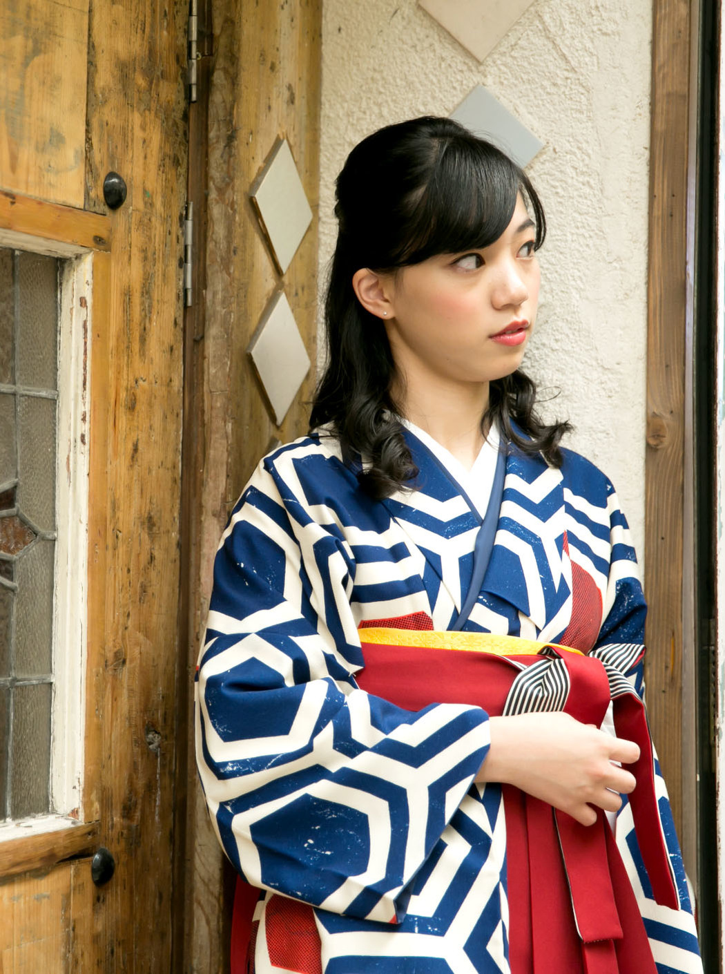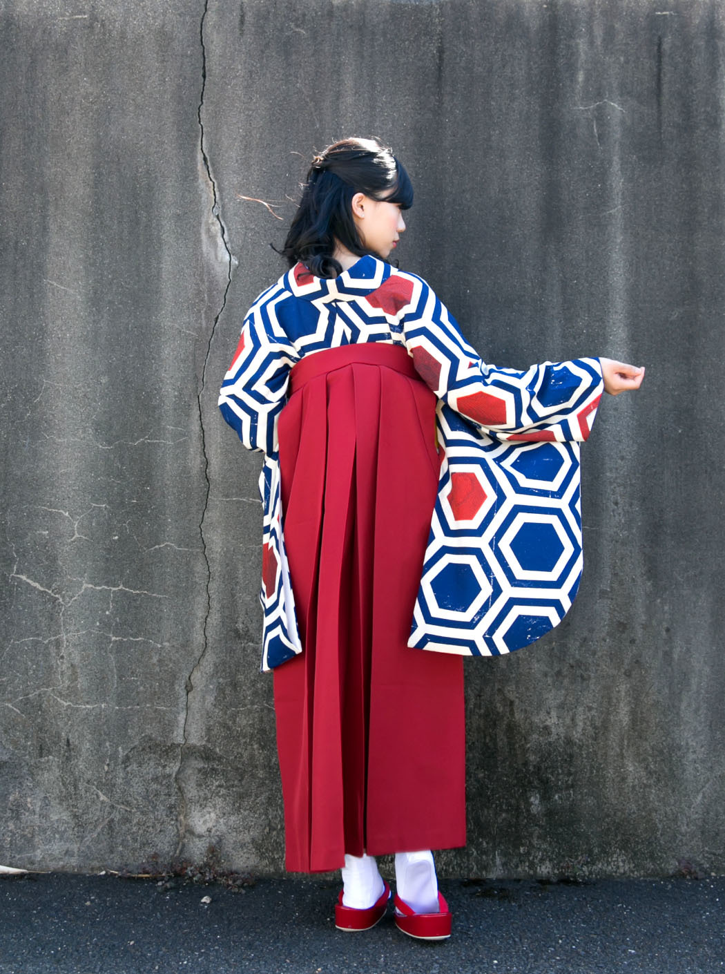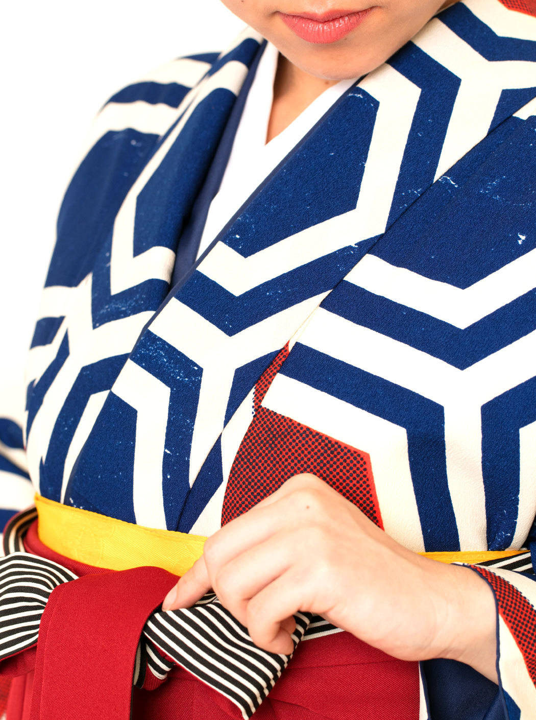 ヘキサゴン/紺(袴:紐裏ストライプ/赤)