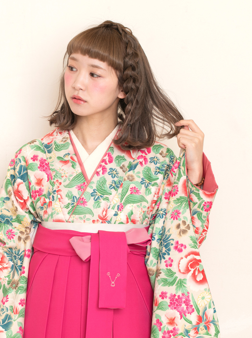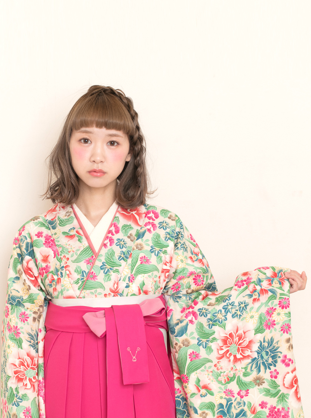 ブーケット/ベージュ(袴:アコーディオン/ピンク×クリーム)