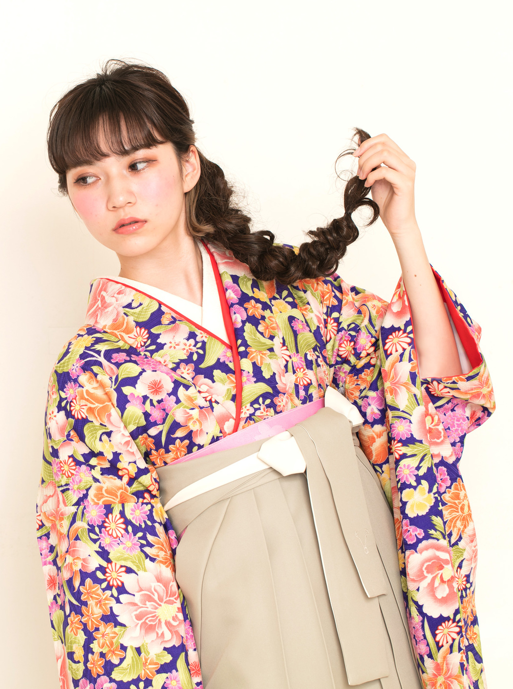 ブーケット/紫(袴:アコーディオン/ベージュ×クリーム)