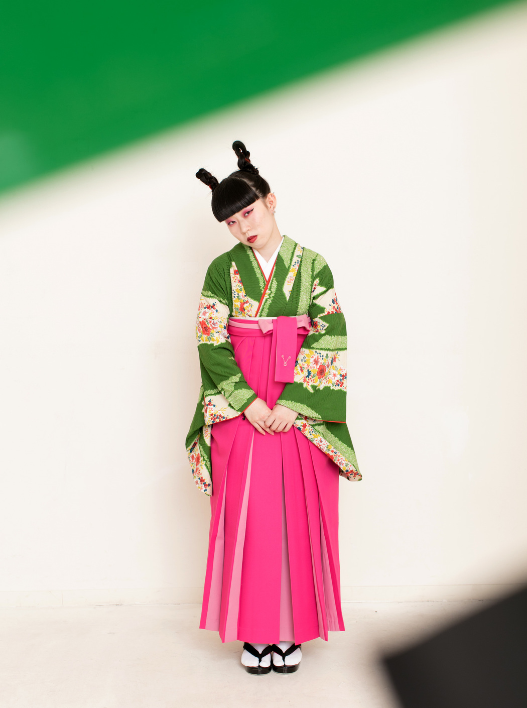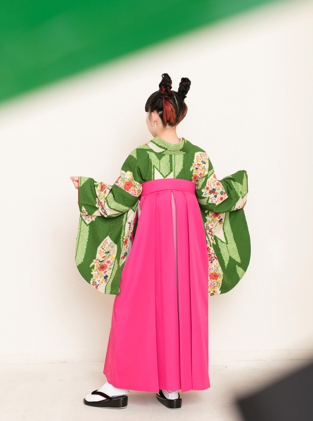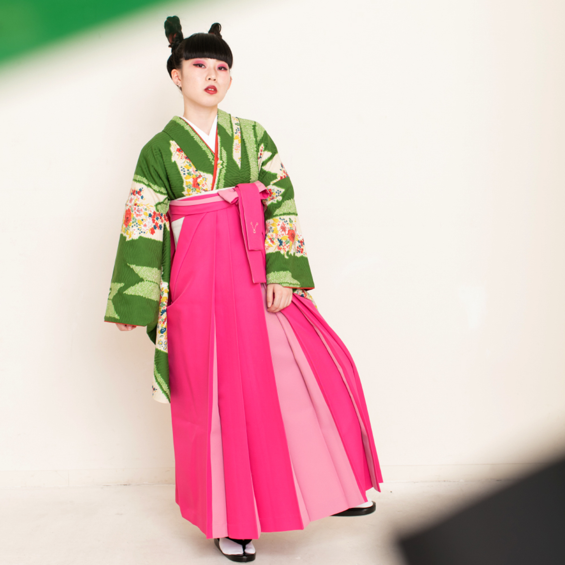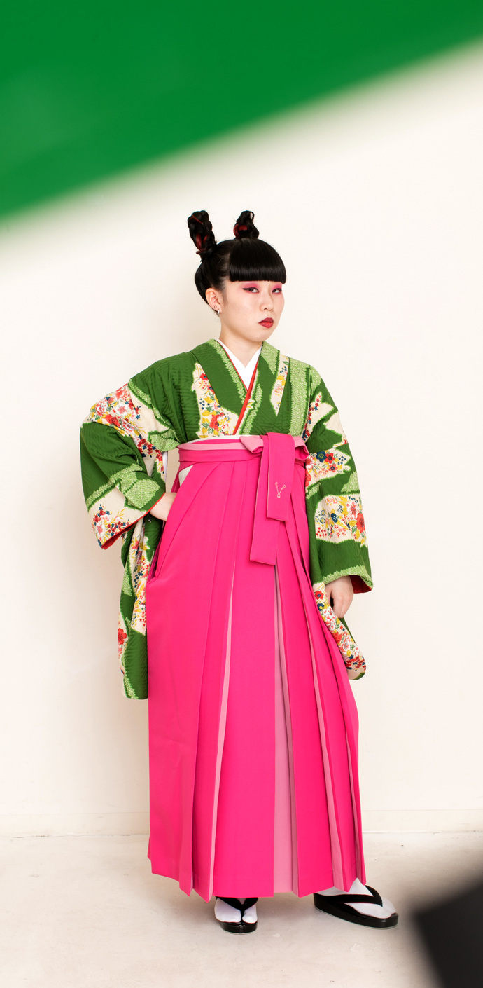 アシュリ/緑(袴:アコーディオン/ピンク×クリーム)