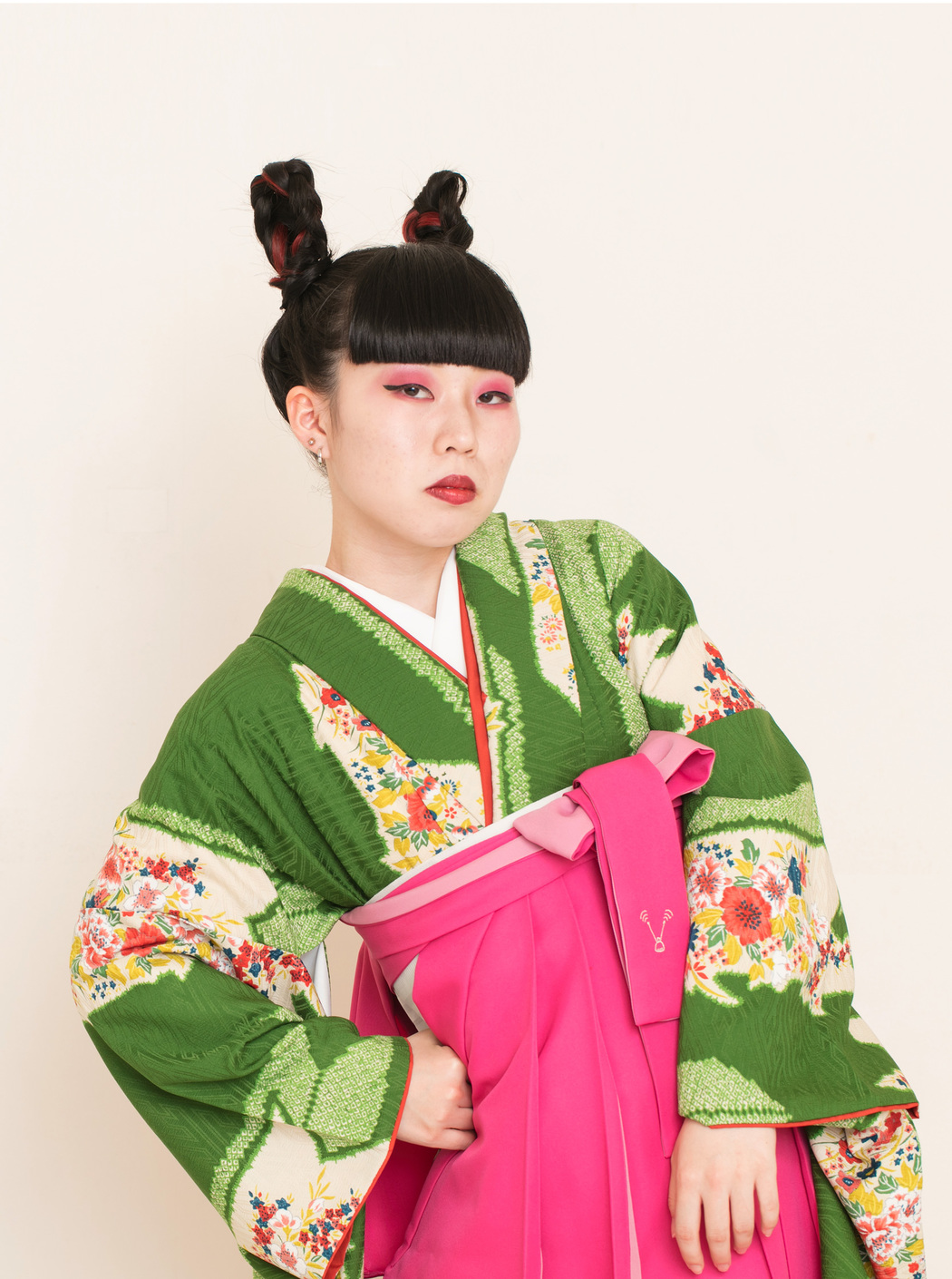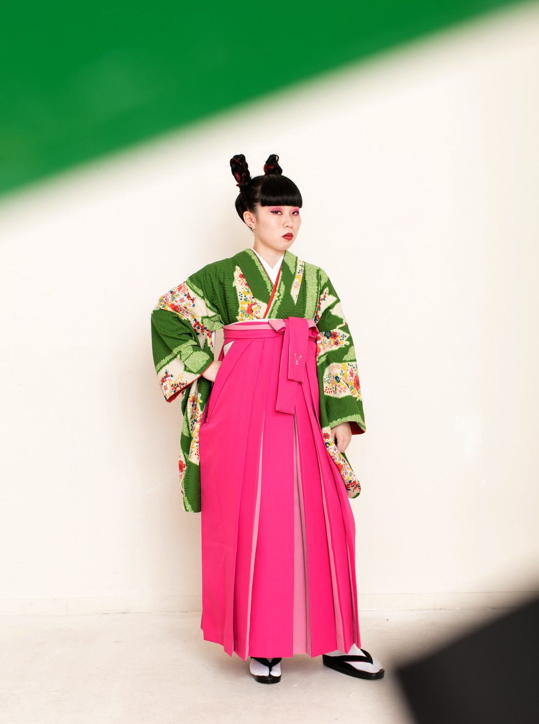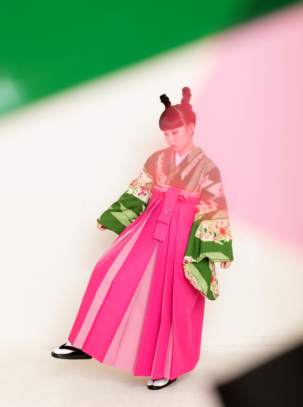 アシュリ/緑(袴:アコーディオン/ピンク×クリーム)