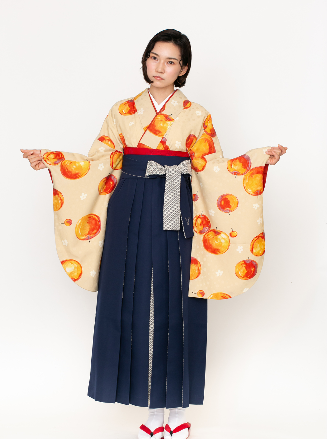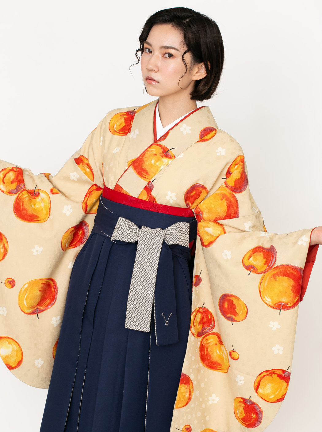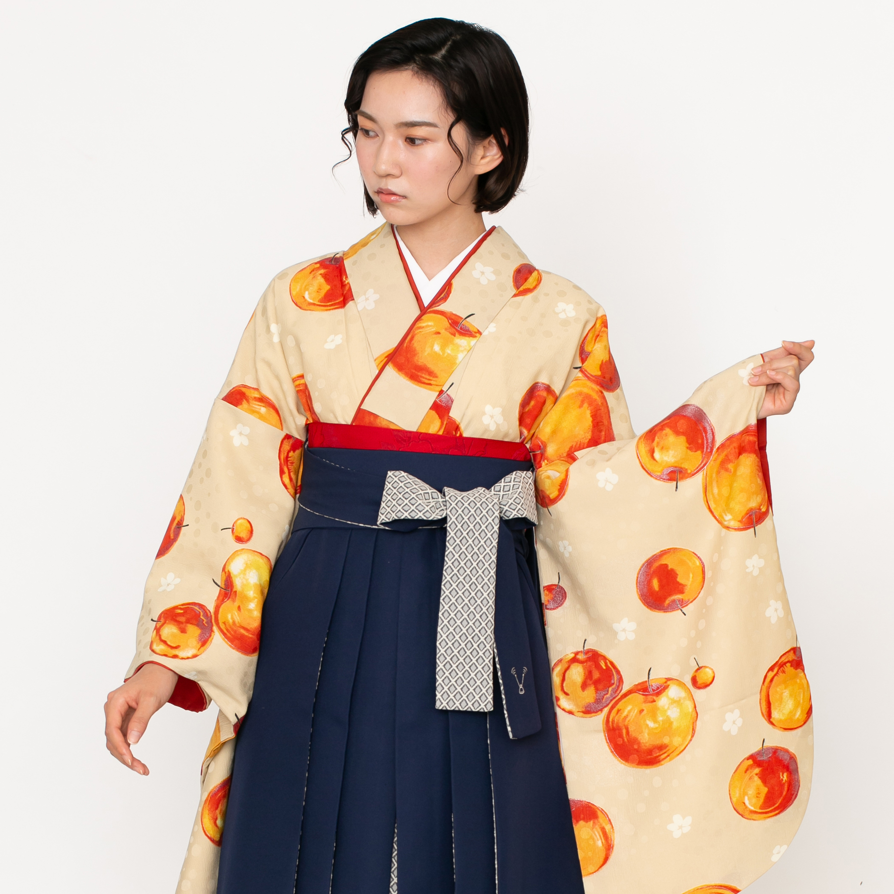 ペインティングリンゴ/ベージュ(袴:アコーディオン/紺×白レース)