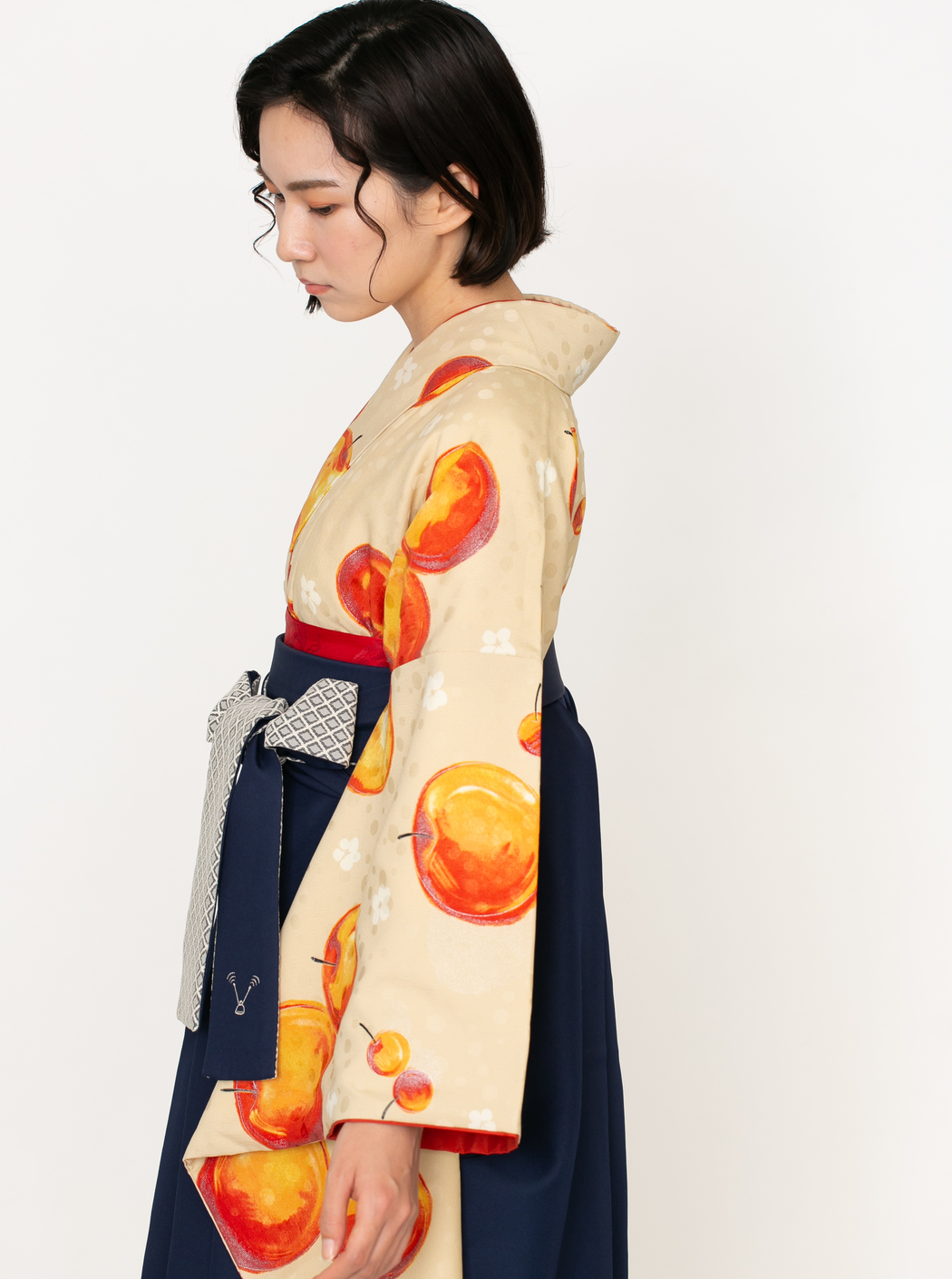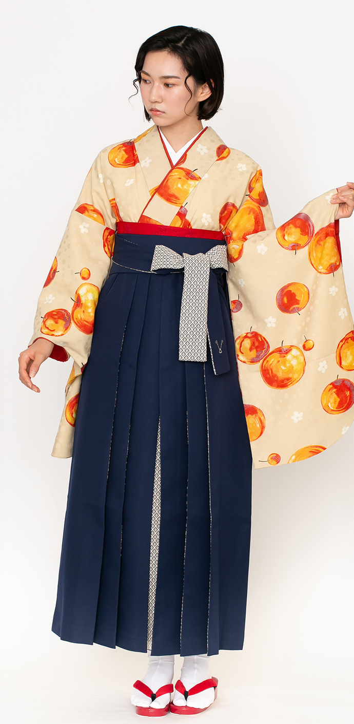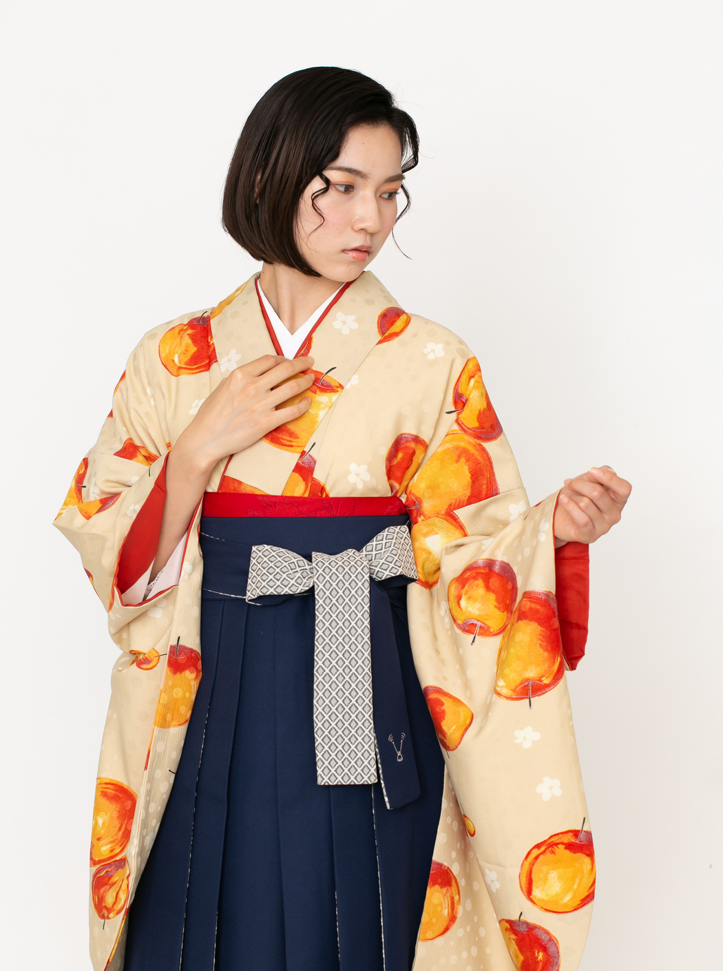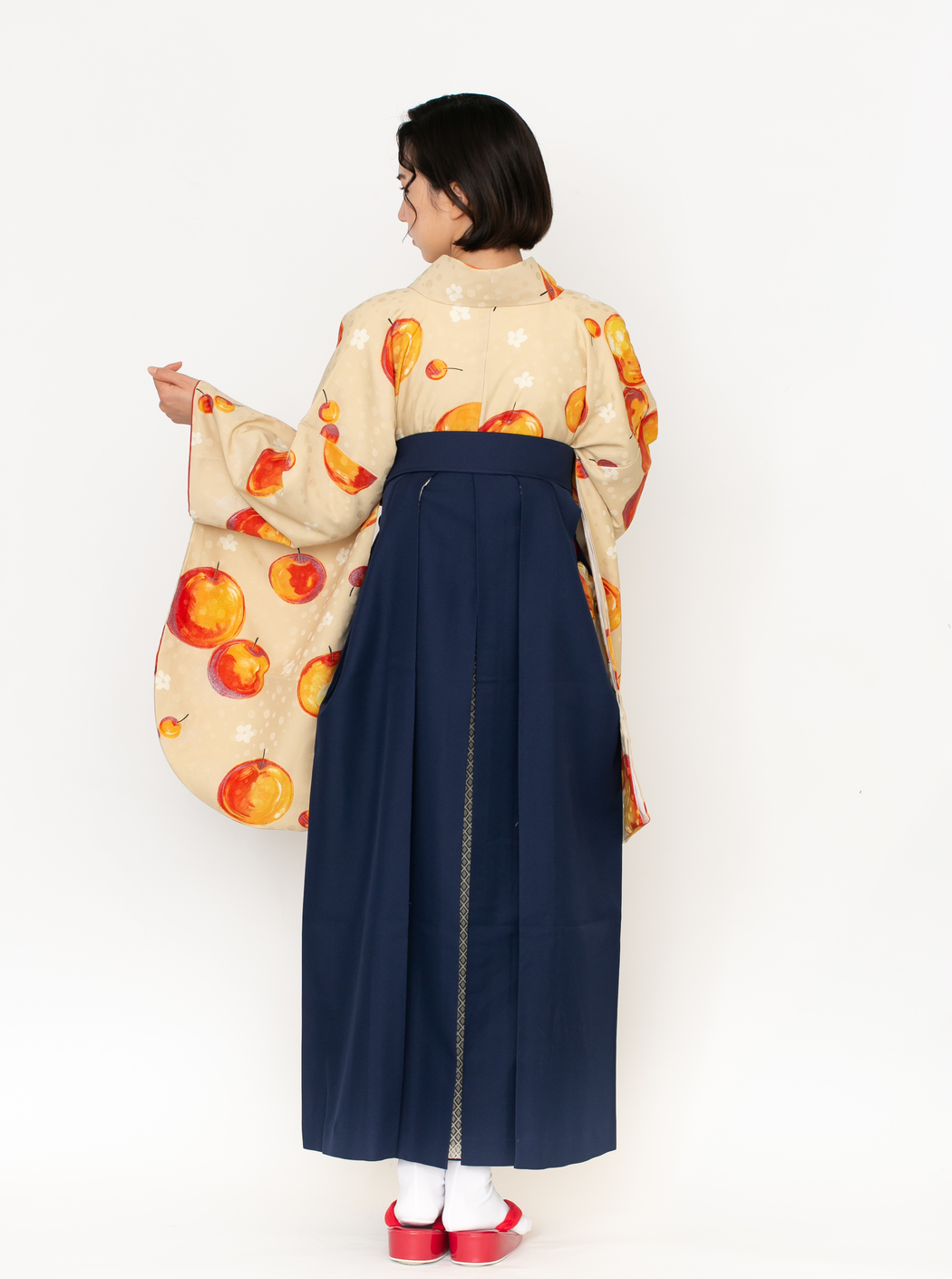 ペインティングリンゴ/ベージュ(袴:アコーディオン/紺×白レース)