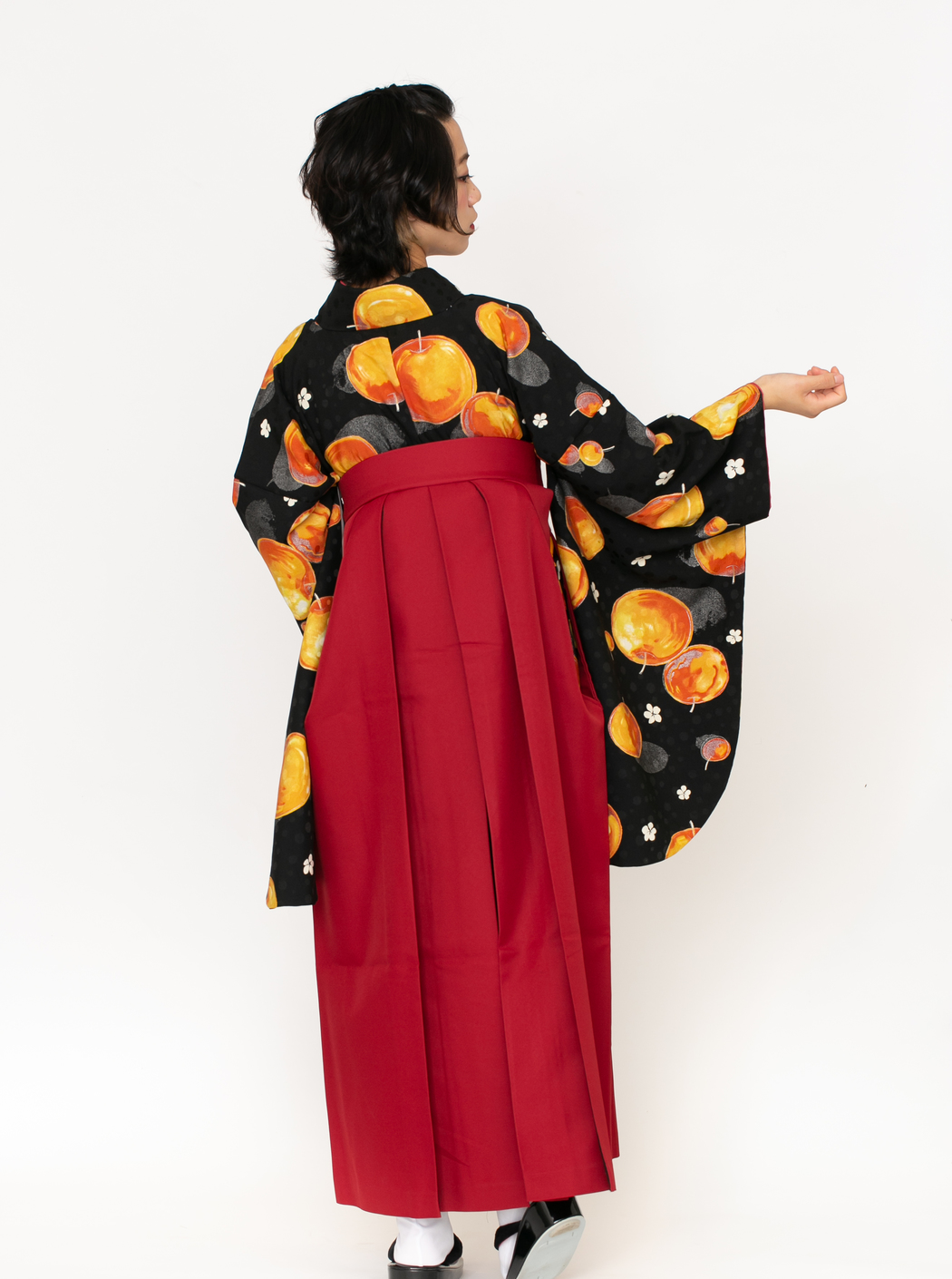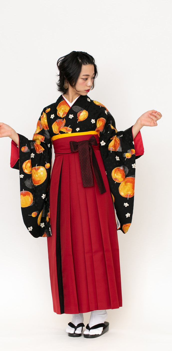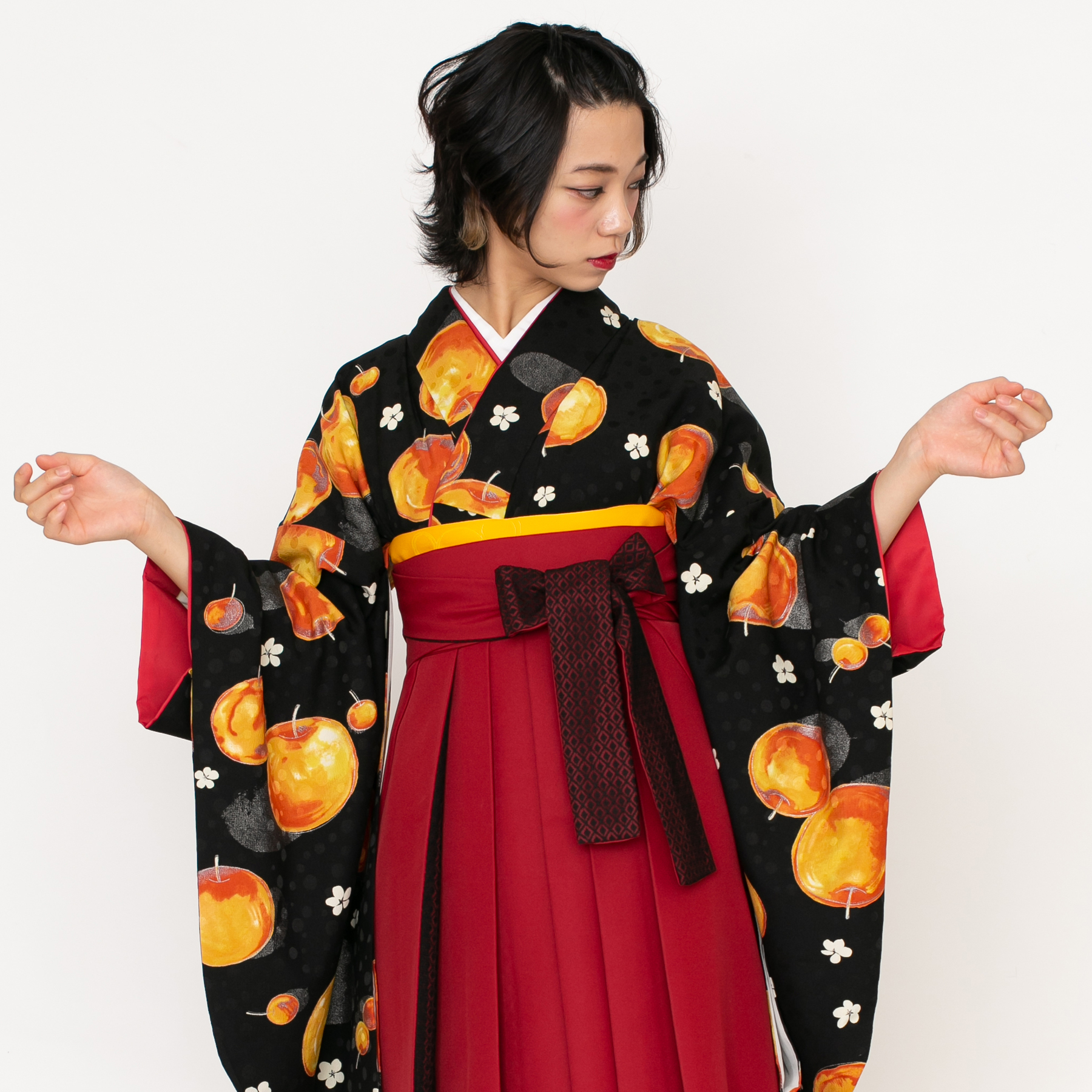 ペインティングリンゴ/黒(袴:アコーディオン/赤×黒レース)