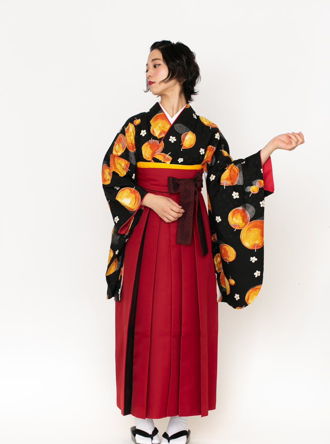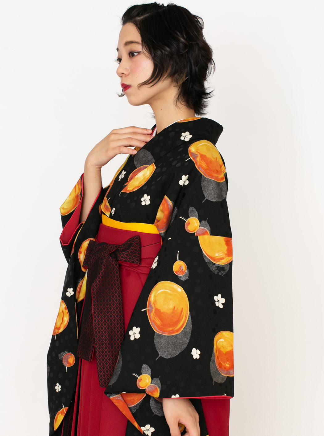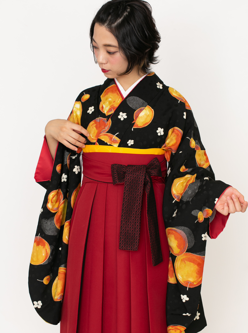 ペインティングリンゴ/黒(袴:アコーディオン/赤×黒レース)