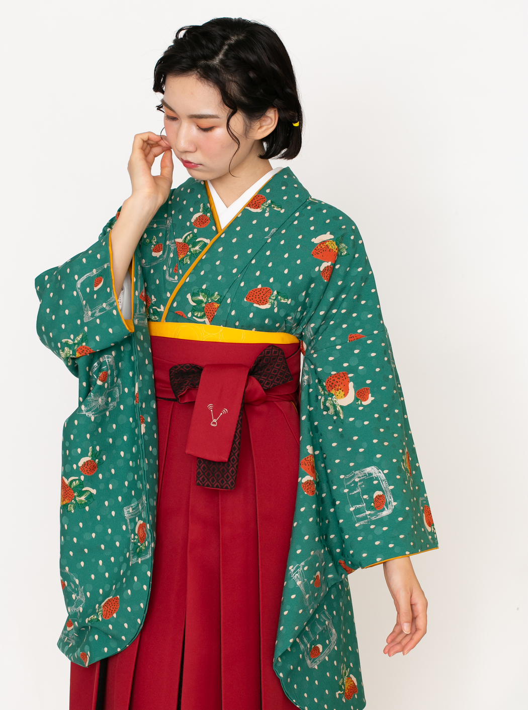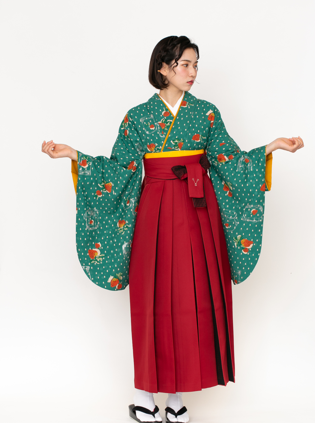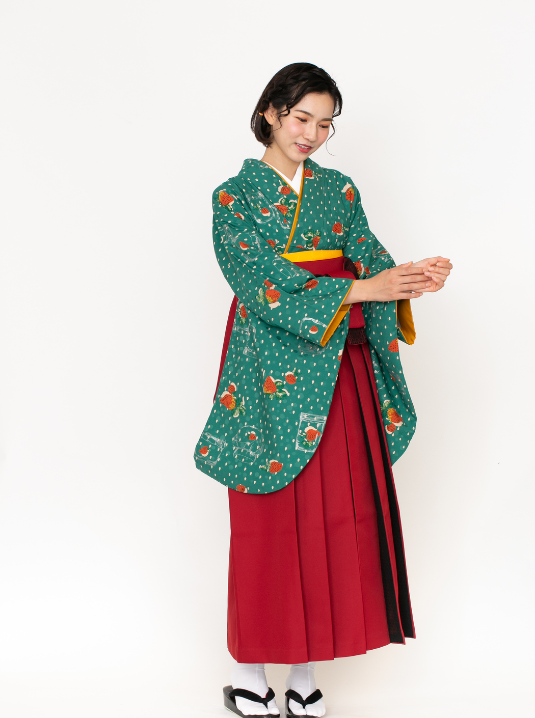 イチゴJAM/緑(袴:アコーディオン/赤×黒レース)