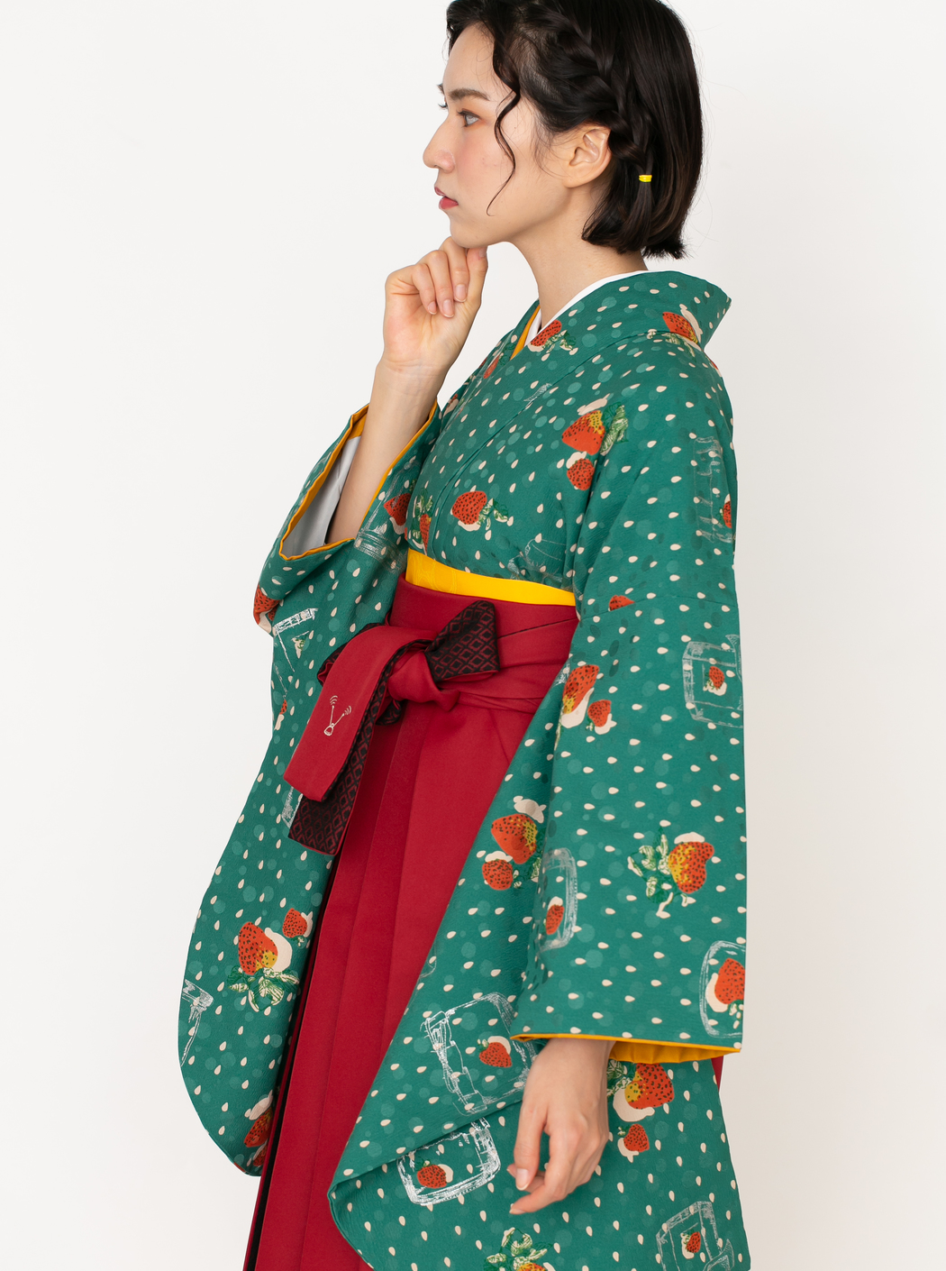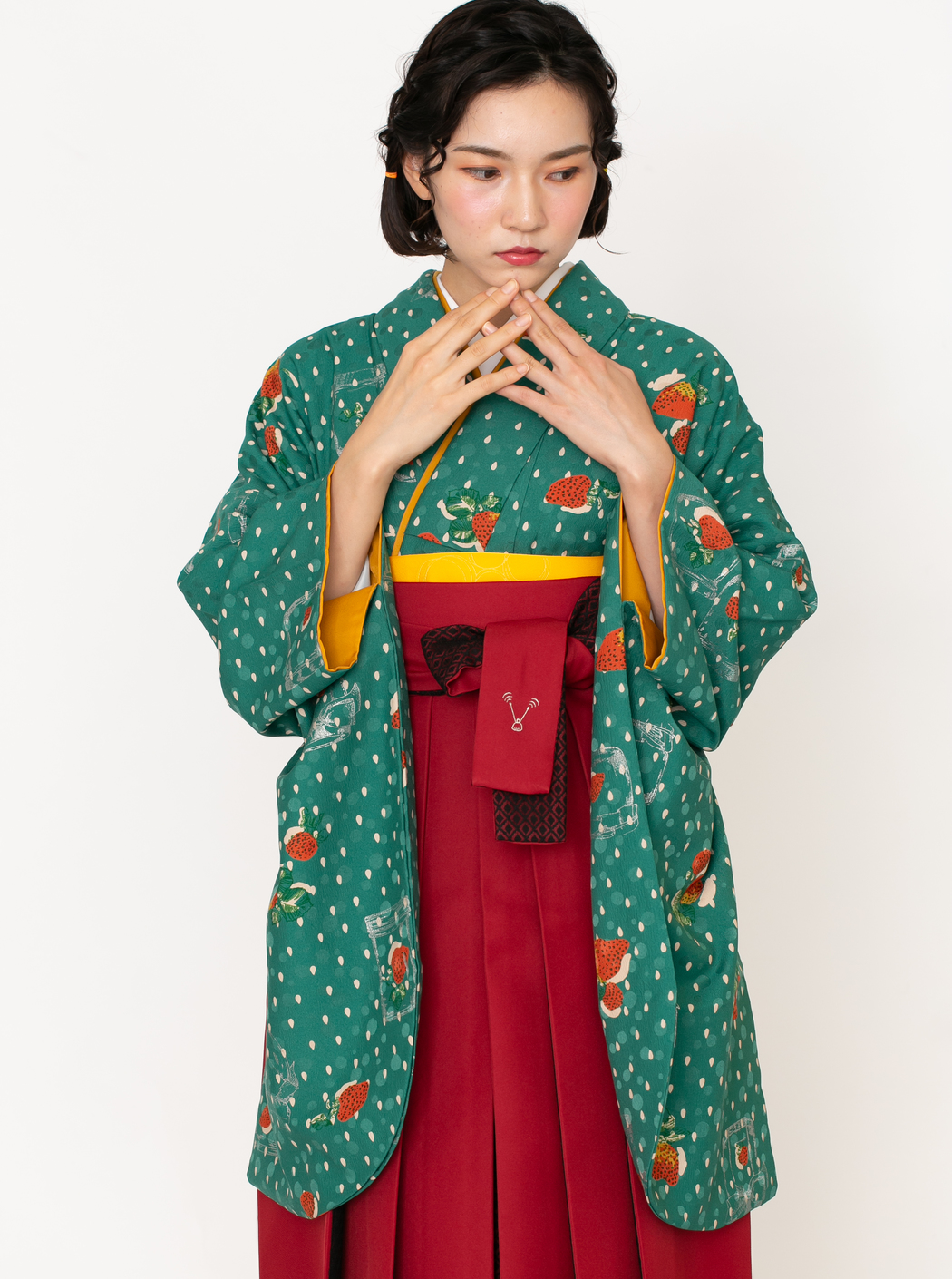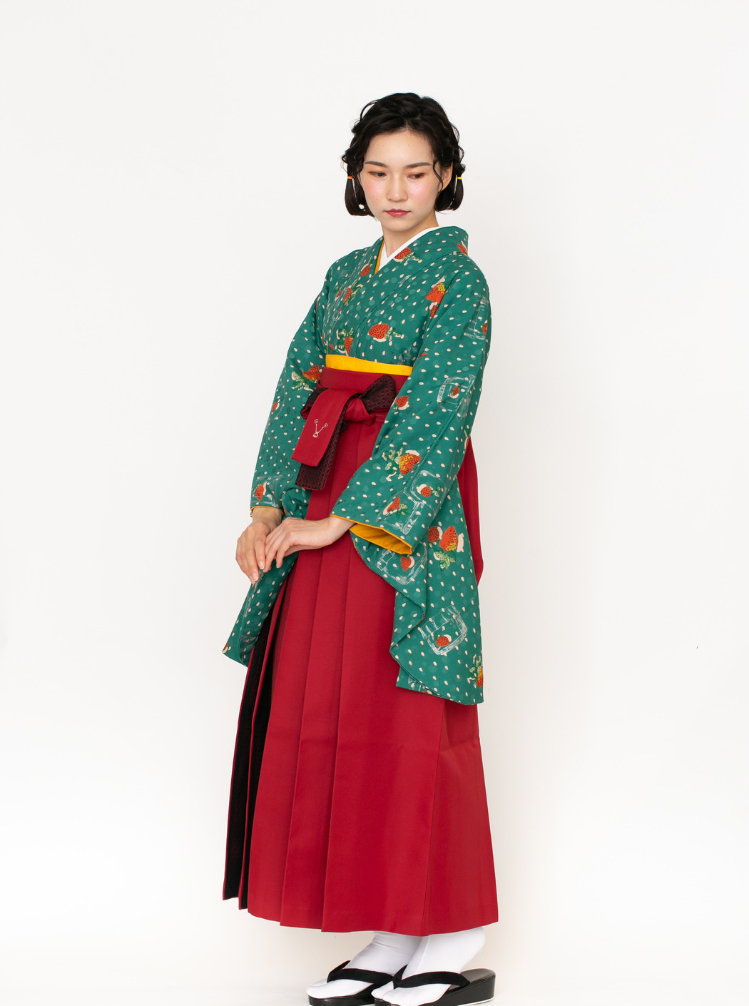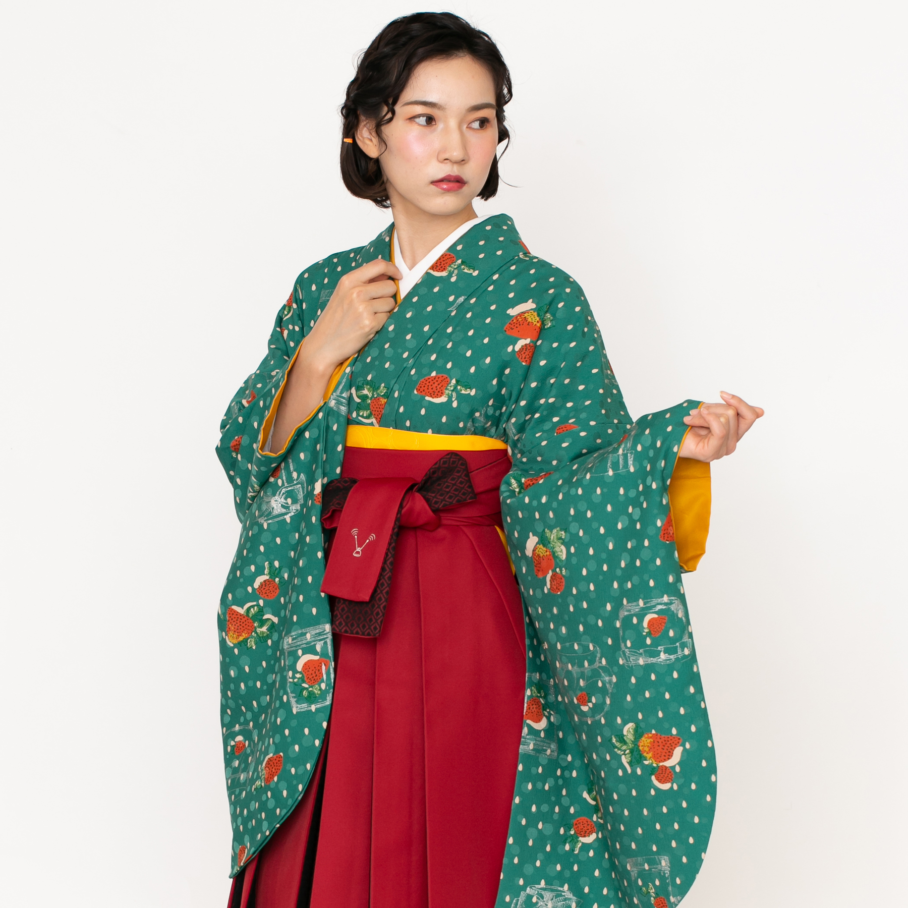 イチゴJAM/緑(袴:アコーディオン/赤×黒レース)