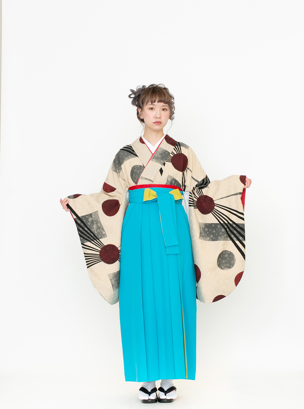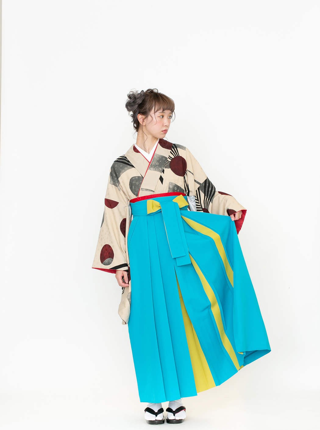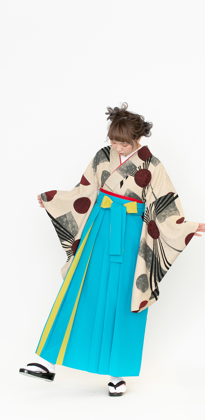 再生/ベージュ(袴:アコーディオン/青×黄)