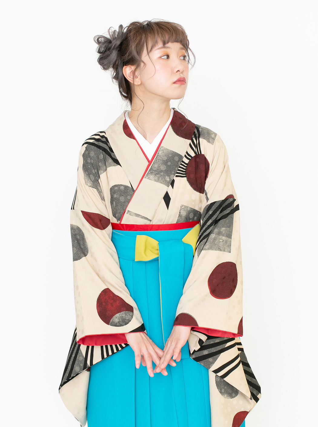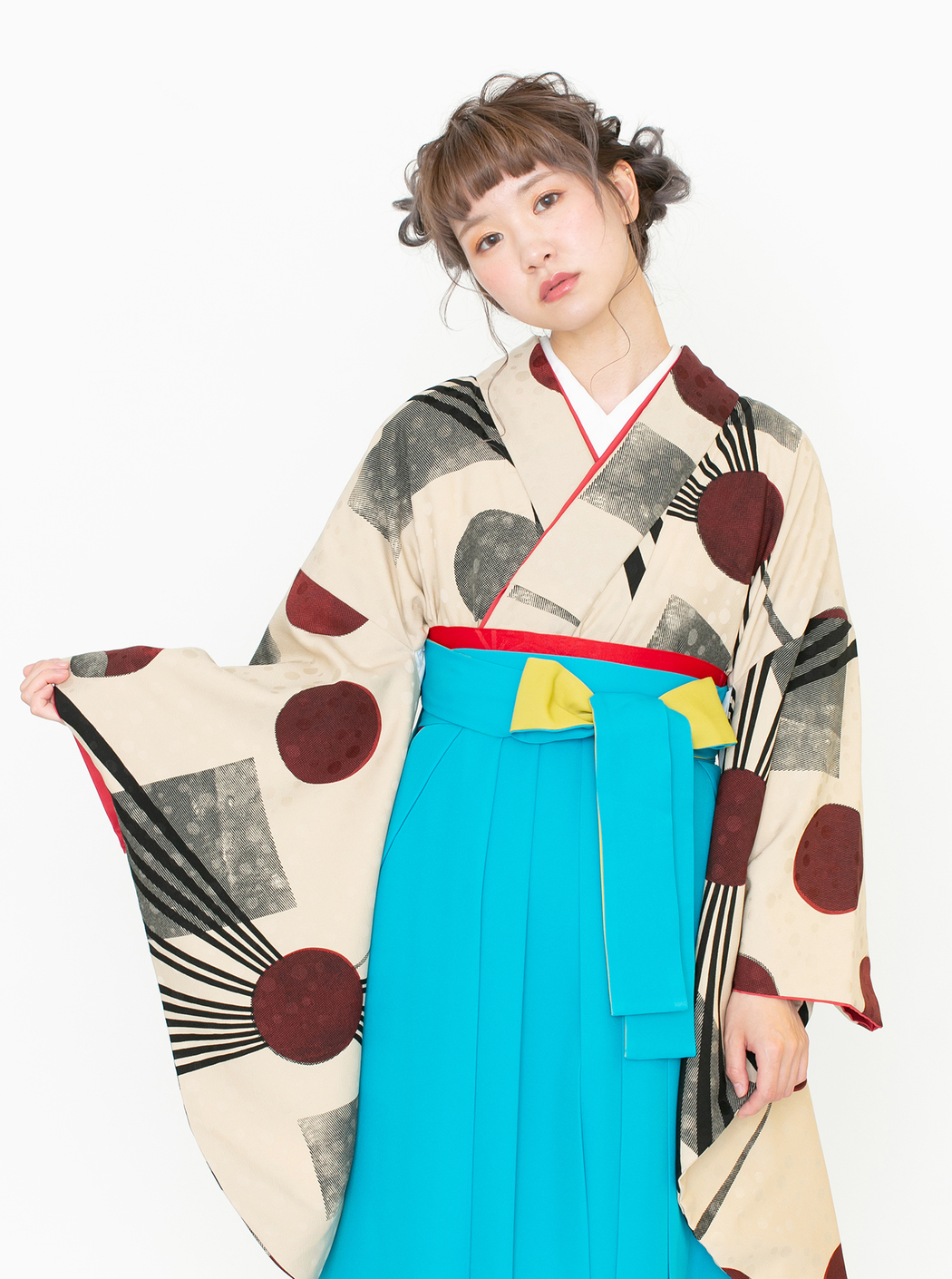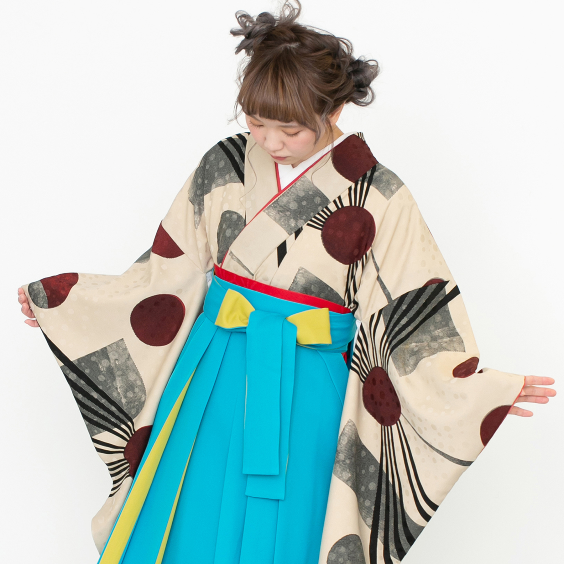 再生/ベージュ(袴:アコーディオン/青×黄)