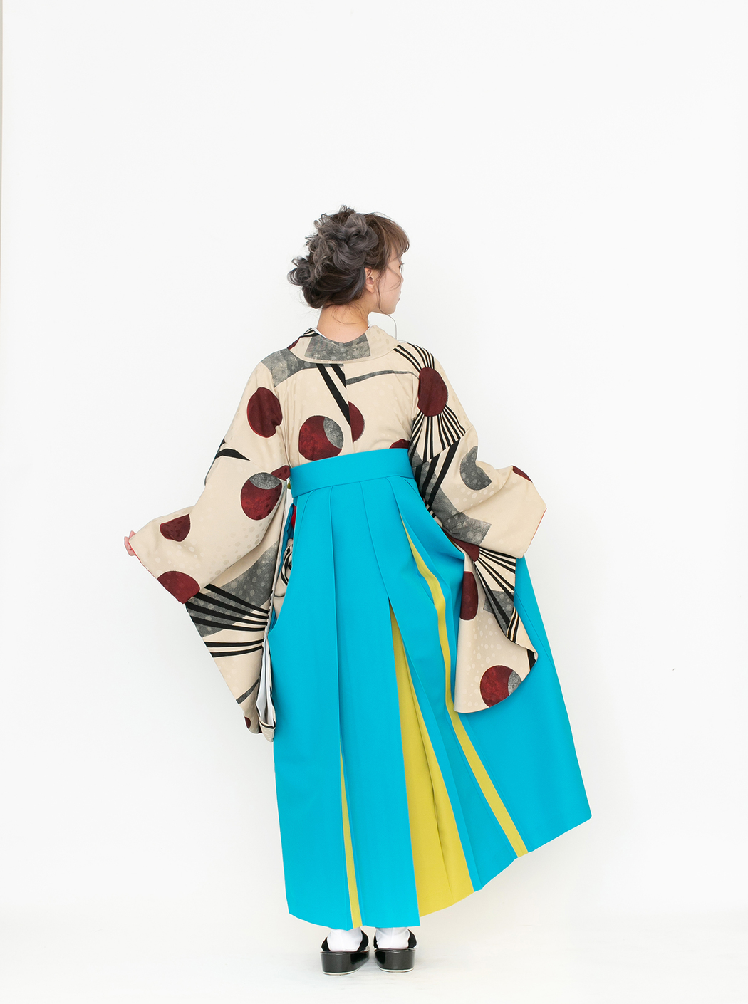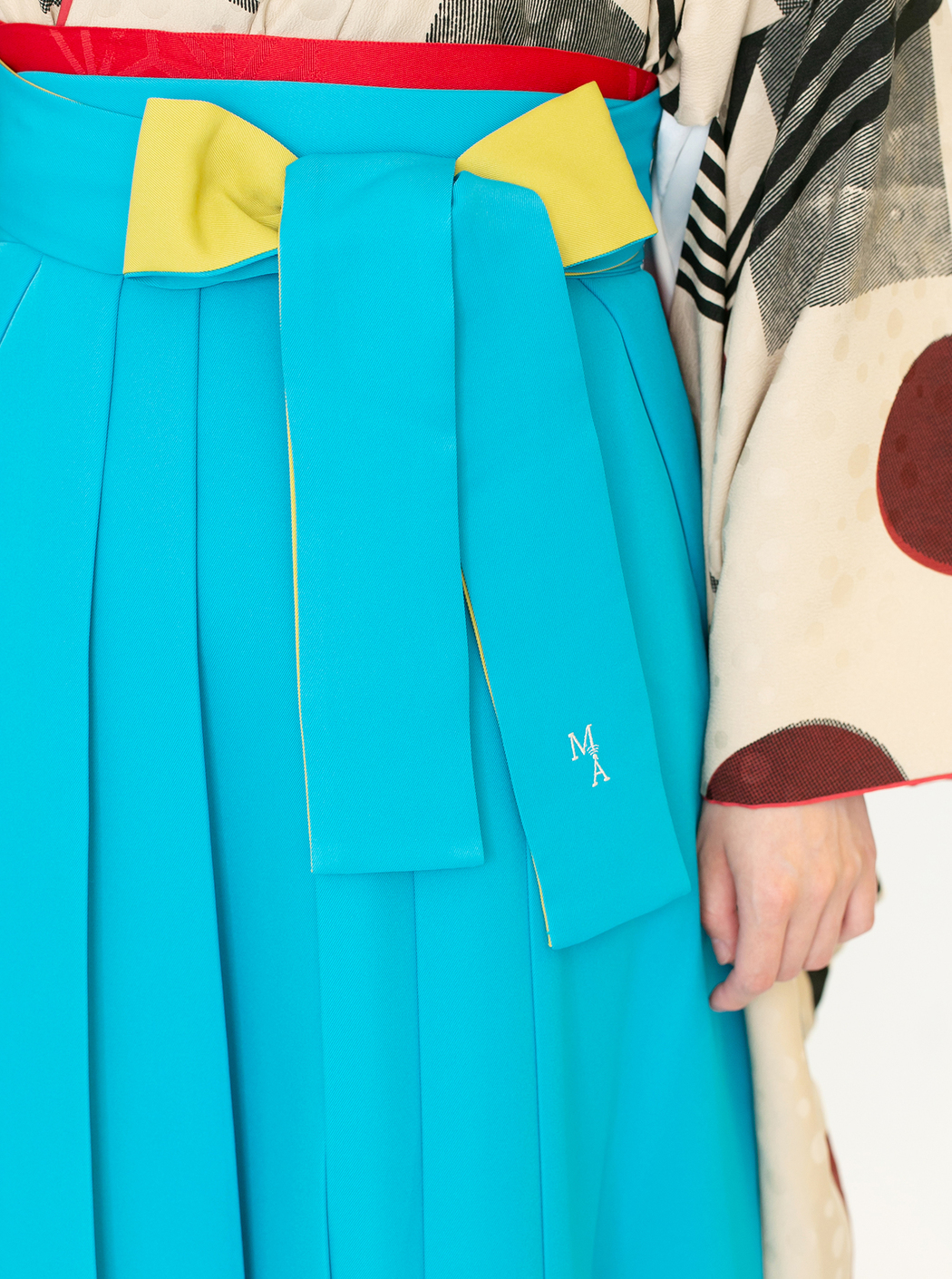 袴はブルーとイエローの切り返し。