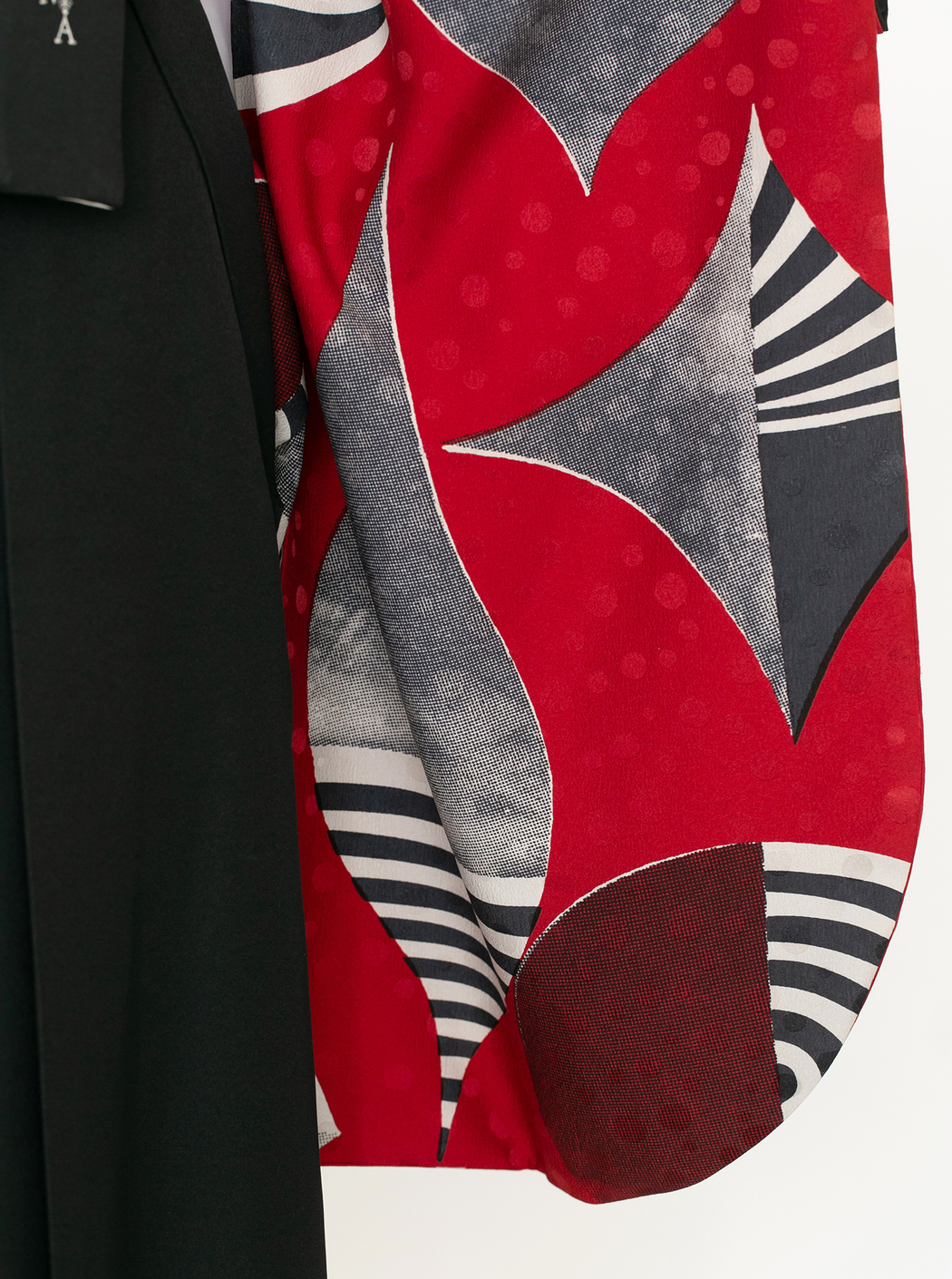 「浮遊」というテーマでモダンアンテナがデザインした二尺袖の着物です。ポップでアーティスティックな柄です。