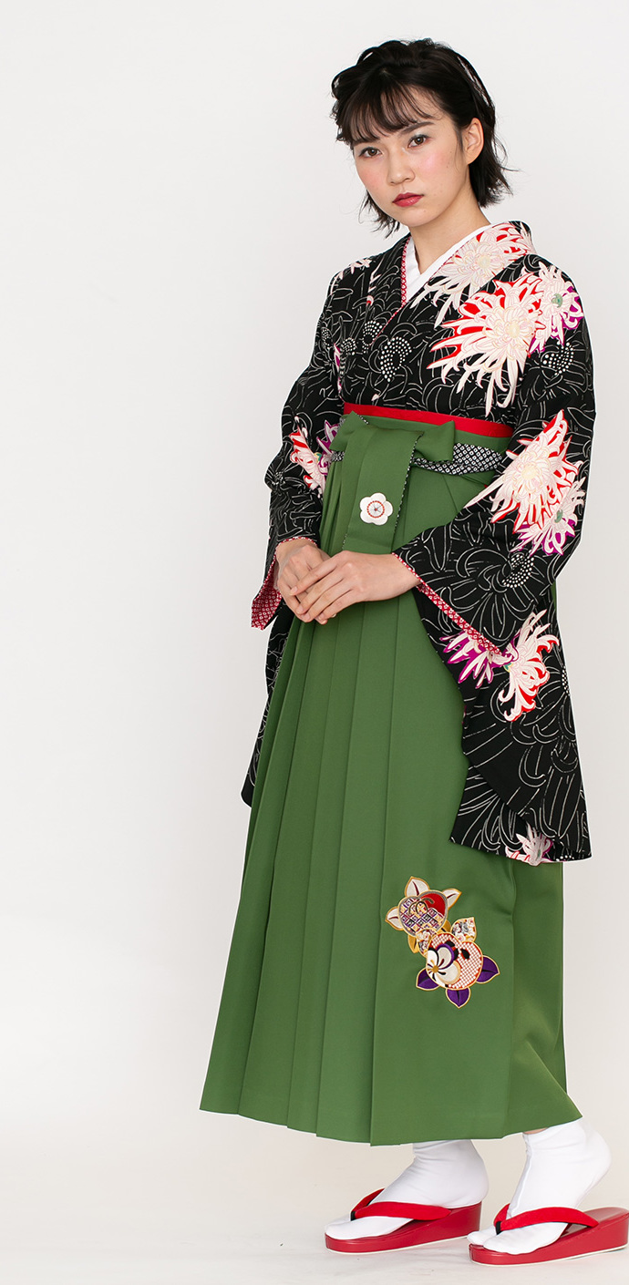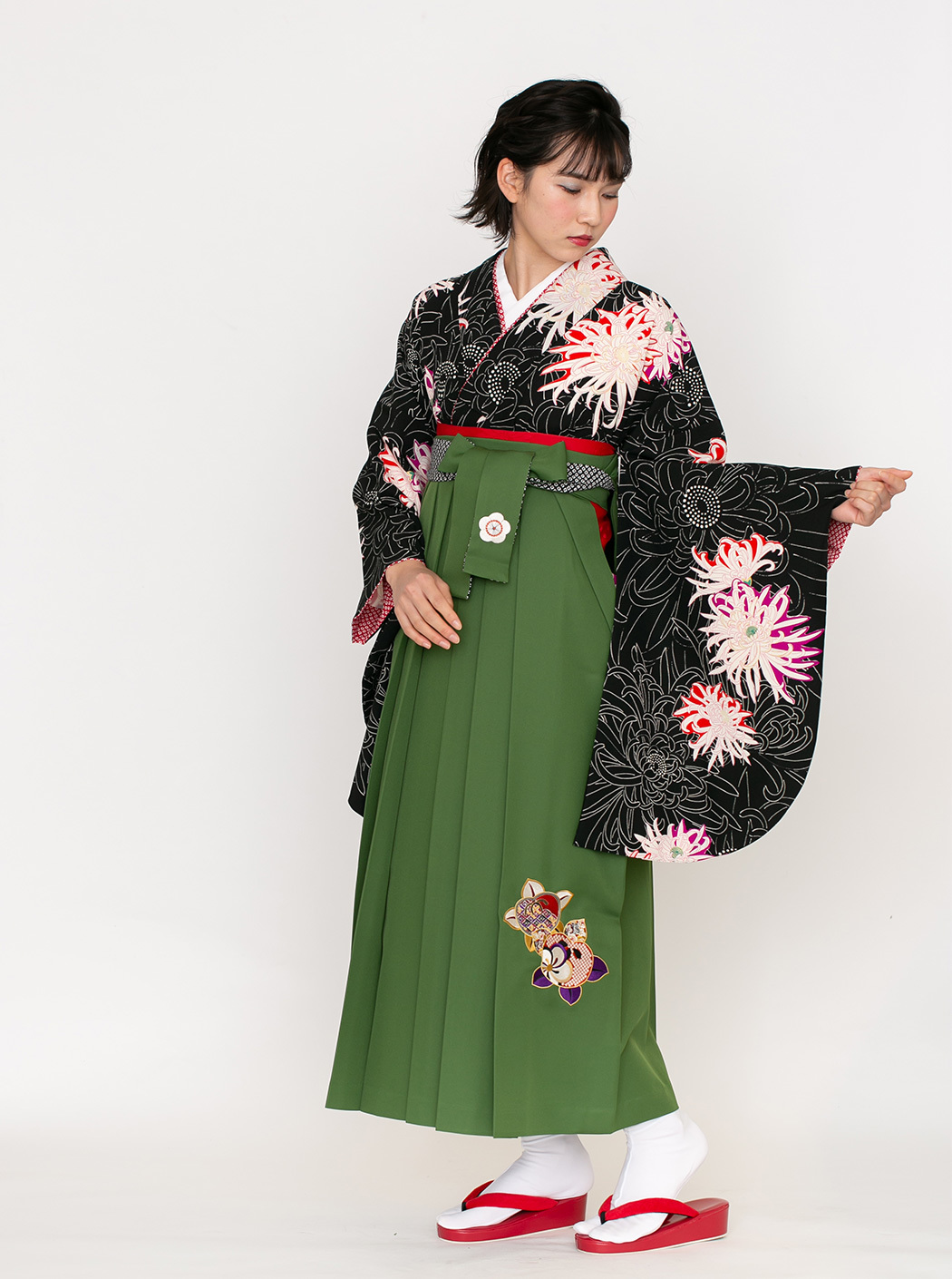乱菊/黒【九重】(袴:橘刺繍/抹茶)