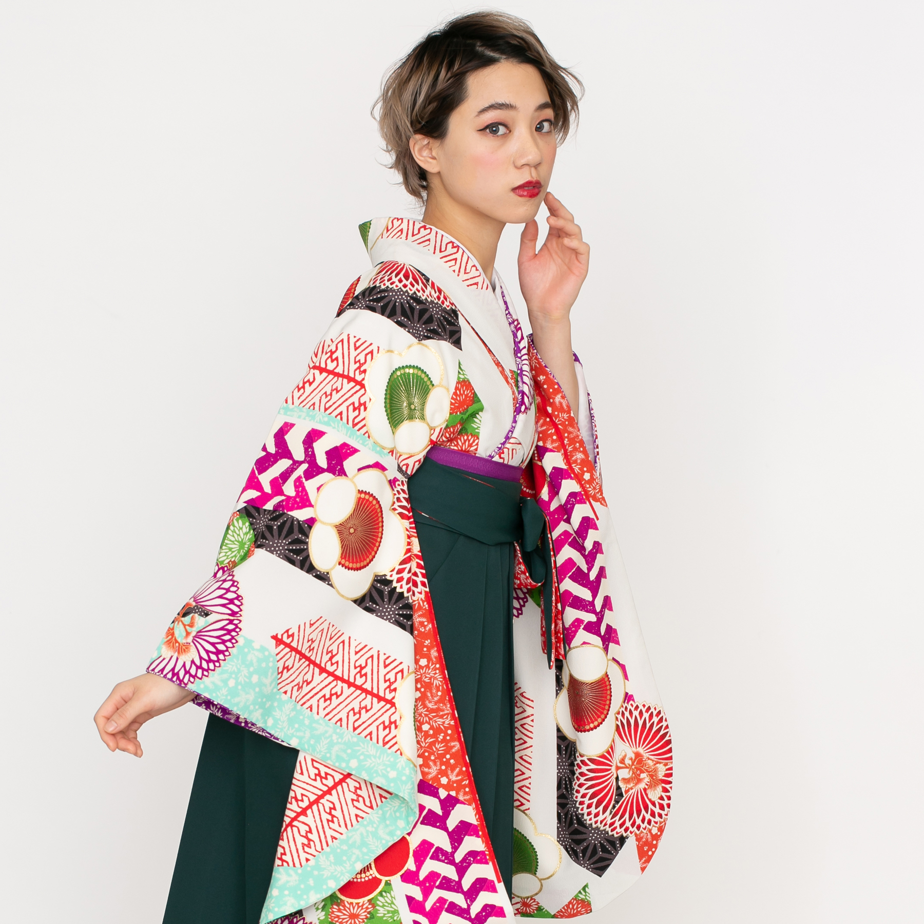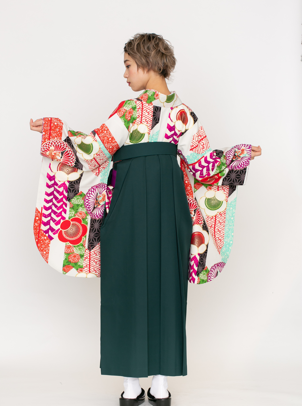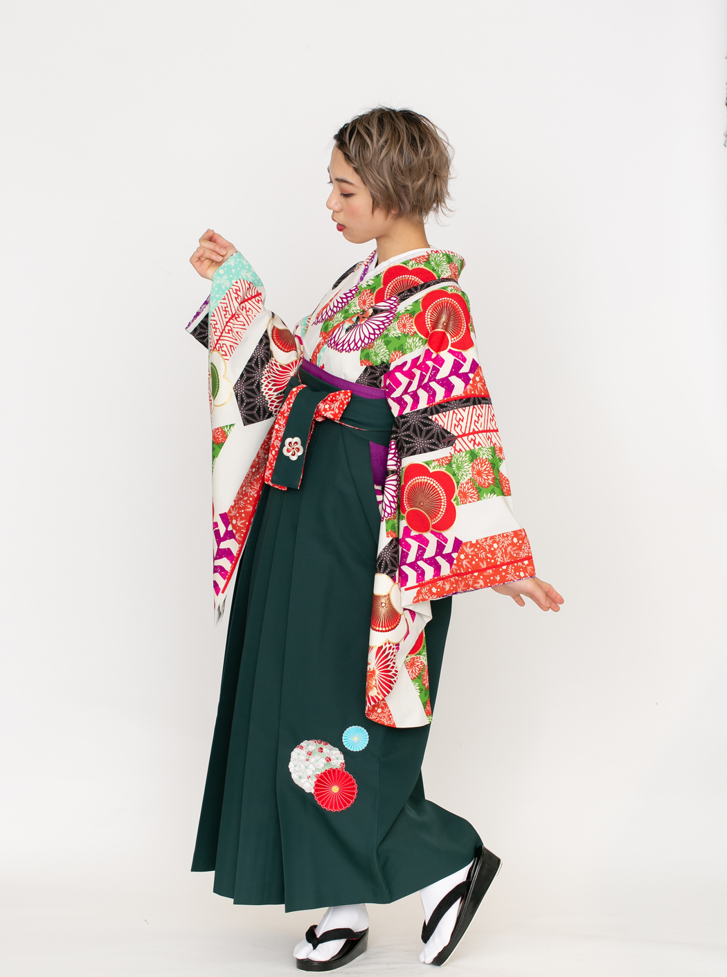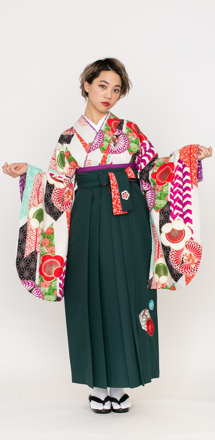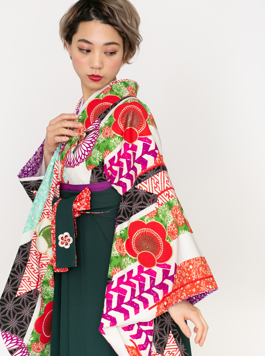 矢羽に梅/白【榛原】(袴:菊に梅刺繍/緑)