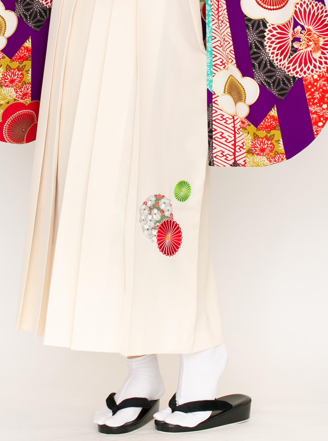 矢羽に梅/紫【榛原】(袴:菊に梅刺繍/クリーム)