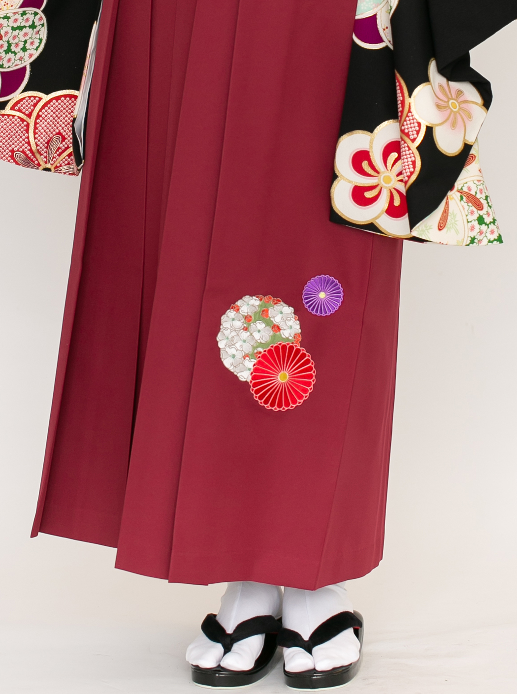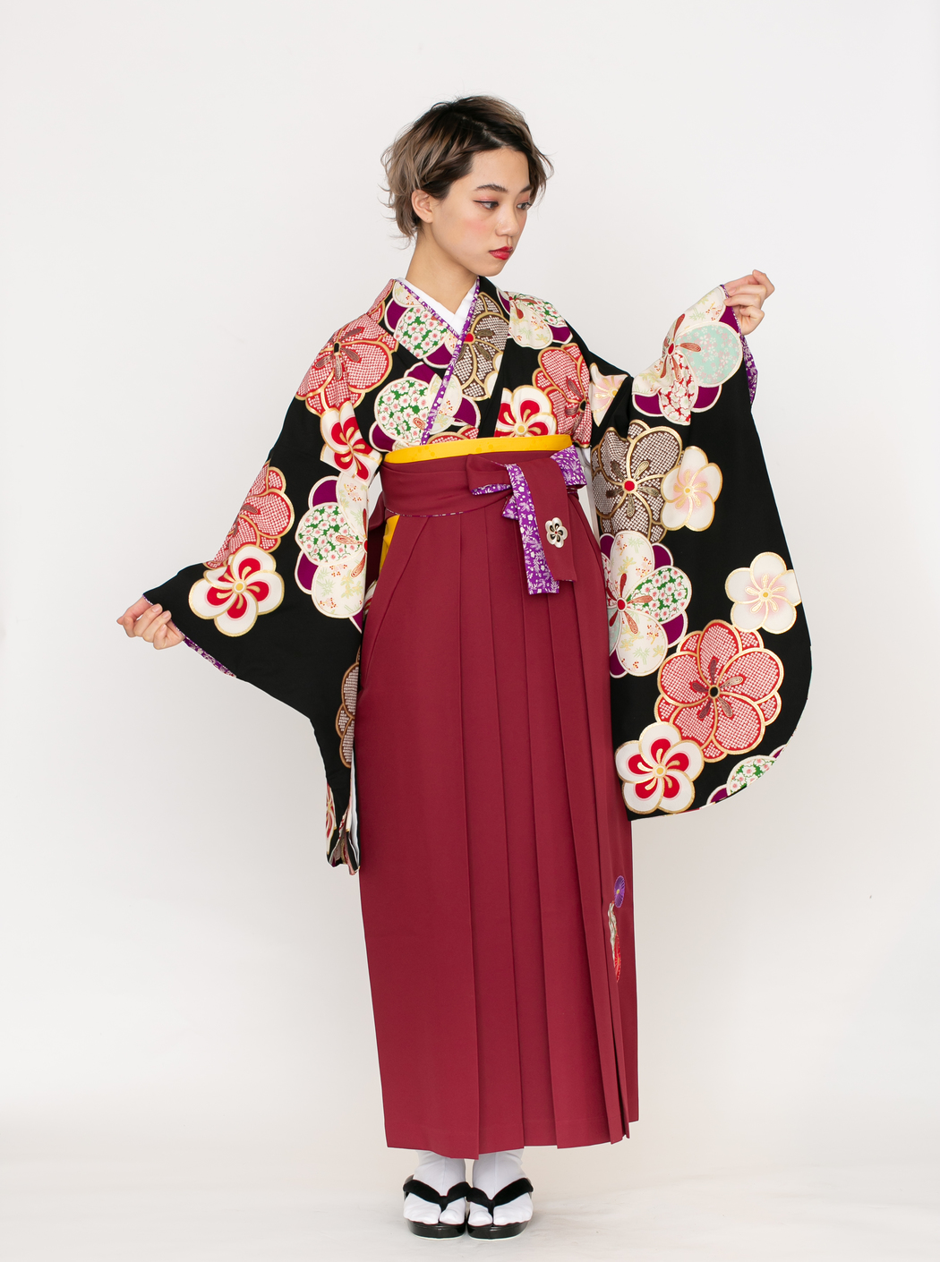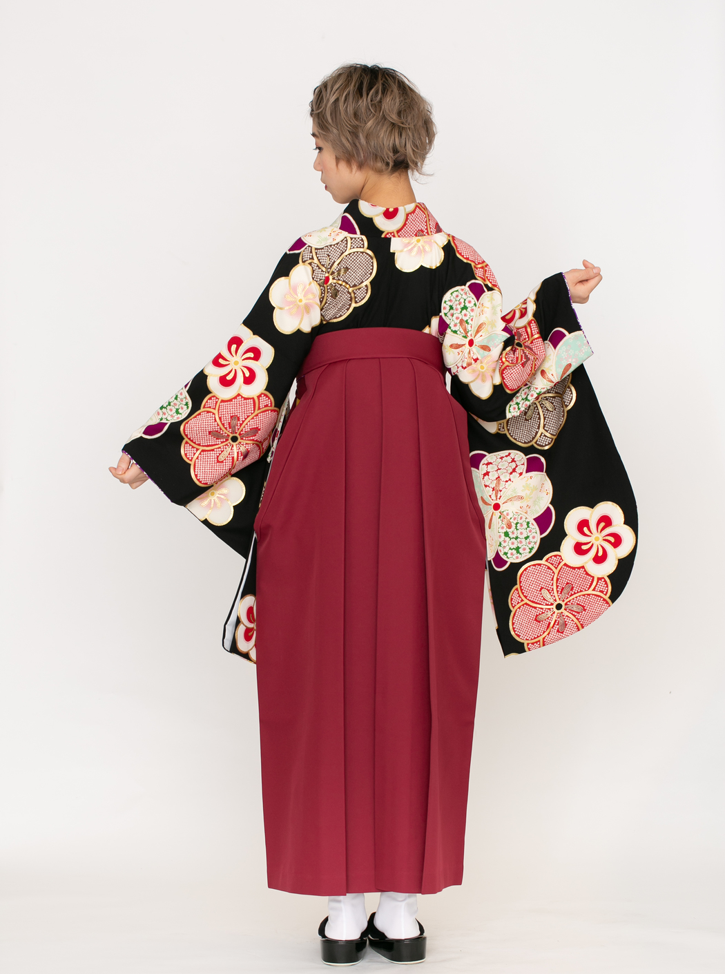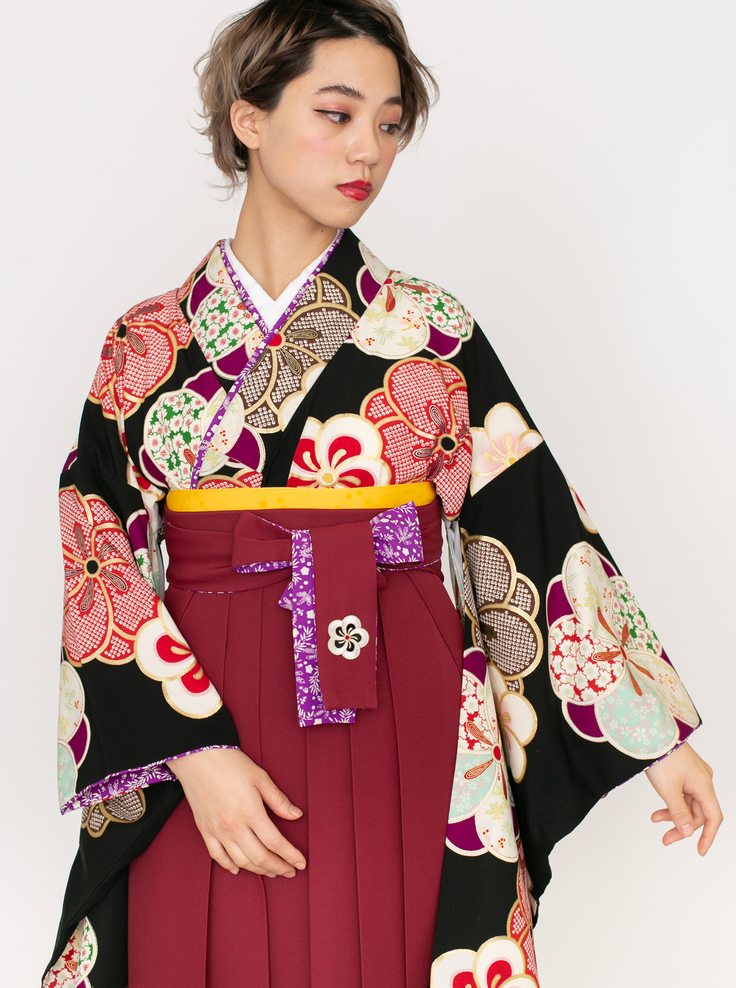 ねじり梅/黒【榛原】(袴:菊に梅刺繍/エンジ)