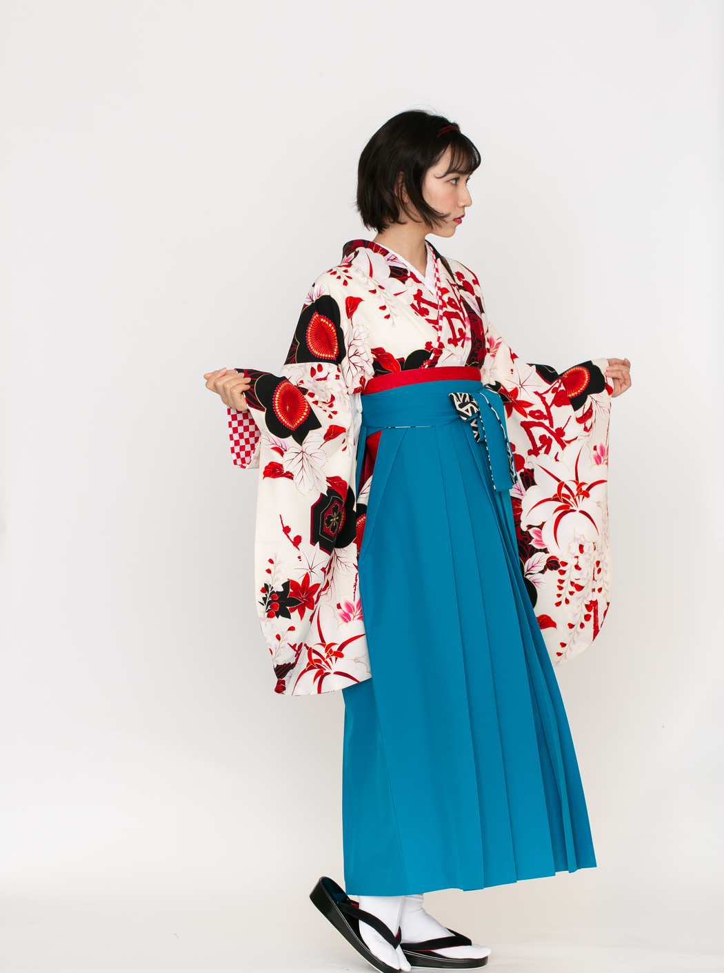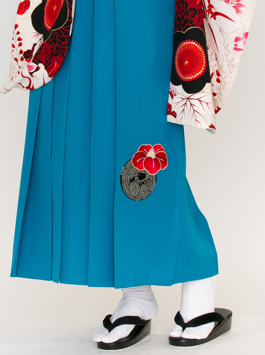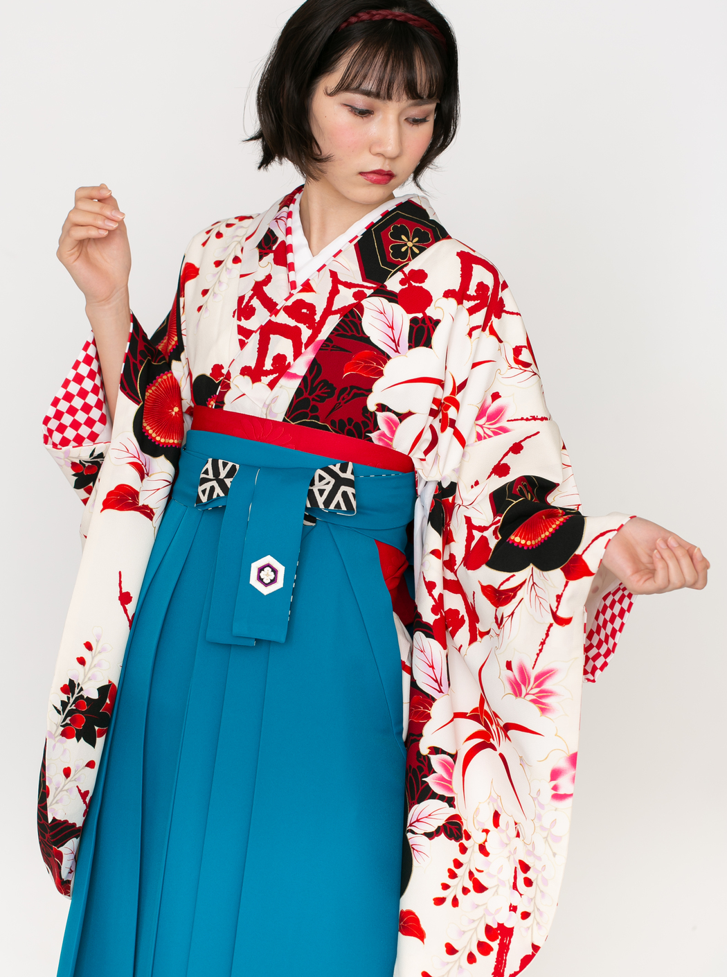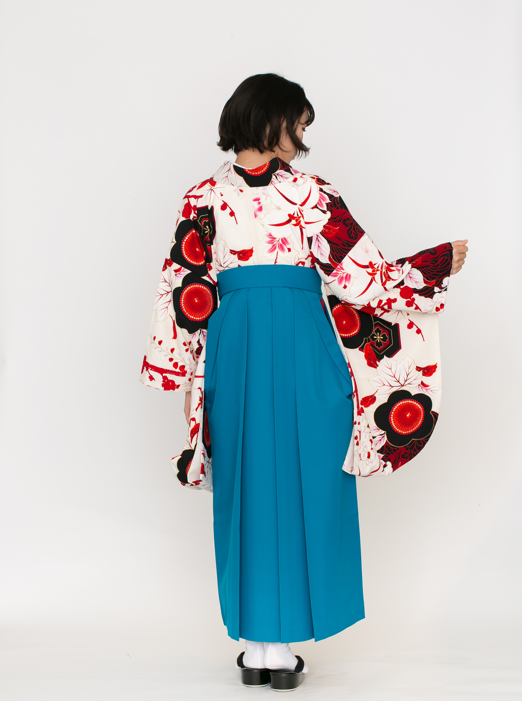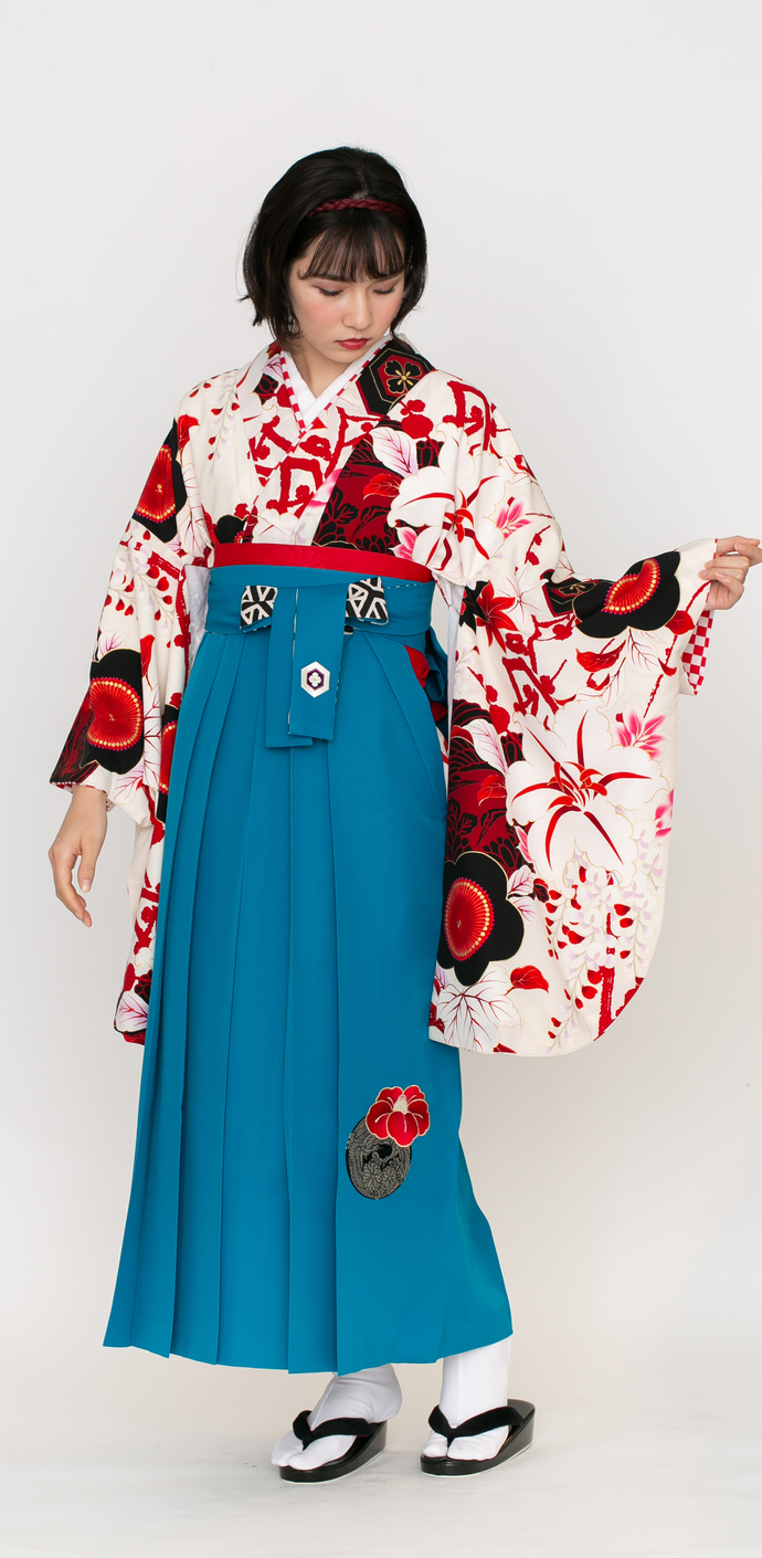 梅に百合/白【JAPAN STYLE】(袴:椿に丸紋刺繍/ターコイズ)