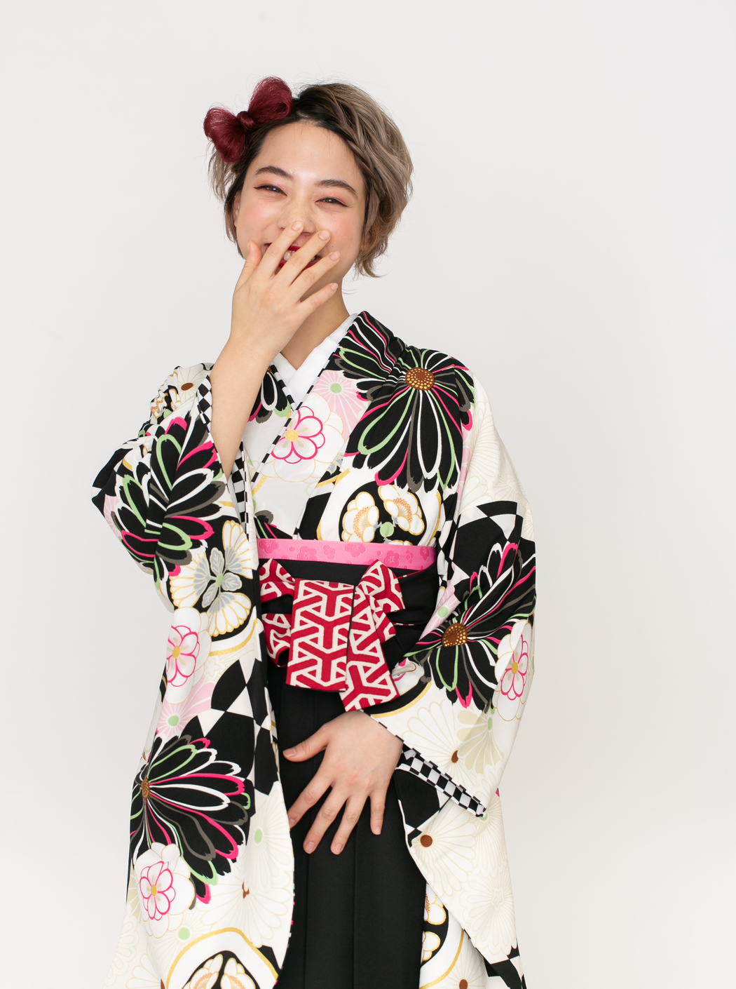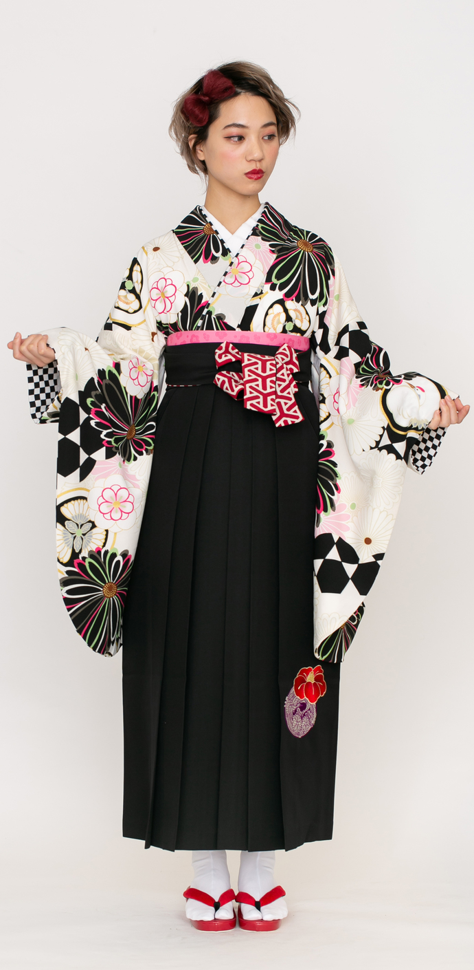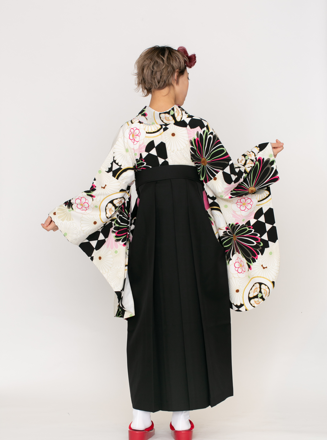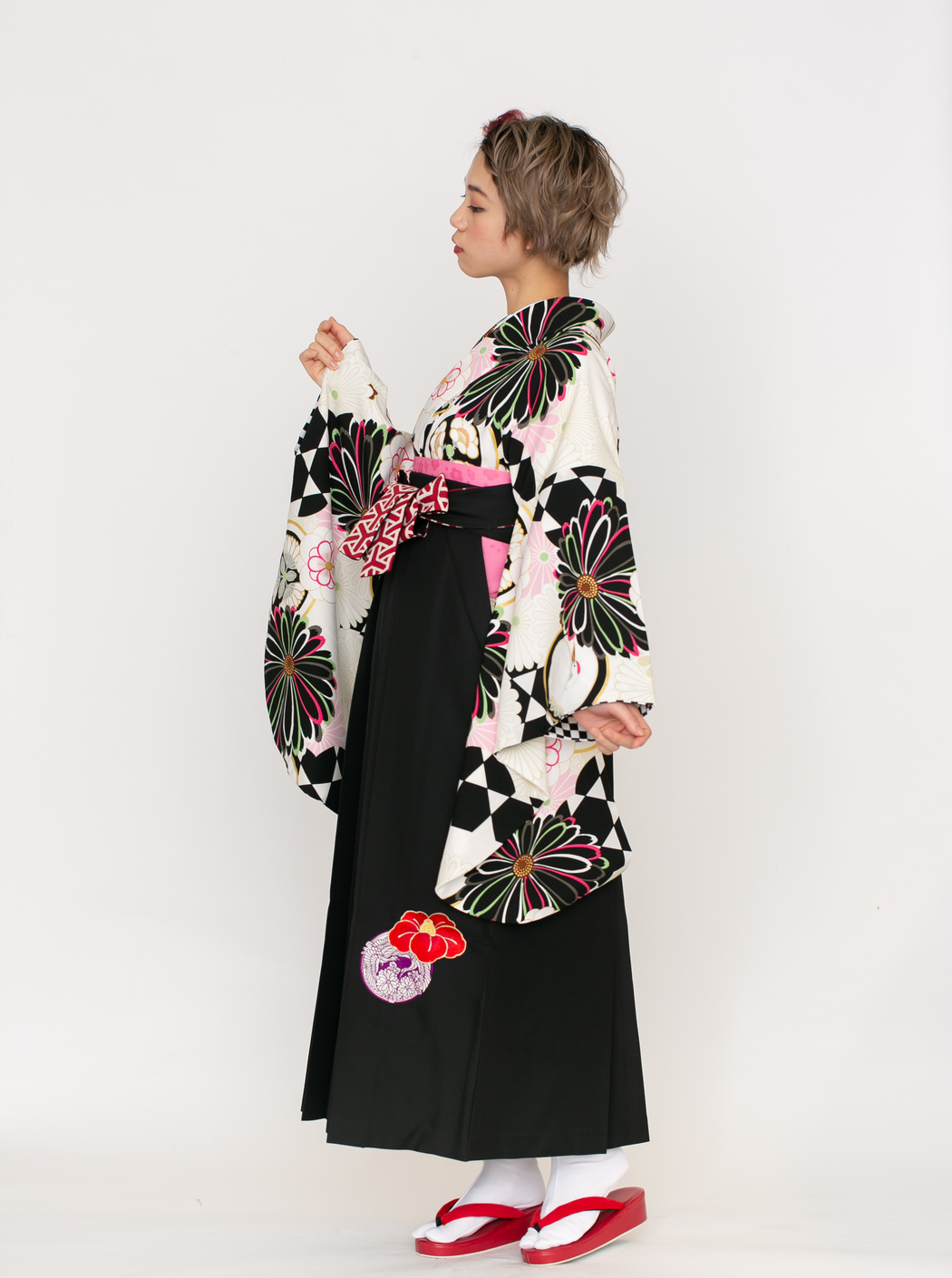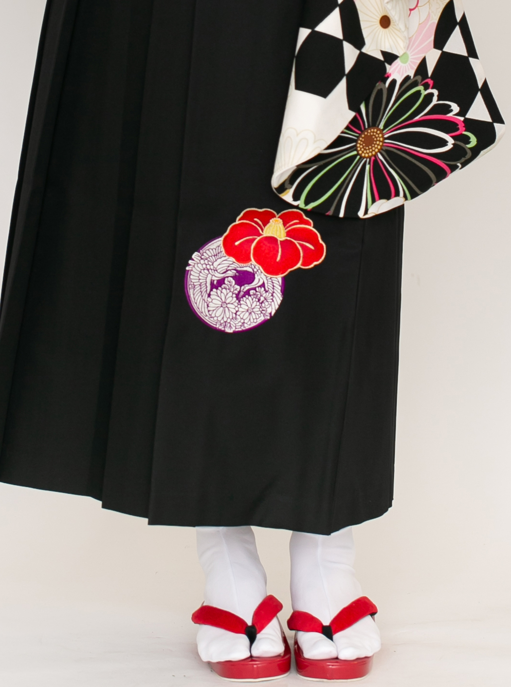 菊に紋/黒【JAPAN STYLE】(袴:椿に丸紋刺繍/黒)