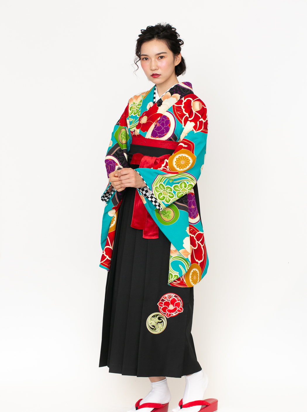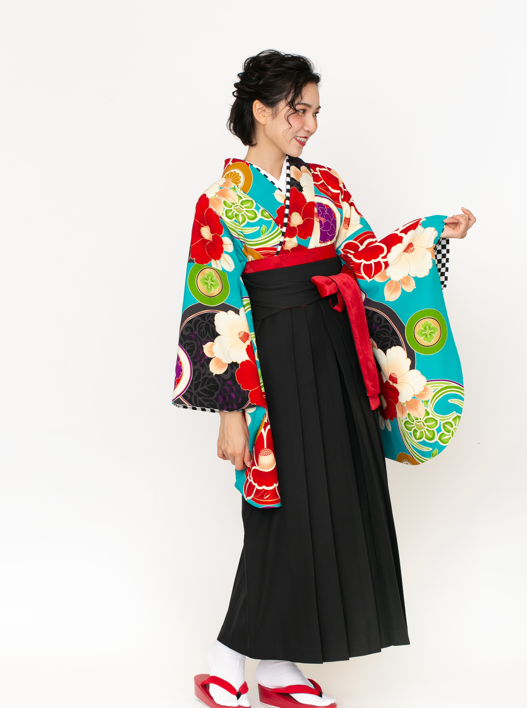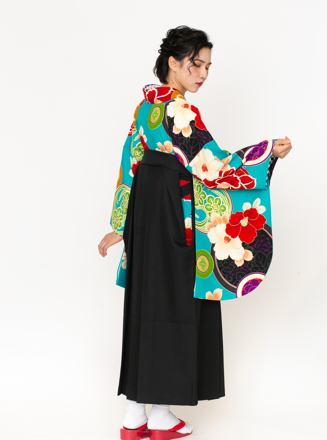 椿に丸紋/ターコイズ【JAPAN STYLE×中村里砂】(袴:椿丸紋刺繍/黒)