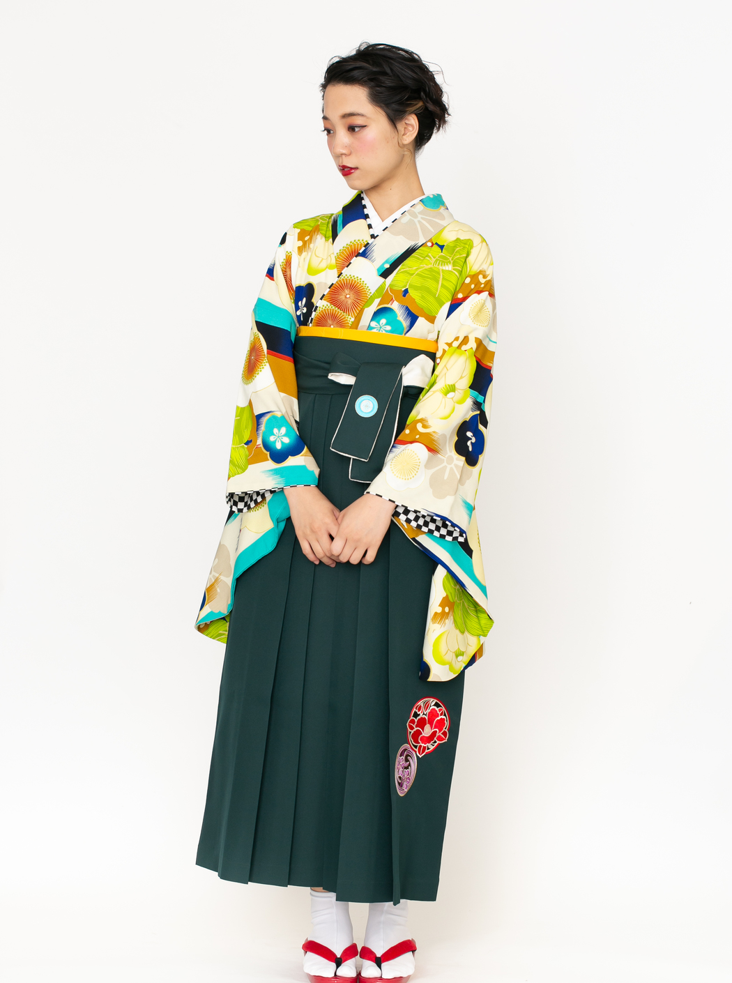 (2)袴(※M・L サイズからお選びください(一部ワンサイズのみ)) (3)ポリエステル長襦袢[刺繍入り半襟付※セット済]。※写真の物とは異なります)