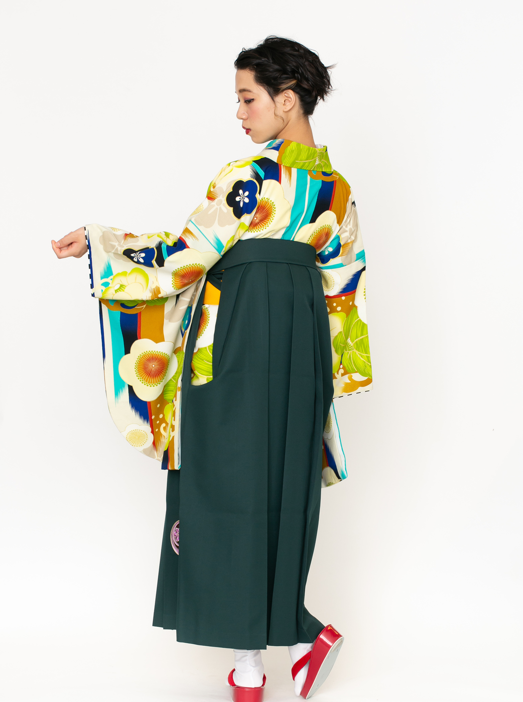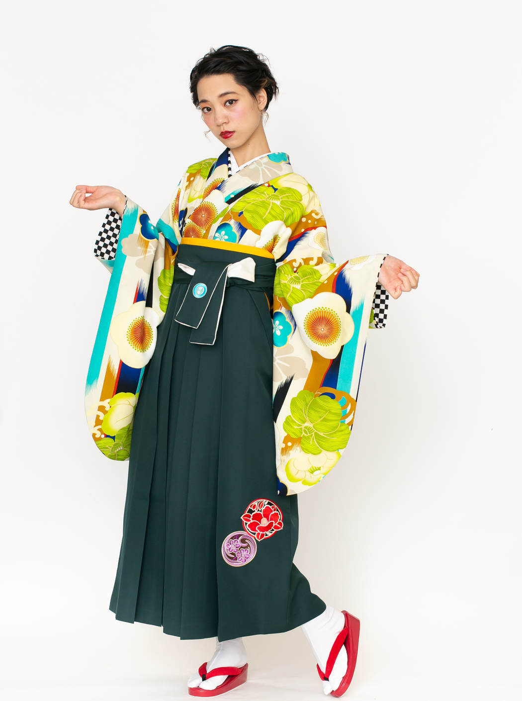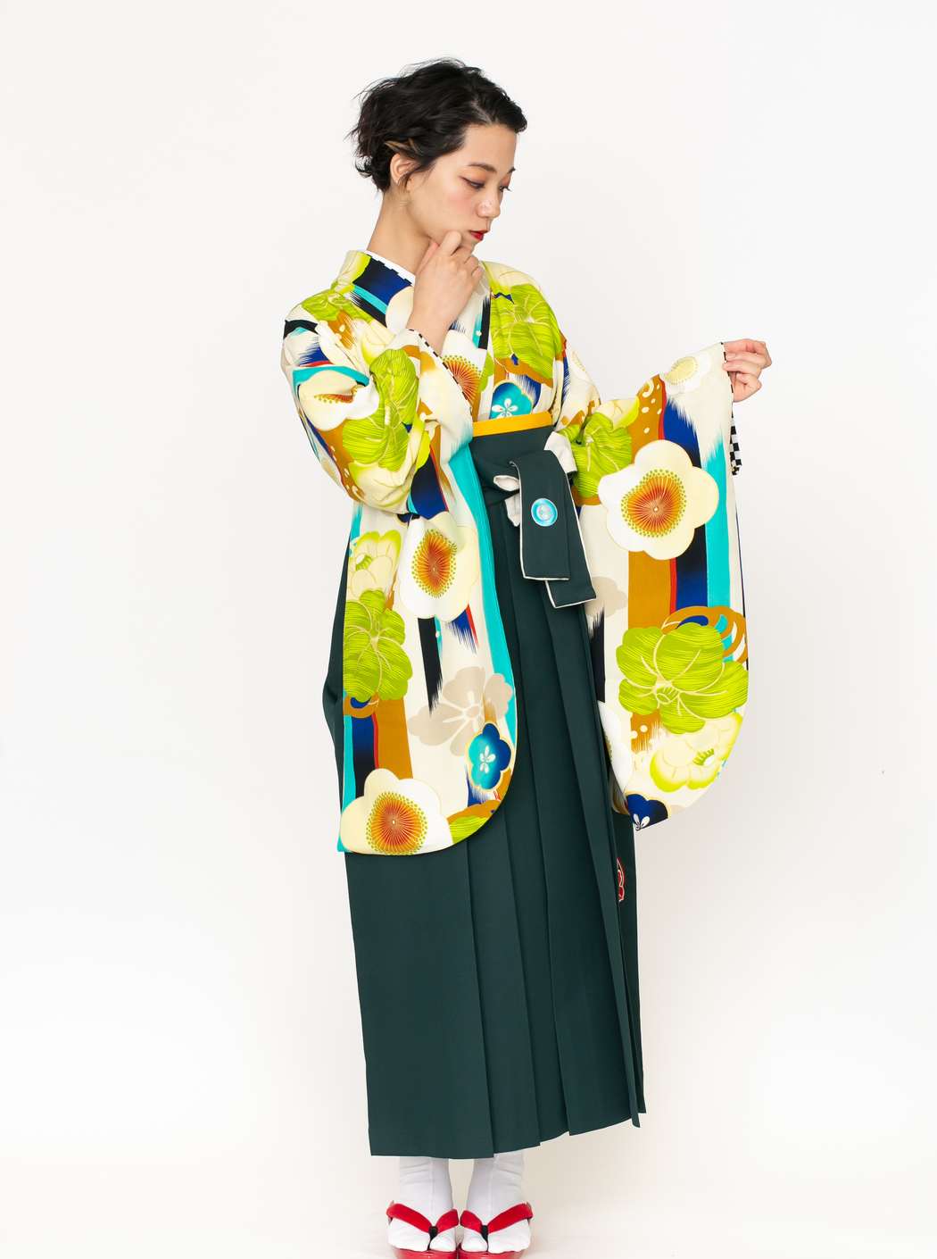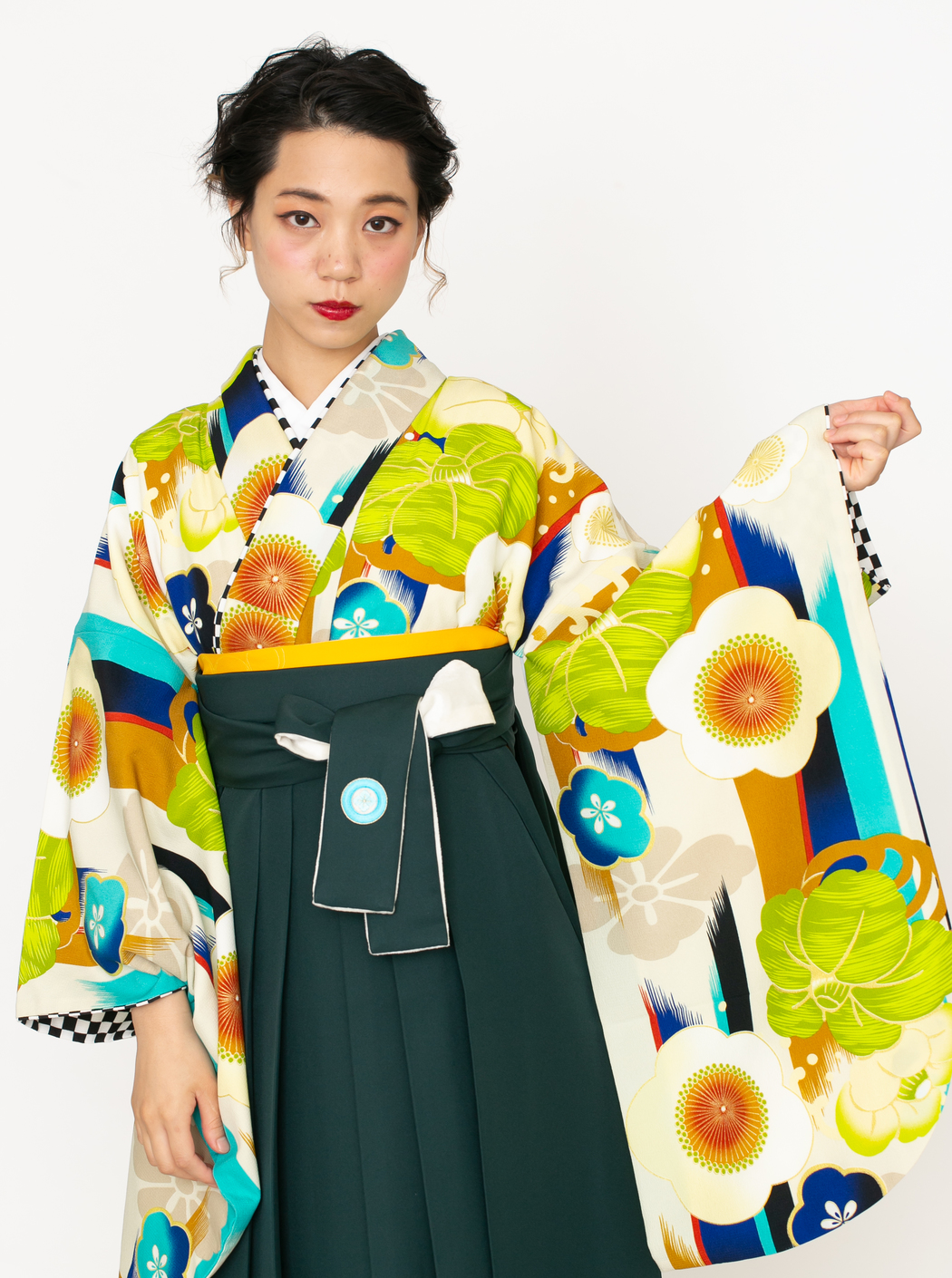 梅に矢絣/青【JAPAN STYLE×中村里砂】(袴:椿丸紋刺繍/緑)