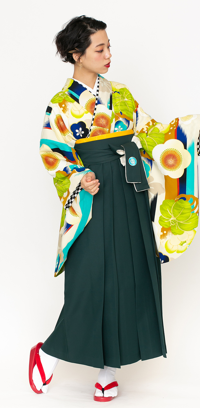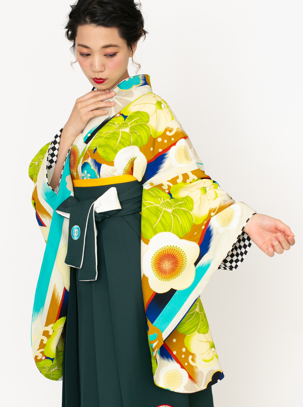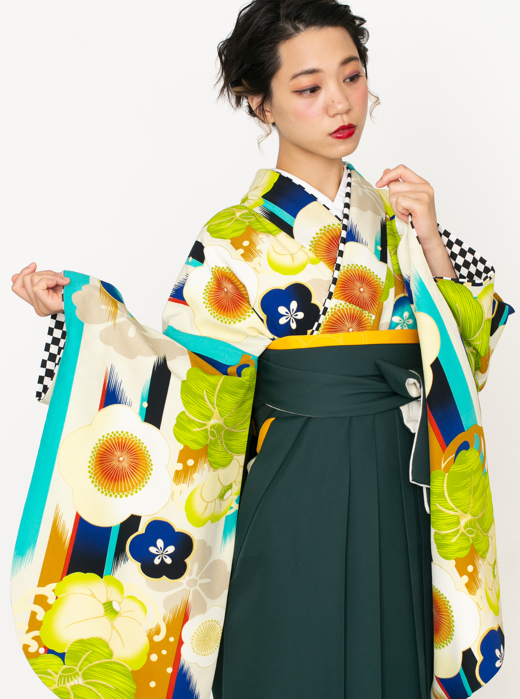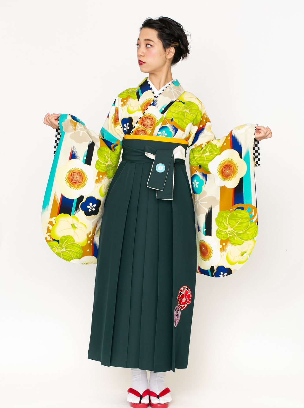 梅に矢絣/青【JAPAN STYLE×中村里砂】(袴:椿丸紋刺繍/緑)