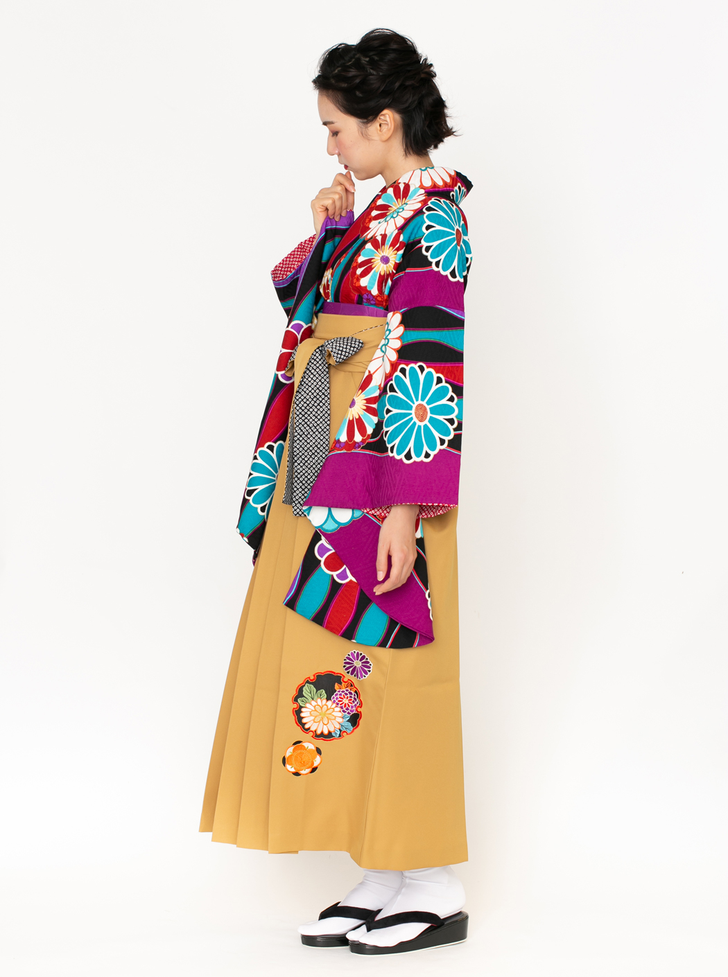 よろけに菊/紫【九重】(袴:雪輪刺繍/黄土)