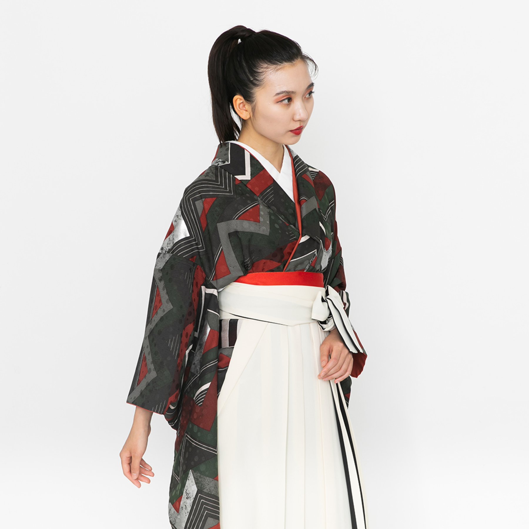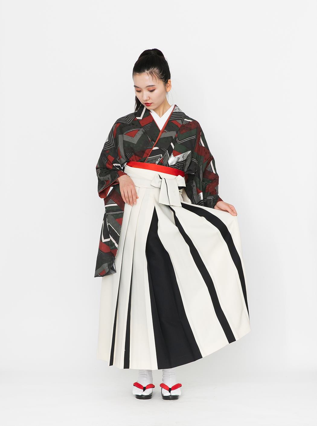 稲妻 / 赤緑(袴:アコーディオン/クリーム×黒)
