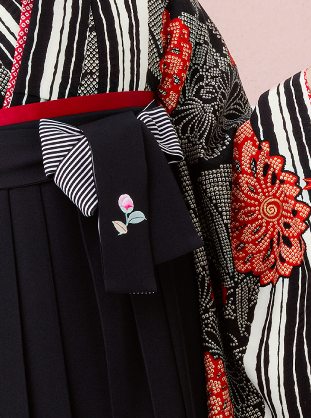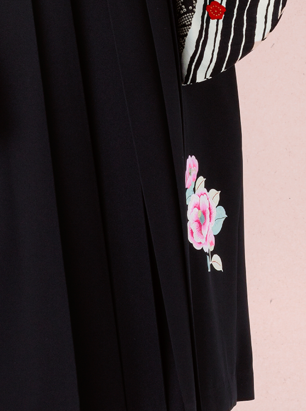袴は黒色。椿の刺繍が入っています。