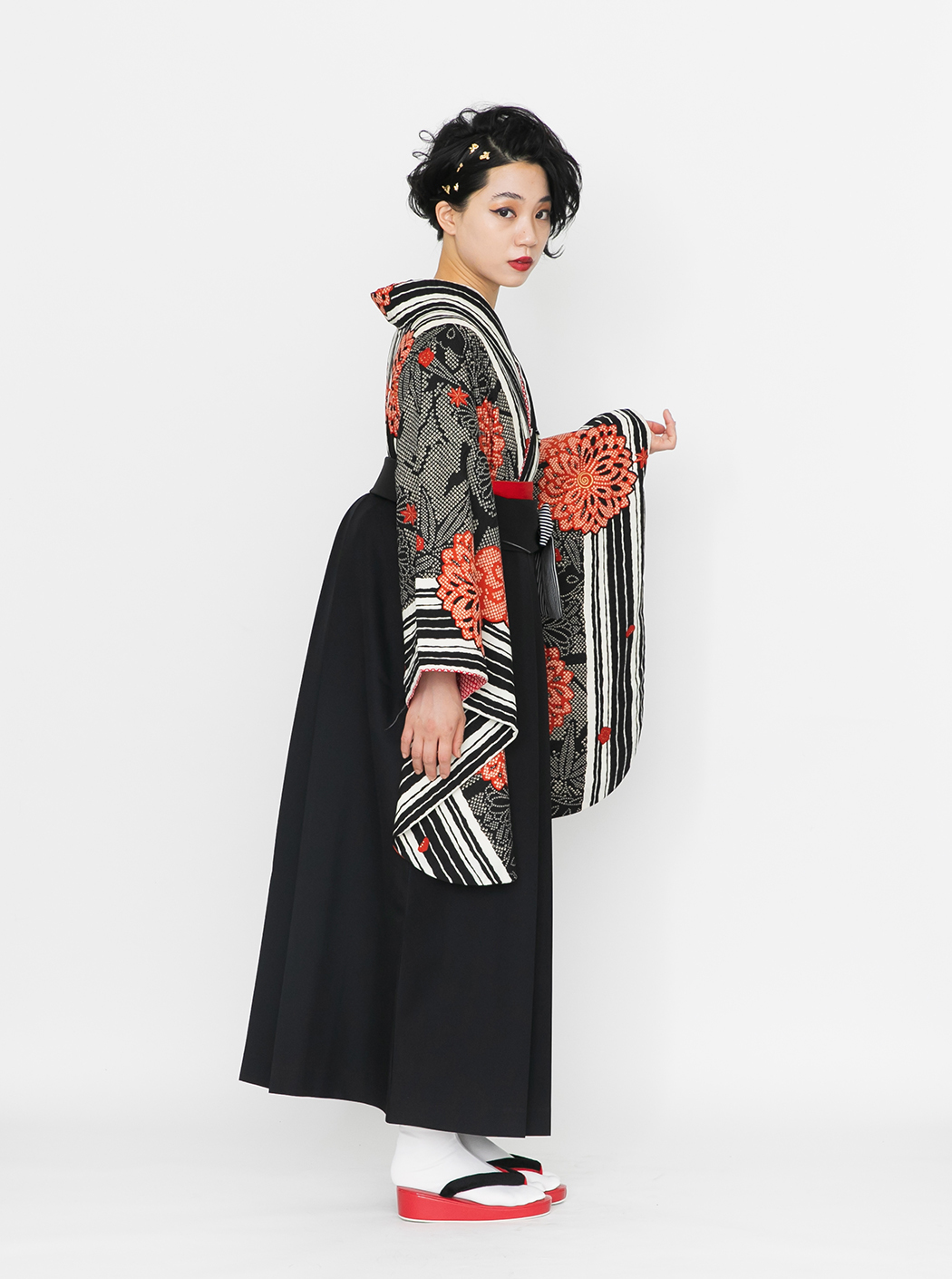 菊・疋田/黒【九重】(袴:椿刺繍/黒)