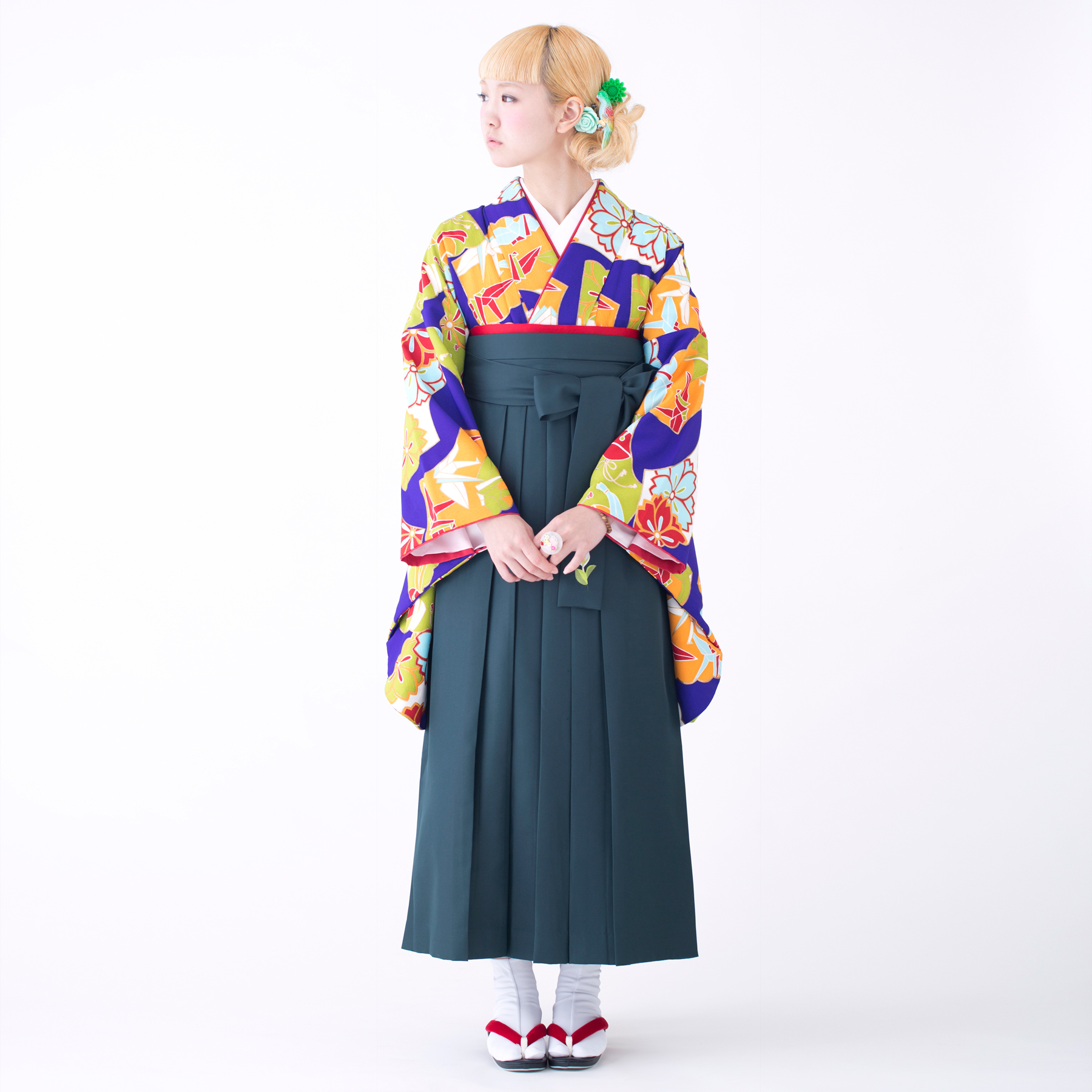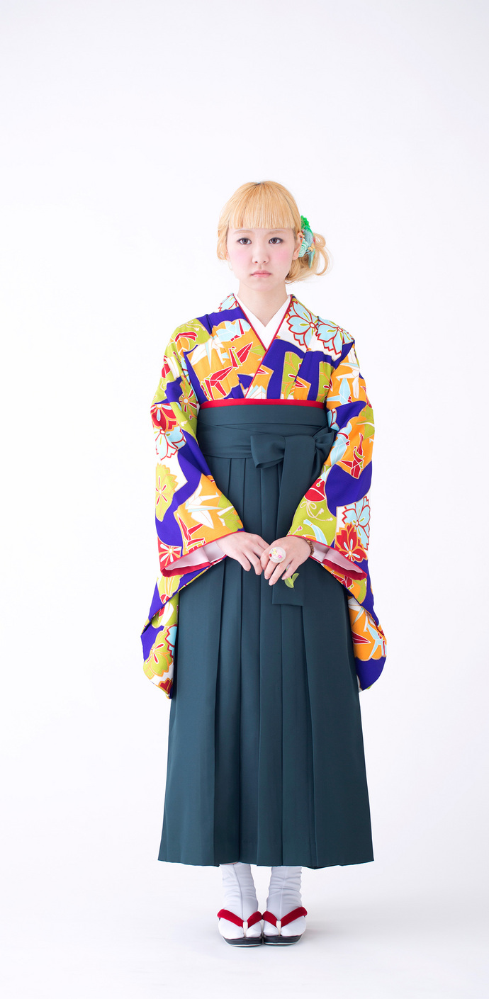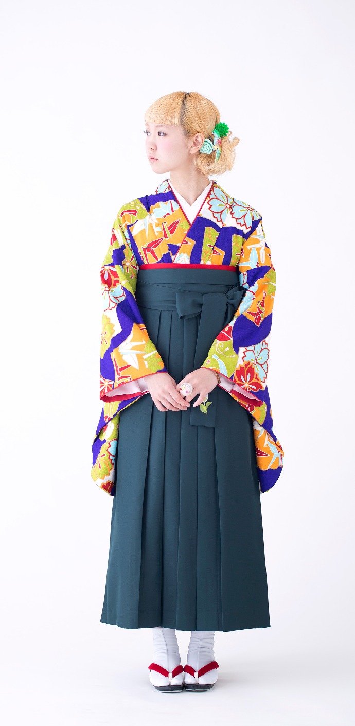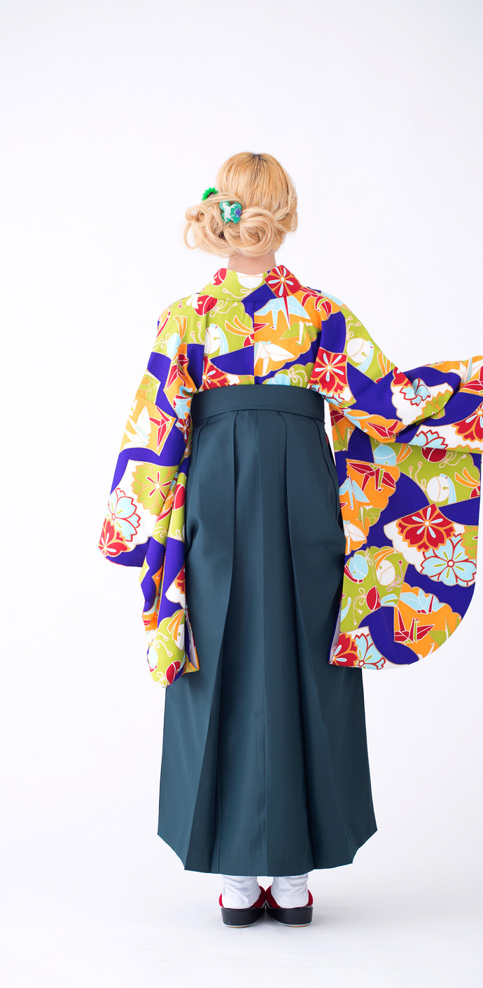 扇に折り鶴/紺(袴:2way袴/緑)