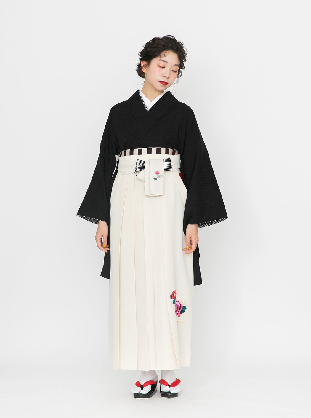華亀甲/黒【九重】(袴:椿刺繍/クリーム)