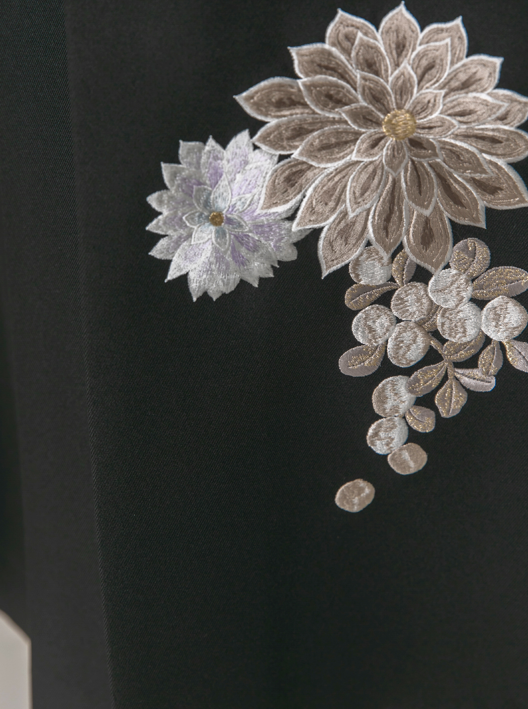 袴は黒に菊の刺繍。