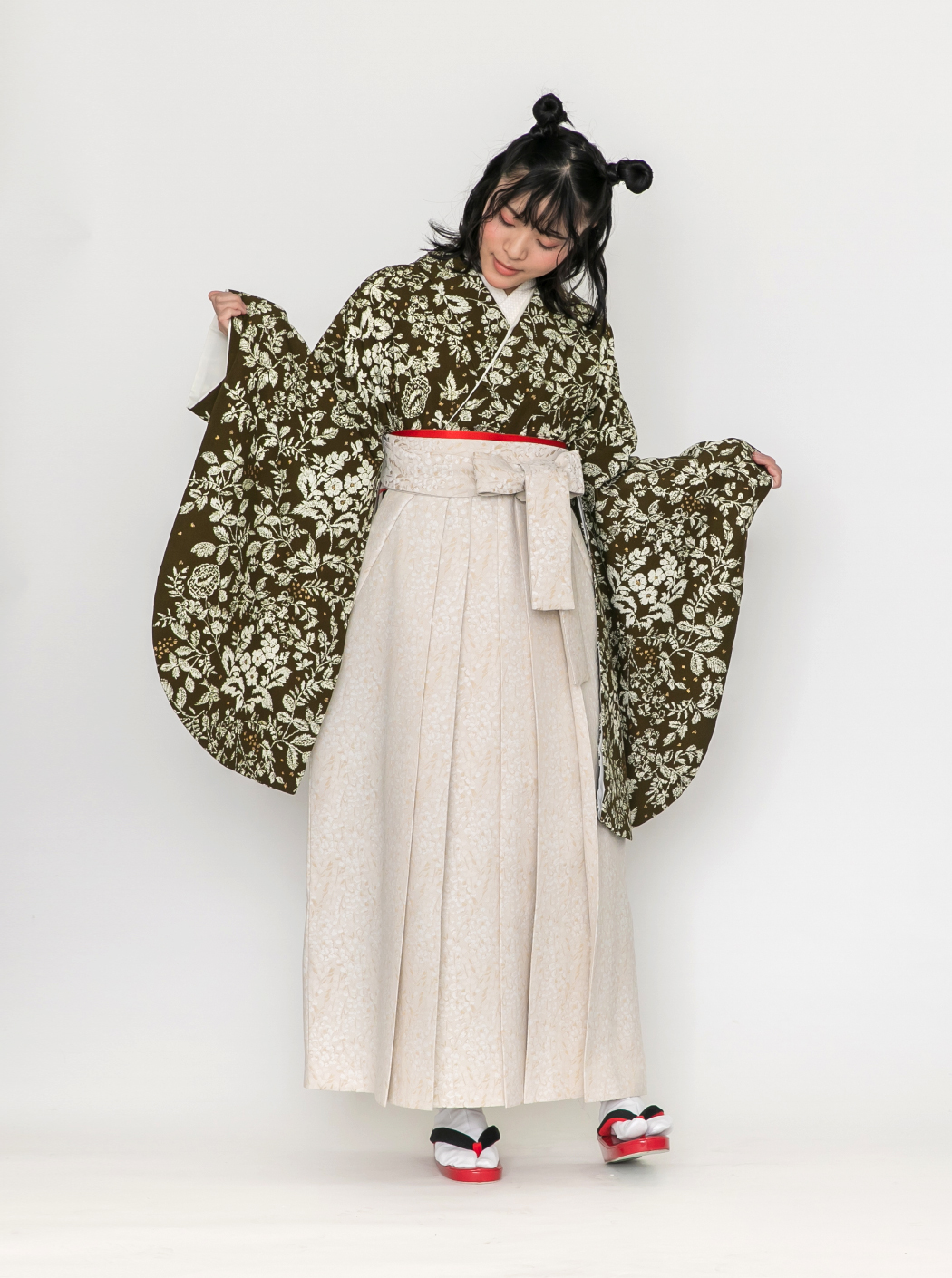 更紗 / オリーブ【Kami Shibai-story of-】(袴:小花/ベージュ)