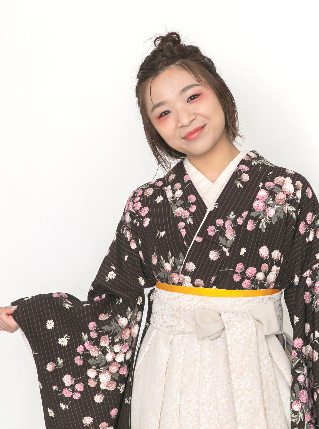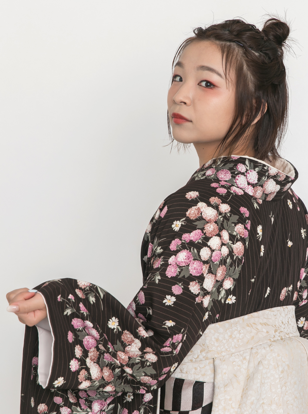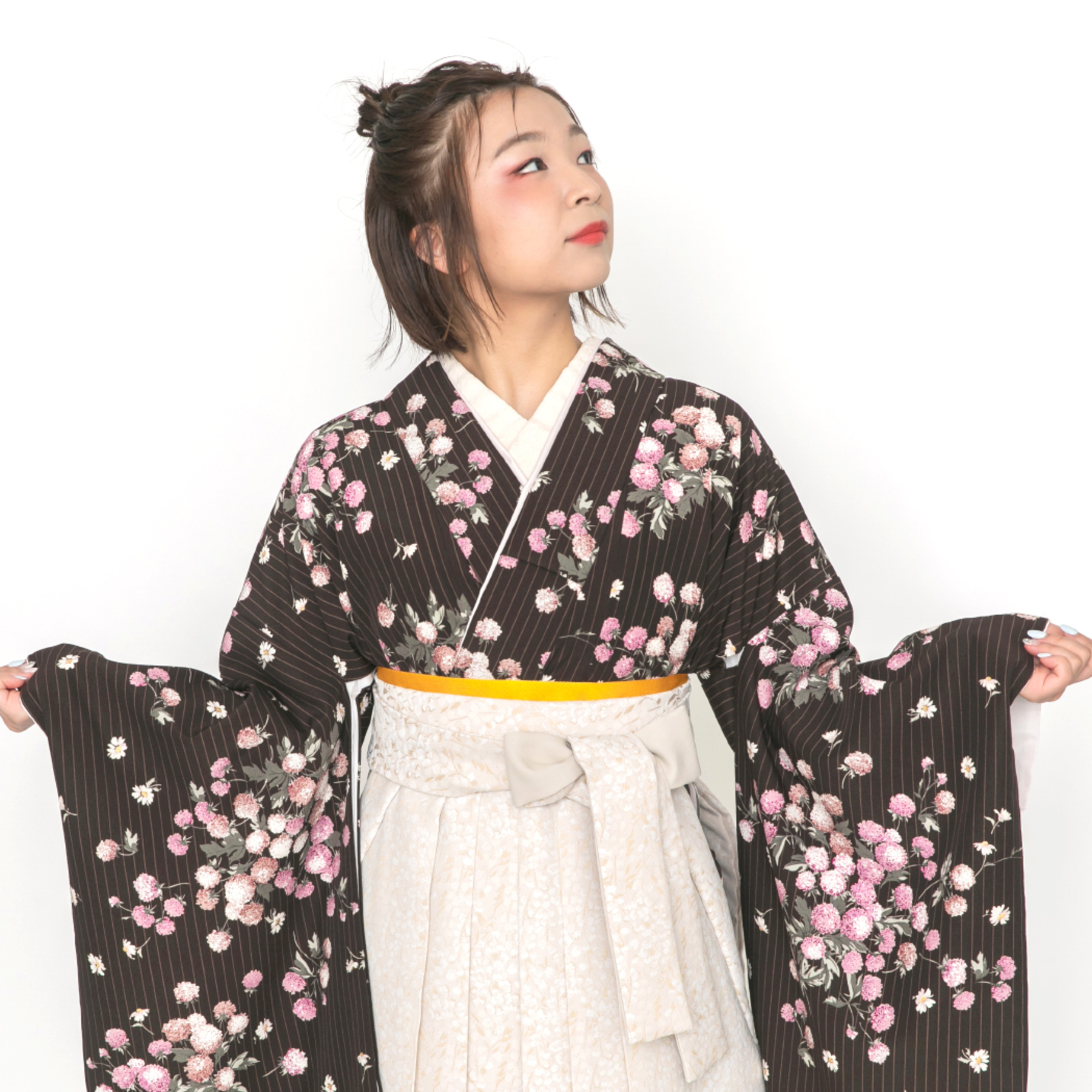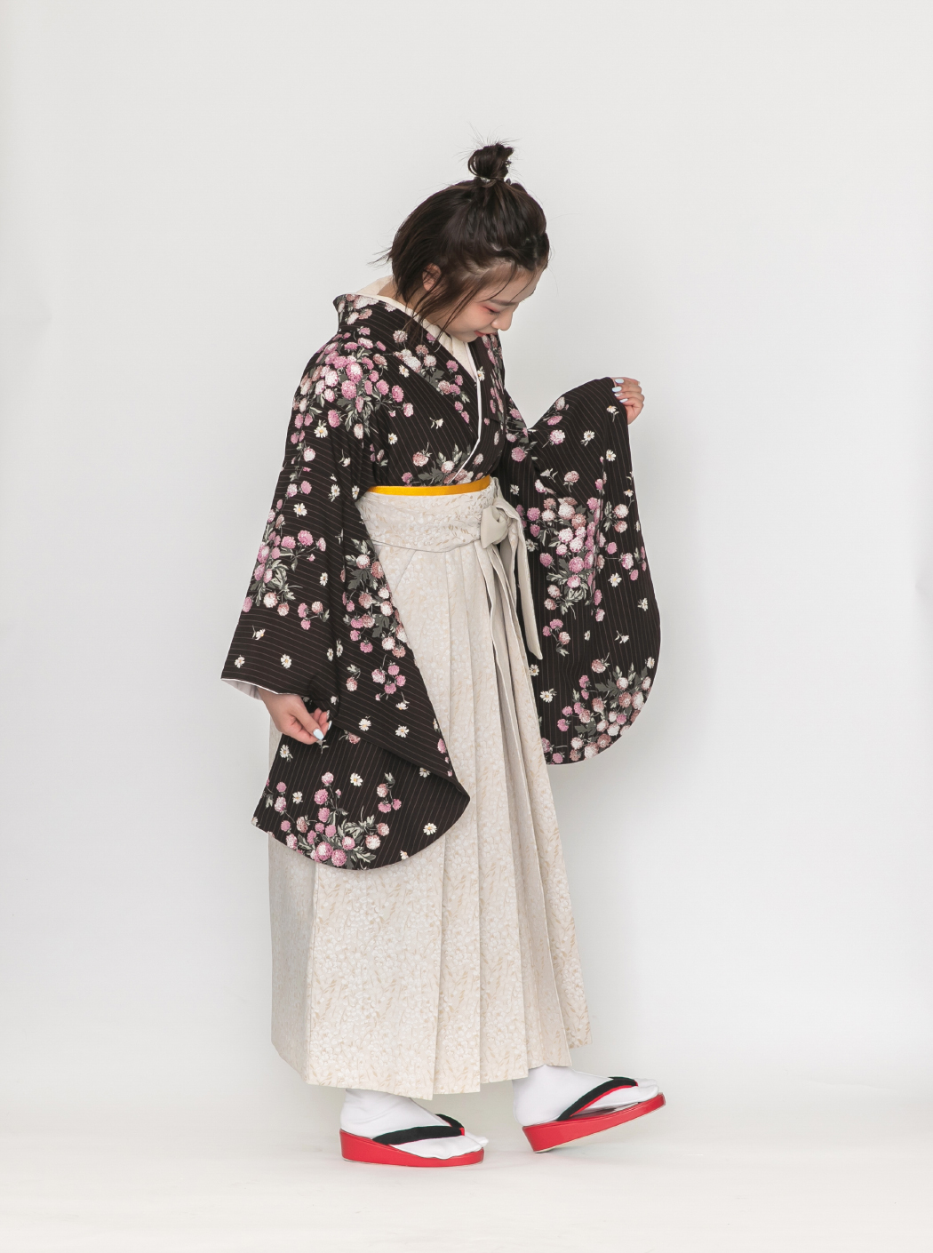 小花 / こげ茶【Kami Shibai-story of-】(袴:小花/ベージュ)