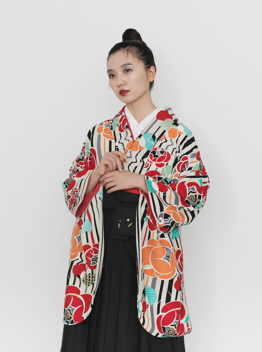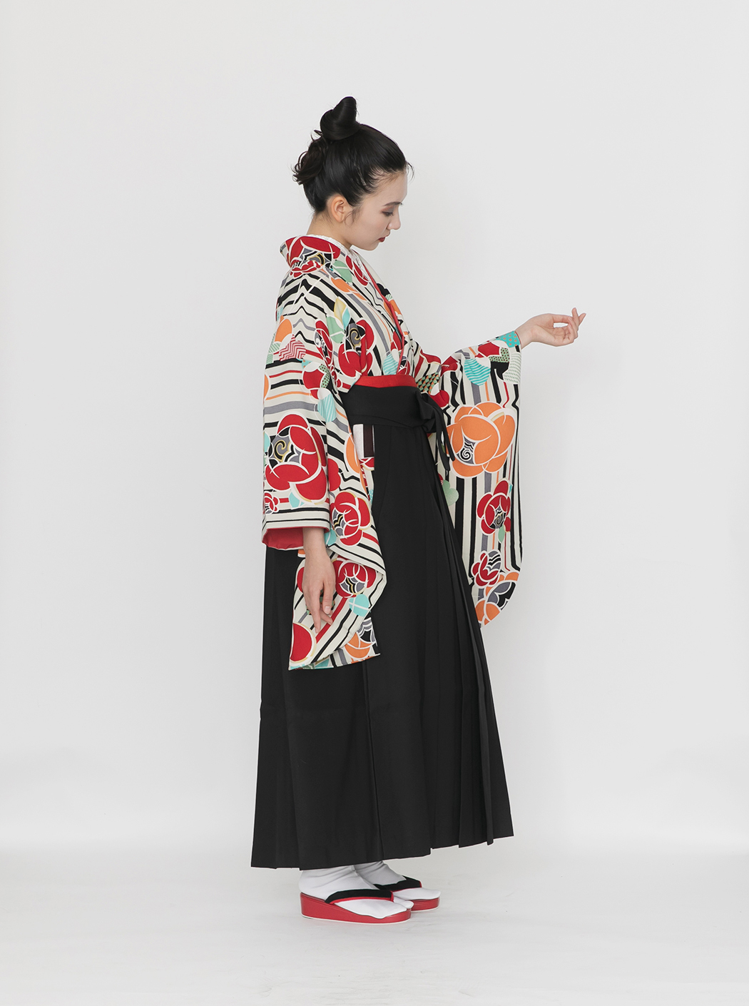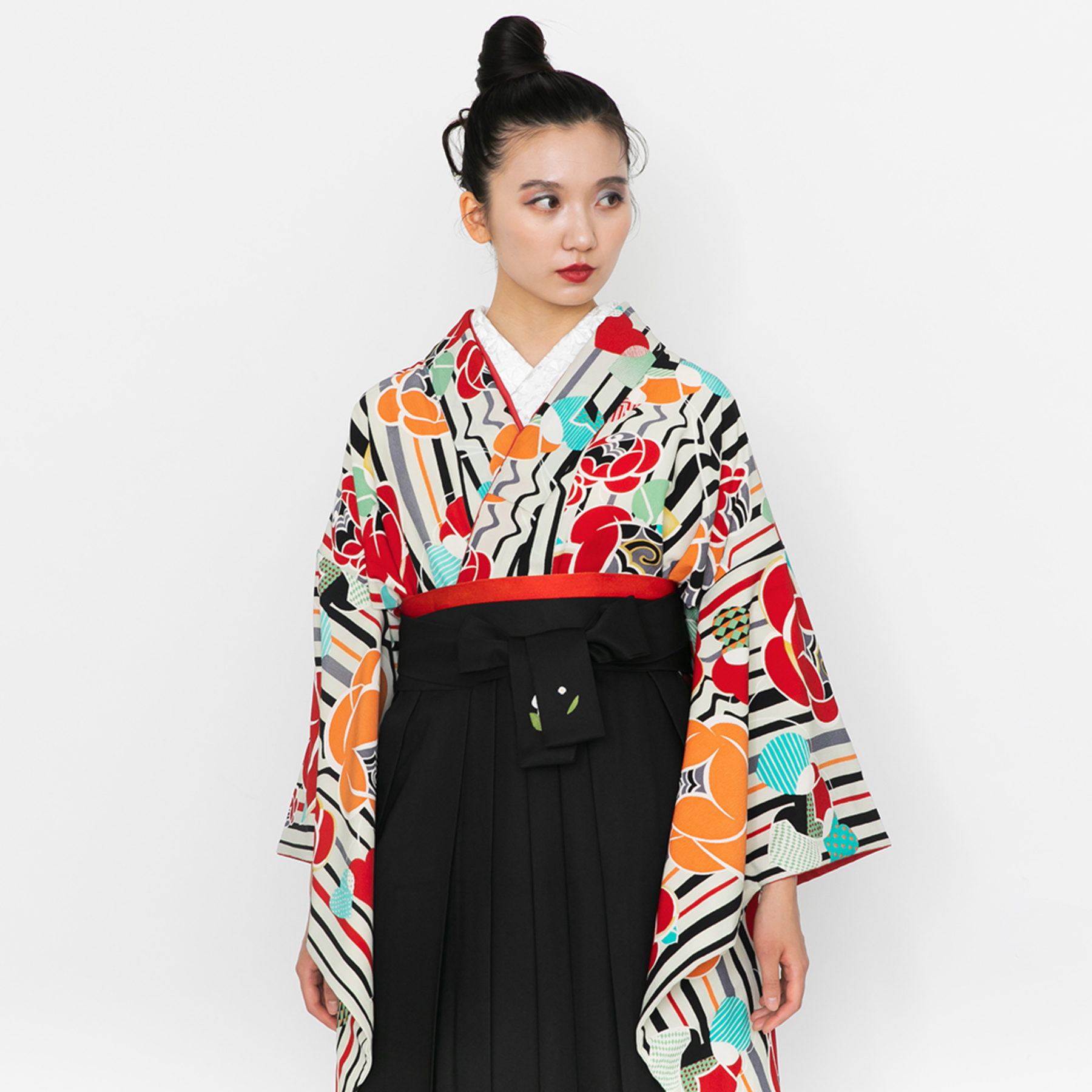 ストライプにバラ/白(袴:2way袴/黒)