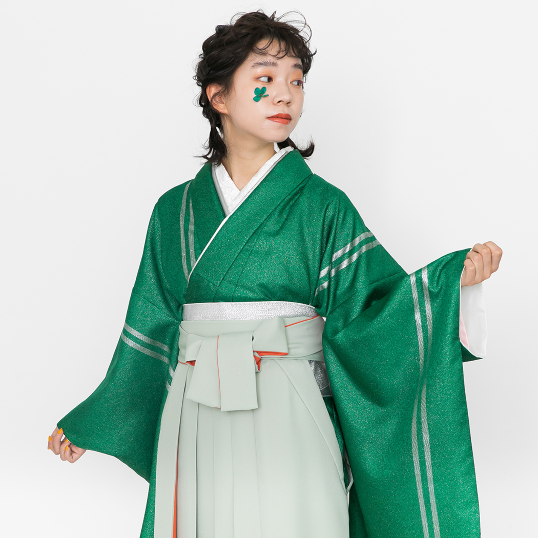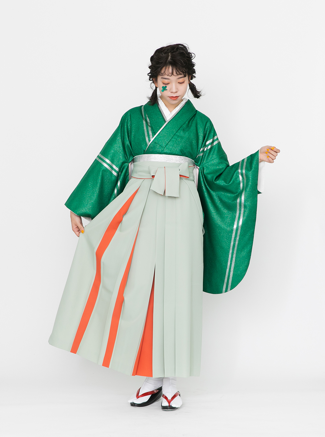 【MAselect】2LINE / グリーン(袴:アコーディオン/モスグリーン×オレンジ)