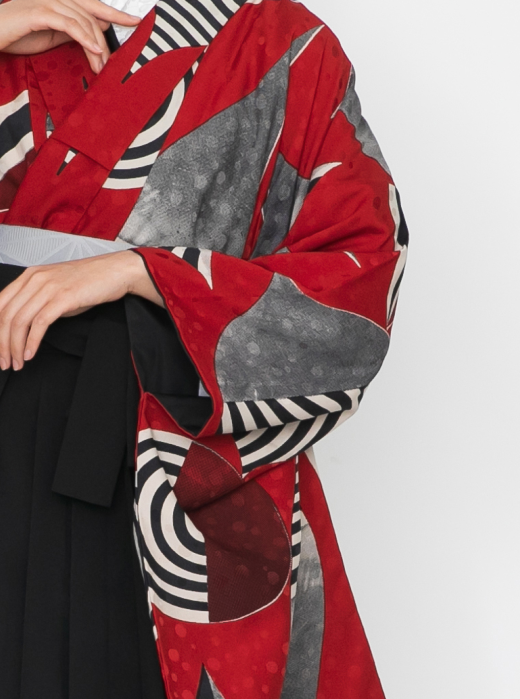 モダンアンテナが二尺袖に合わせて袴、袴下(半幅帯)、巾着、草履をコーディネートした特別なレンタル商品をご用意しました。