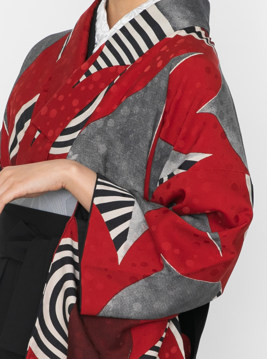 上下左右が決まった着物の一柄から離れ、天地を決めず全ての絵柄が浮遊しているようなデザイン。