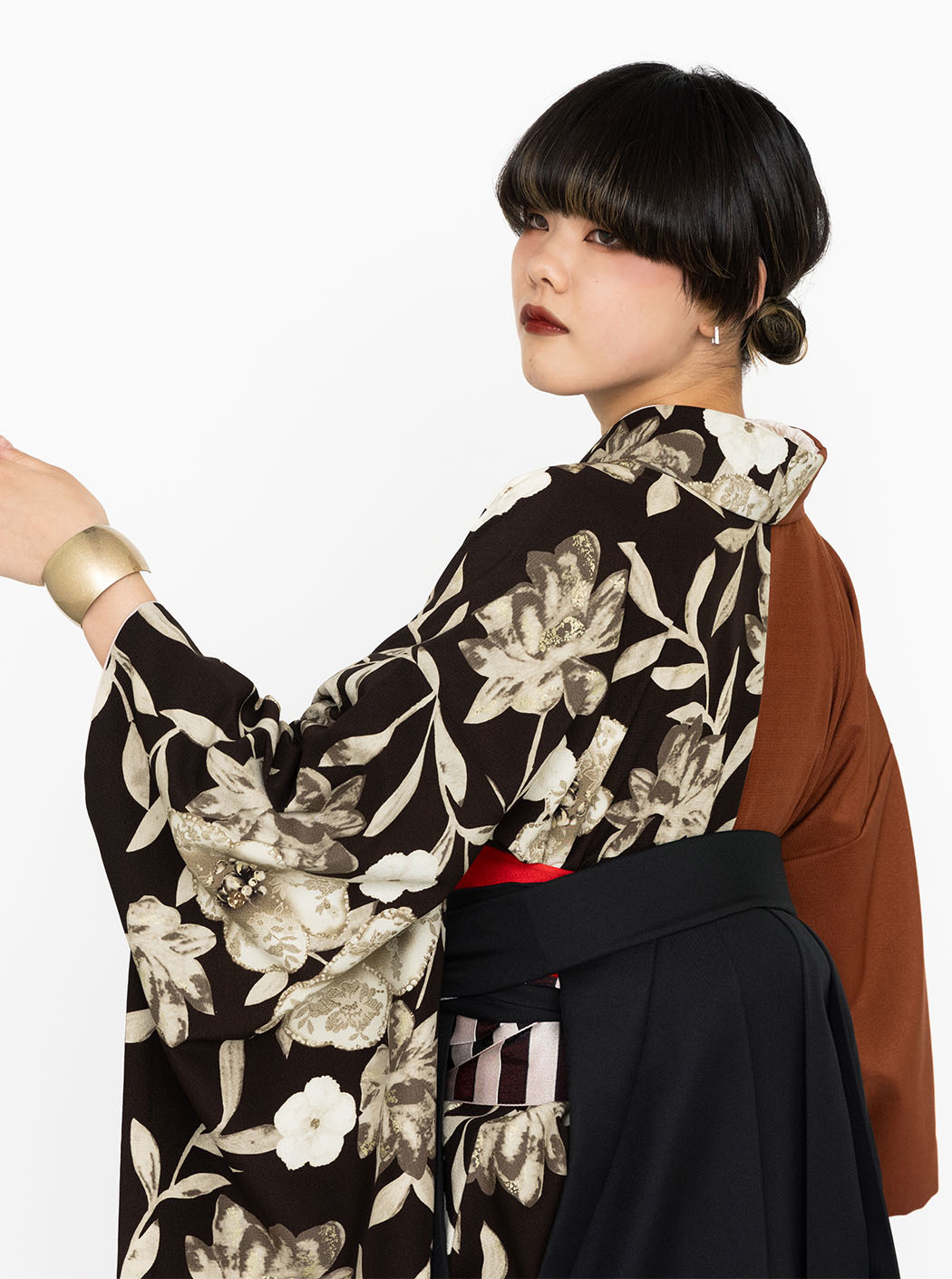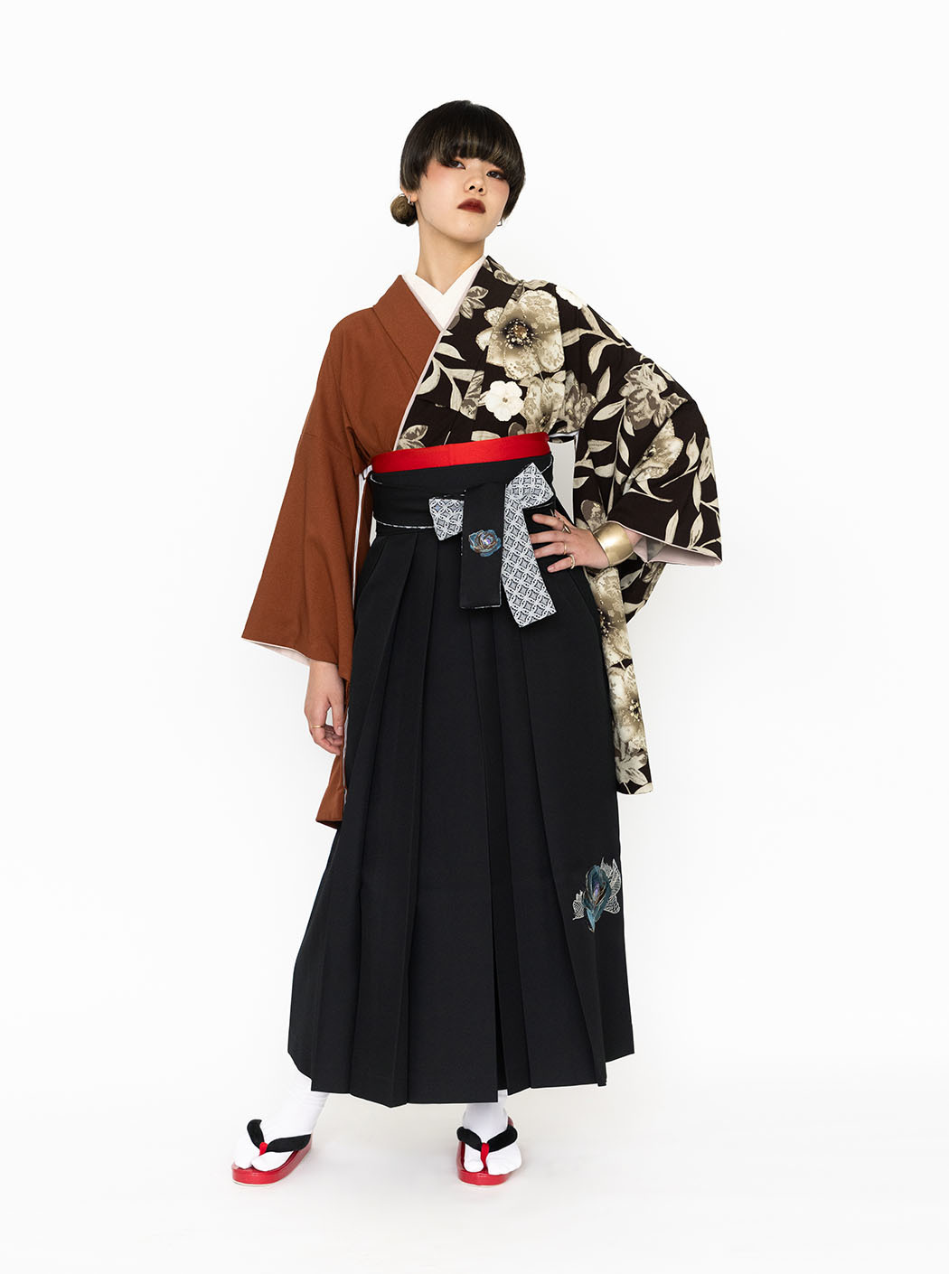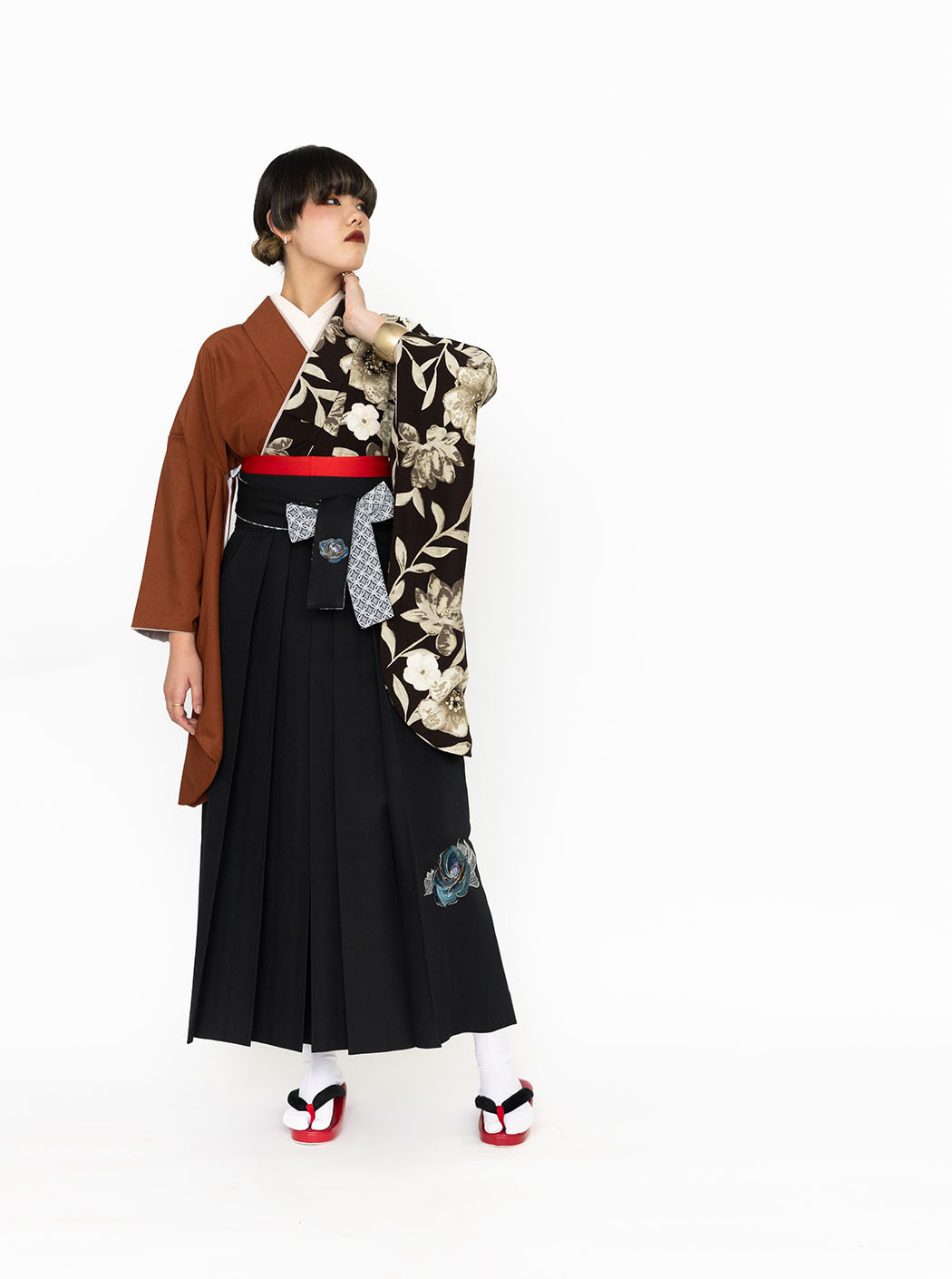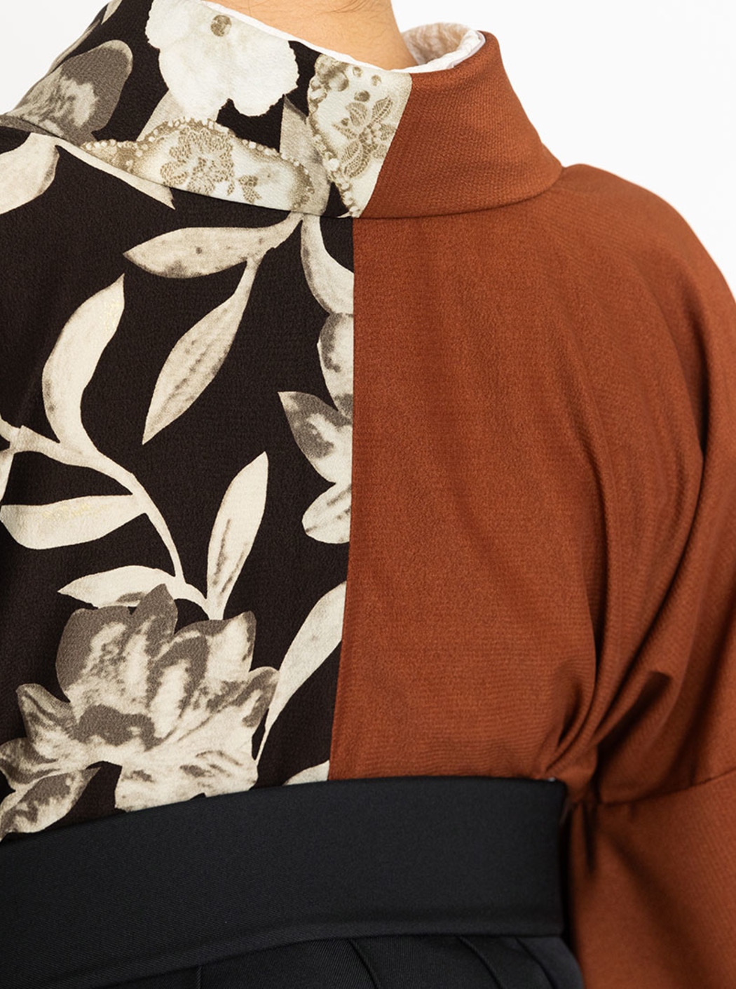 レース花(片身替わり)/こげ茶×テラコッタ【玉城ティナ×紅一点】(袴:バラ 刺繍/黒)
