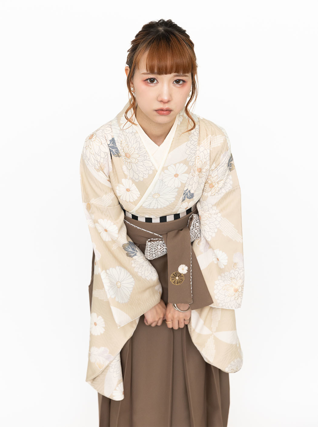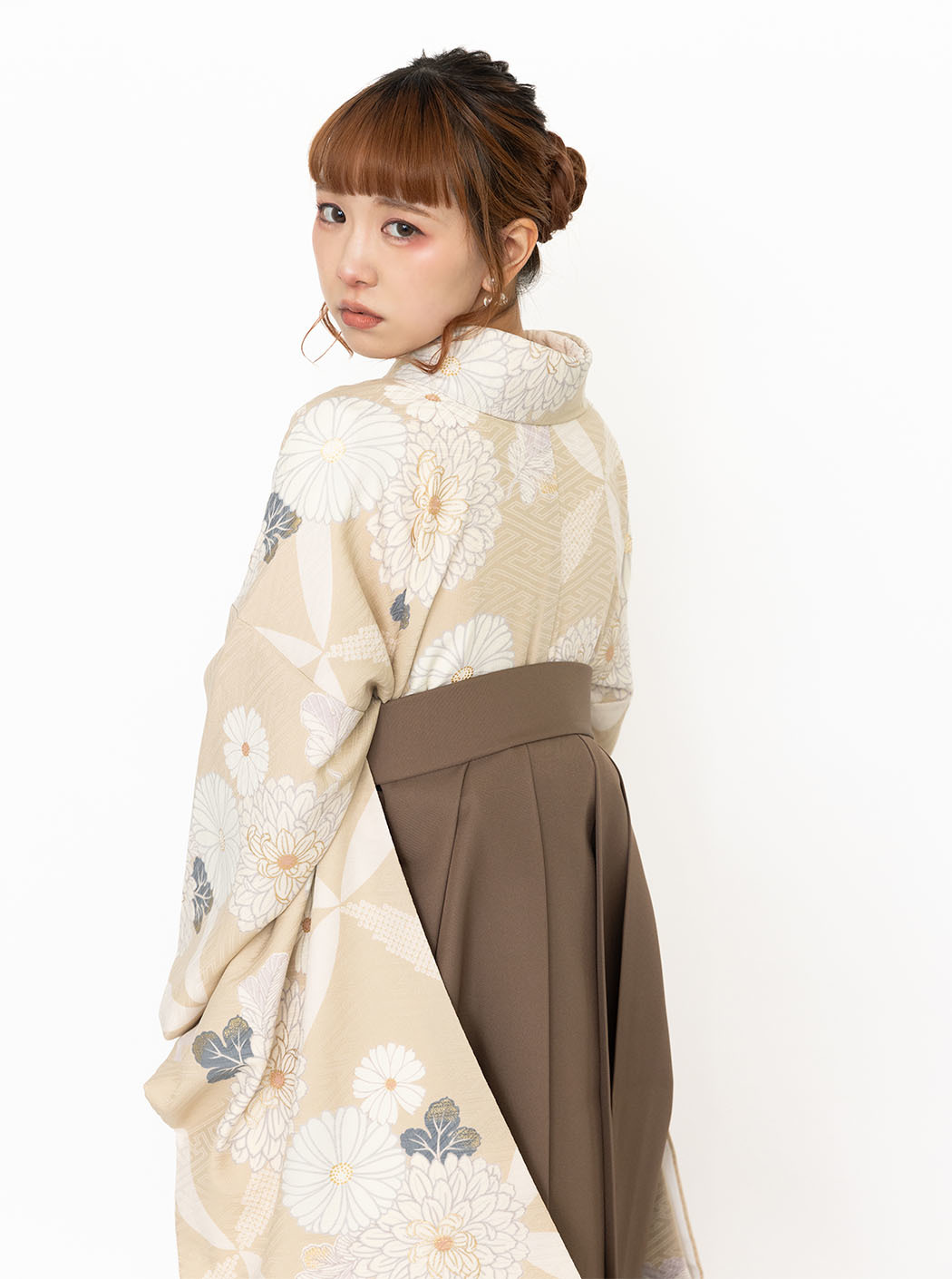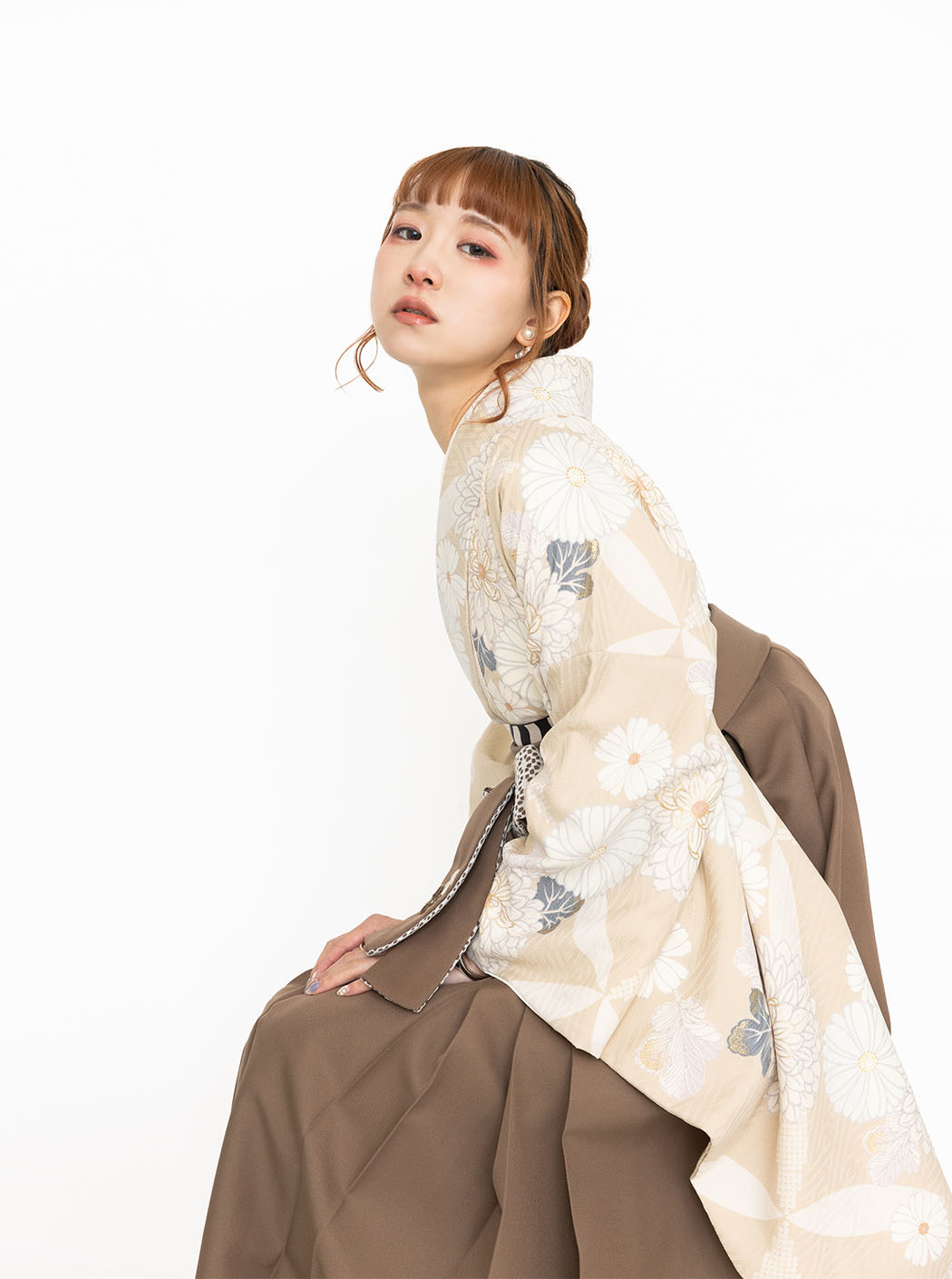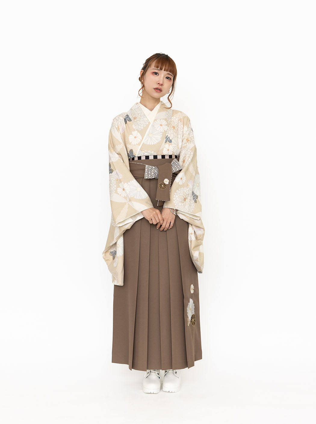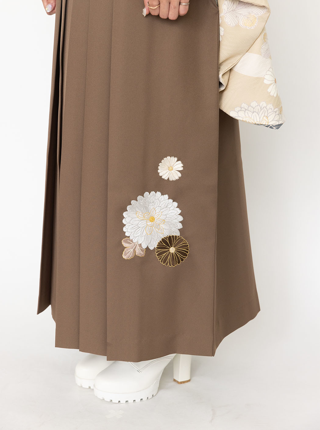 袴は万寿菊の刺繍を施しています。色は茶色。